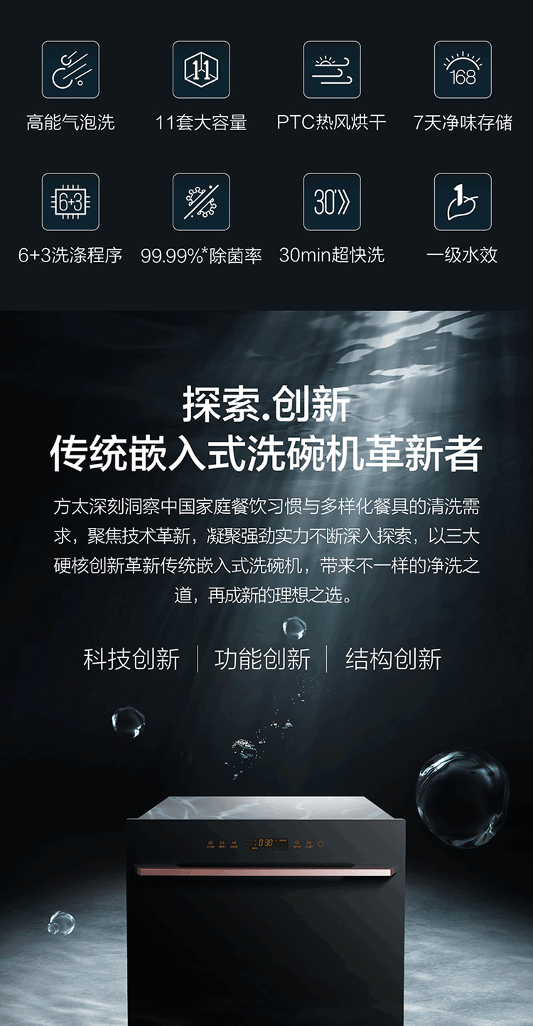 【线下同款】方太嵌入洗碗机 家用6+3洗涤程序 热风烘干高温除菌11套大容量 JPCD11E-G1 家用洗碗机