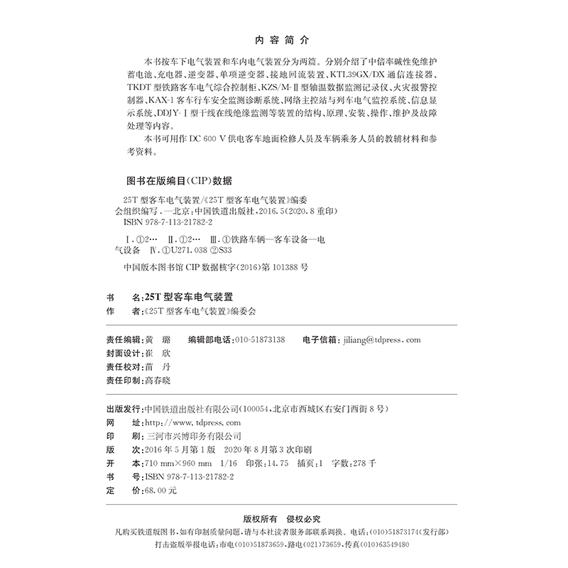 25T型空调客车是全路主型客车之一,也是普速客车的发展方向。本书本着学为所用的原则,力求简明实用,分车下及车内对部分25T型客车的电气装置进行了探讨。