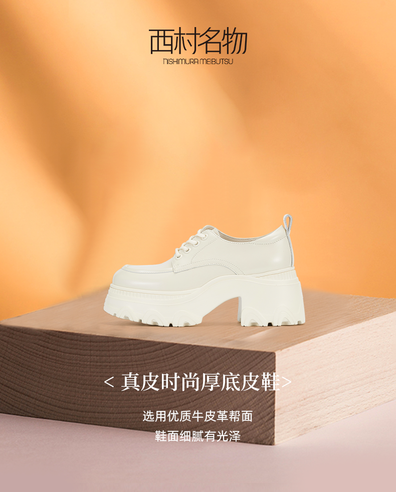 西村名物2024春季新款休闲系带显高真皮时尚气质厚底小皮鞋X24AM10631