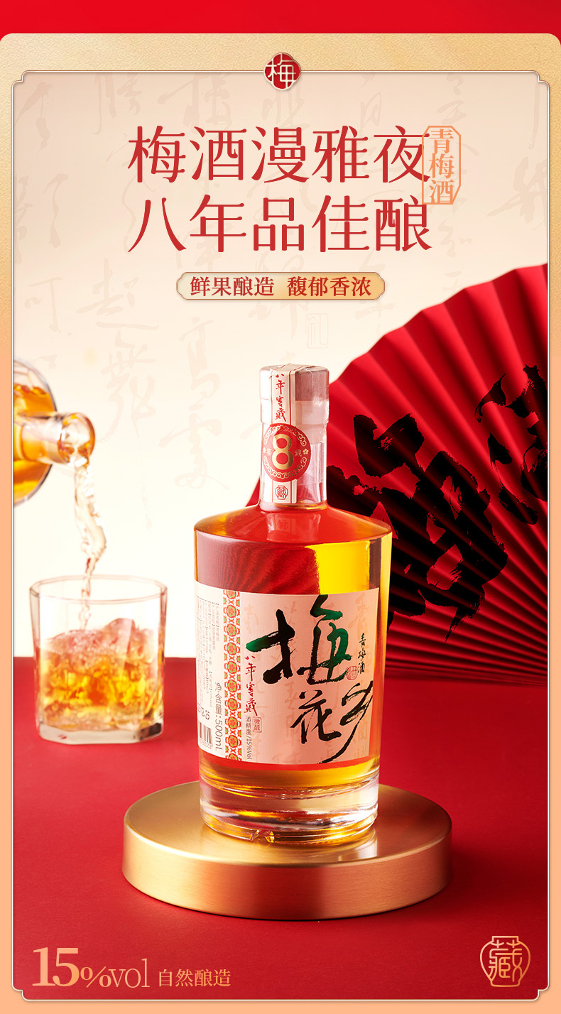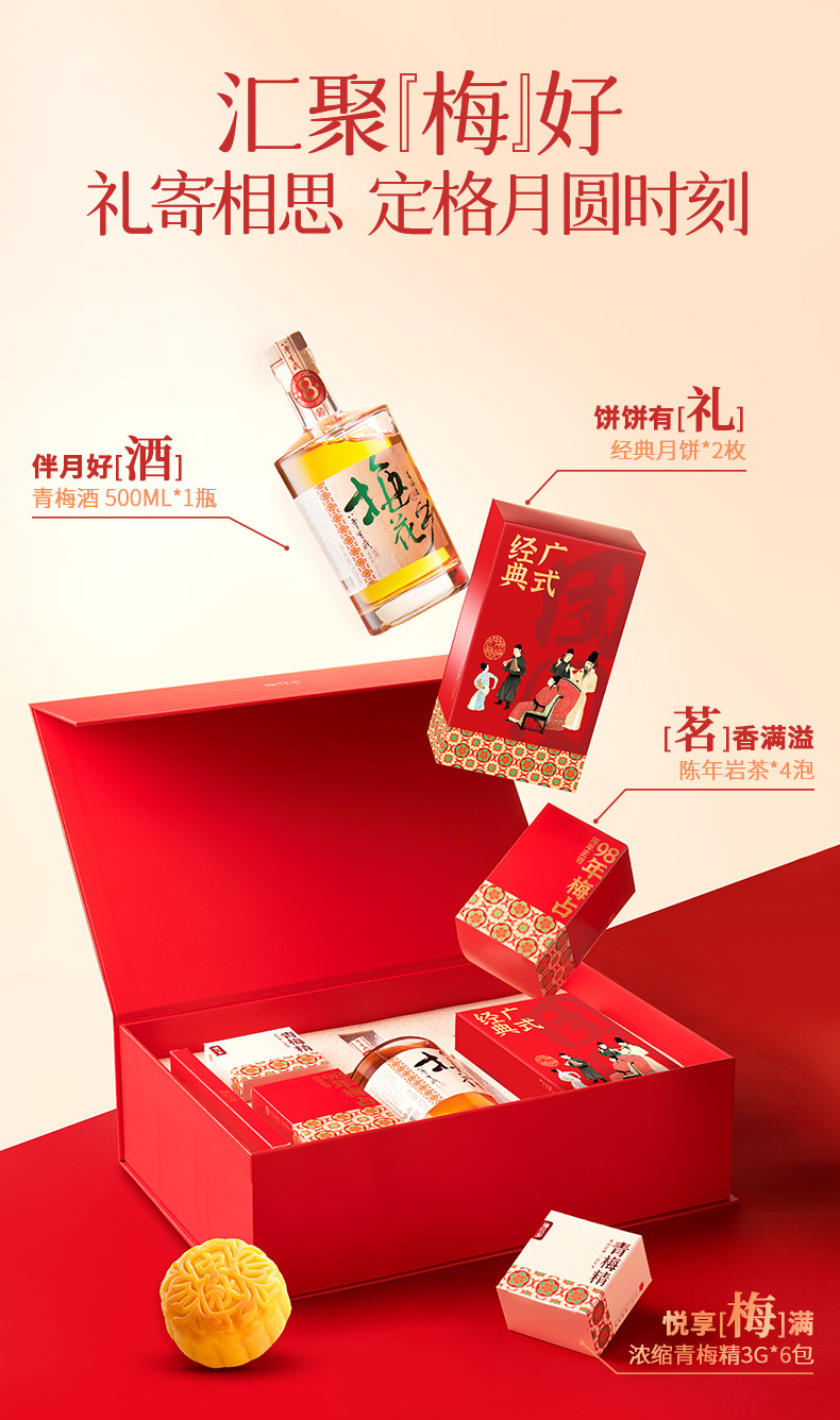 梅花乡 中秋礼盒 青梅精青梅酒广式月饼98年老岩茶