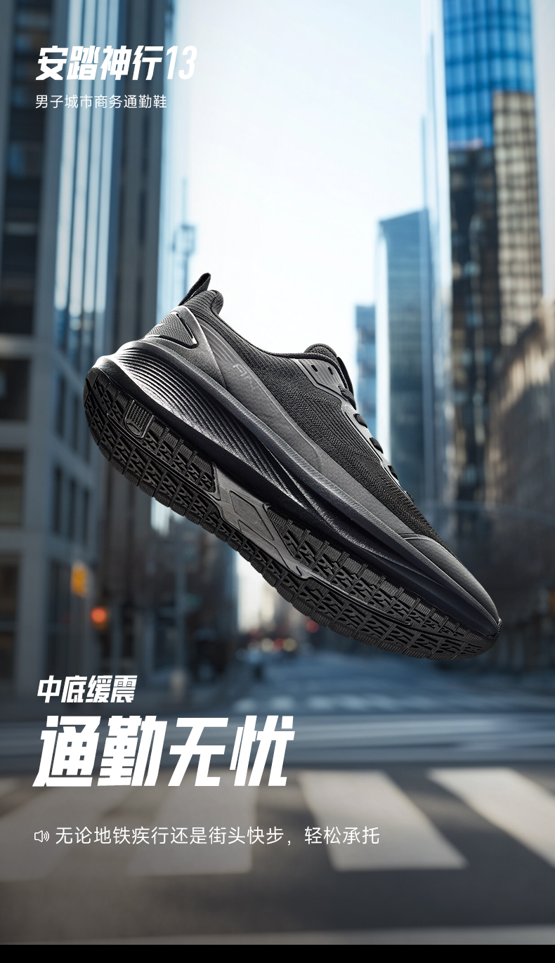 安踏神行13丨皮面轻便缓震男跑步鞋健身运动鞋112547718-5