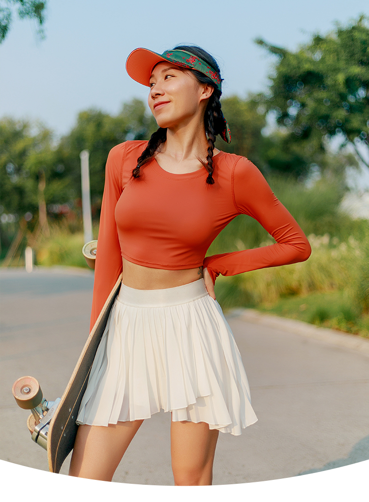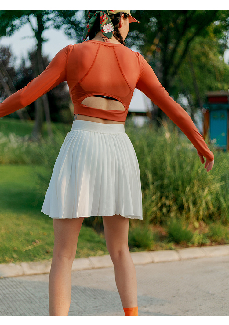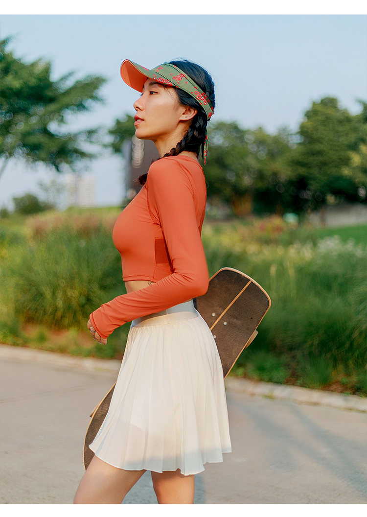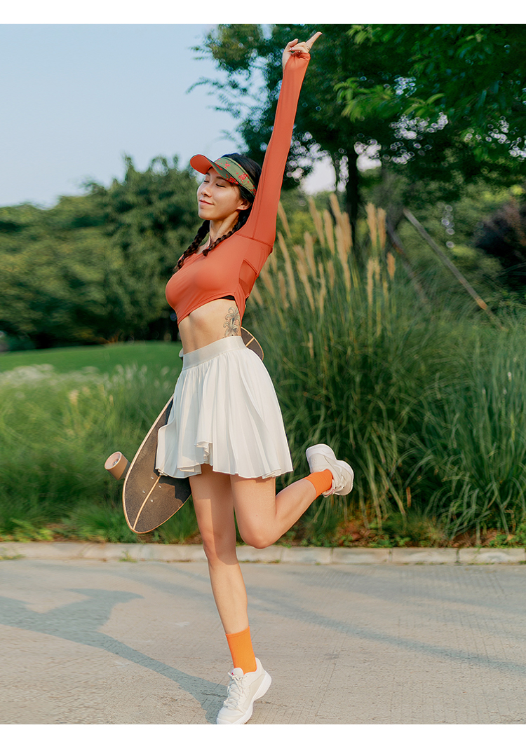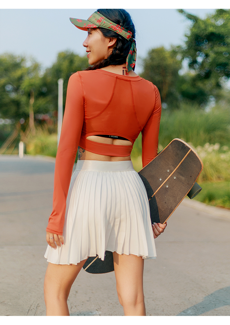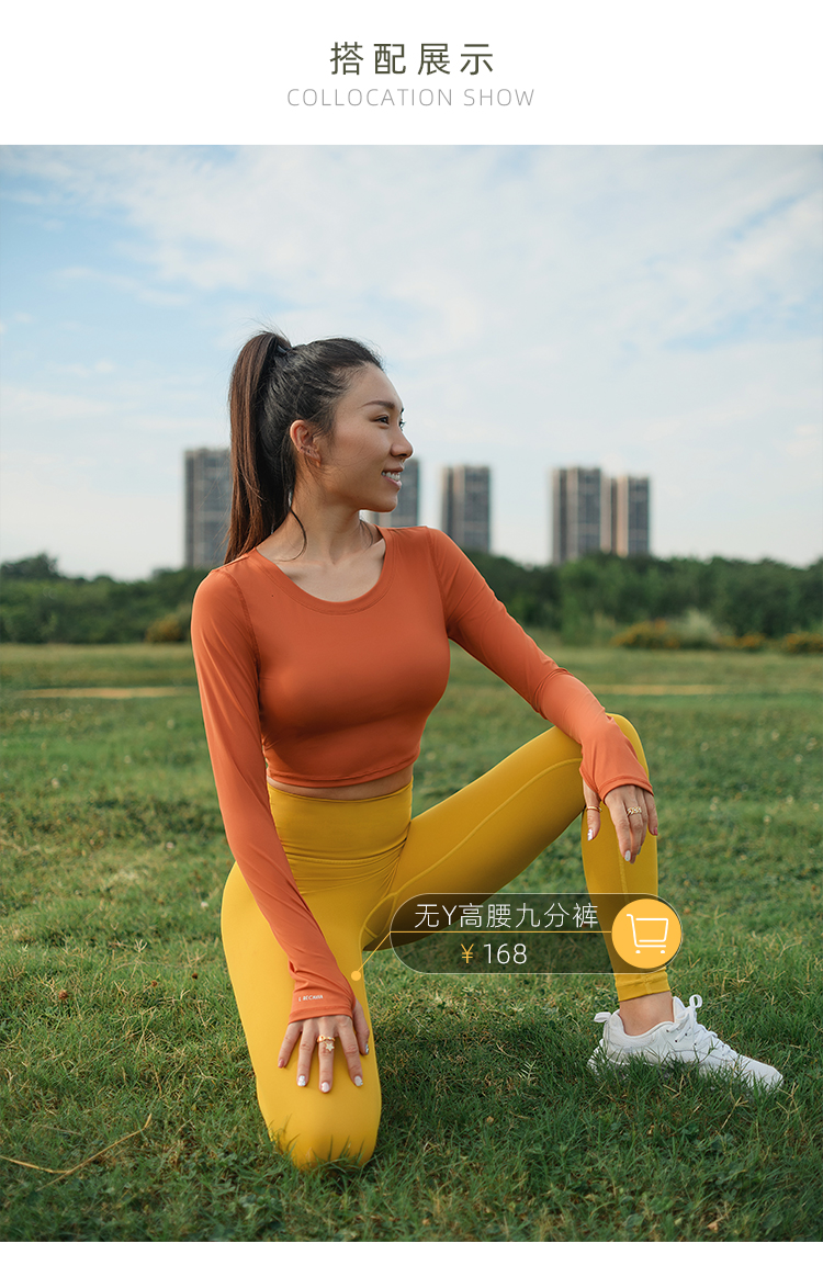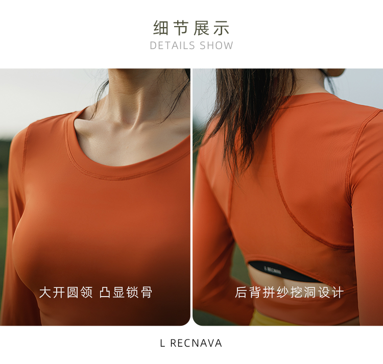 【裸感拼肌理】V领带胸垫瑜伽服上衣女短弹力紧身衣显瘦长袖