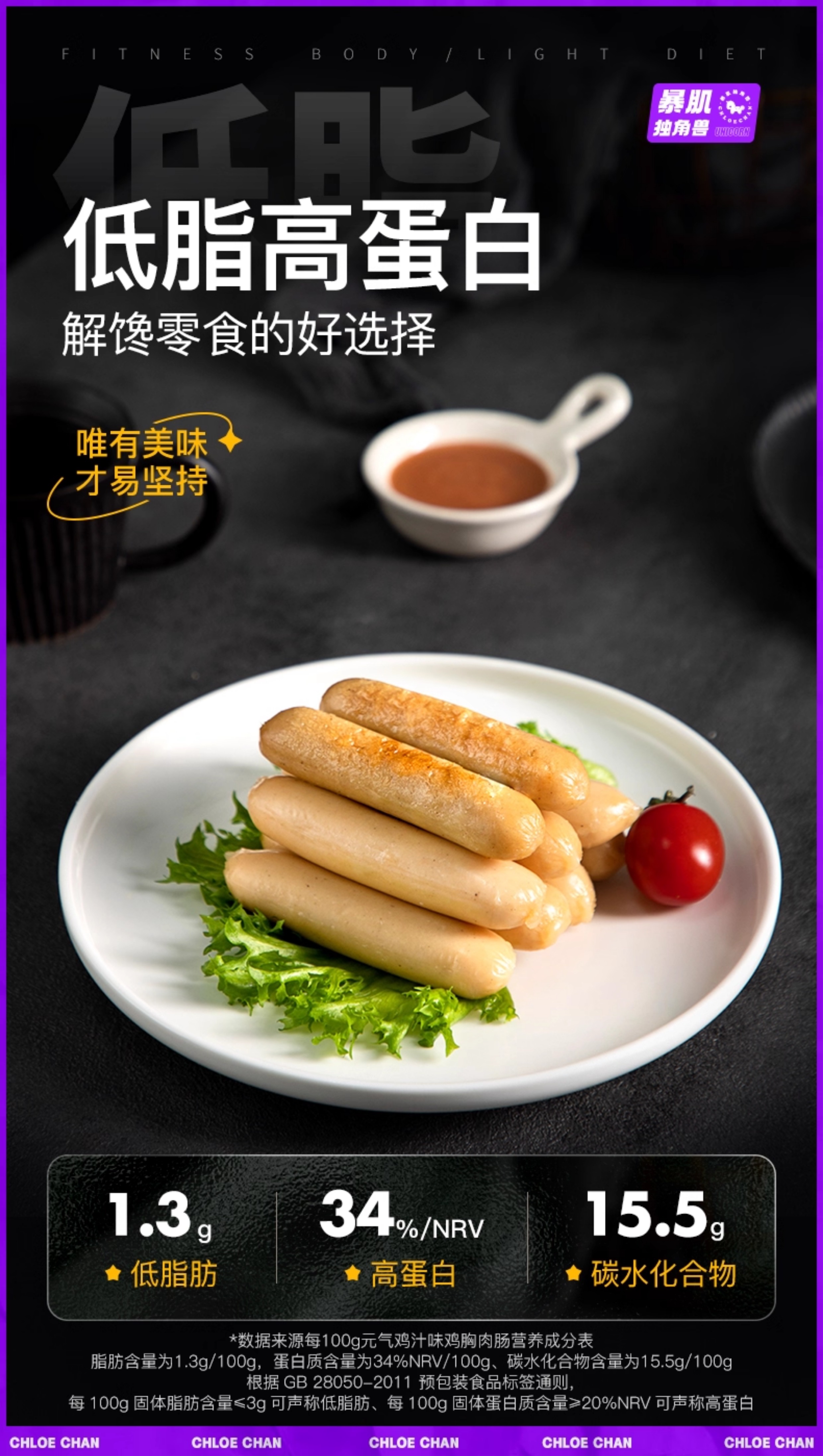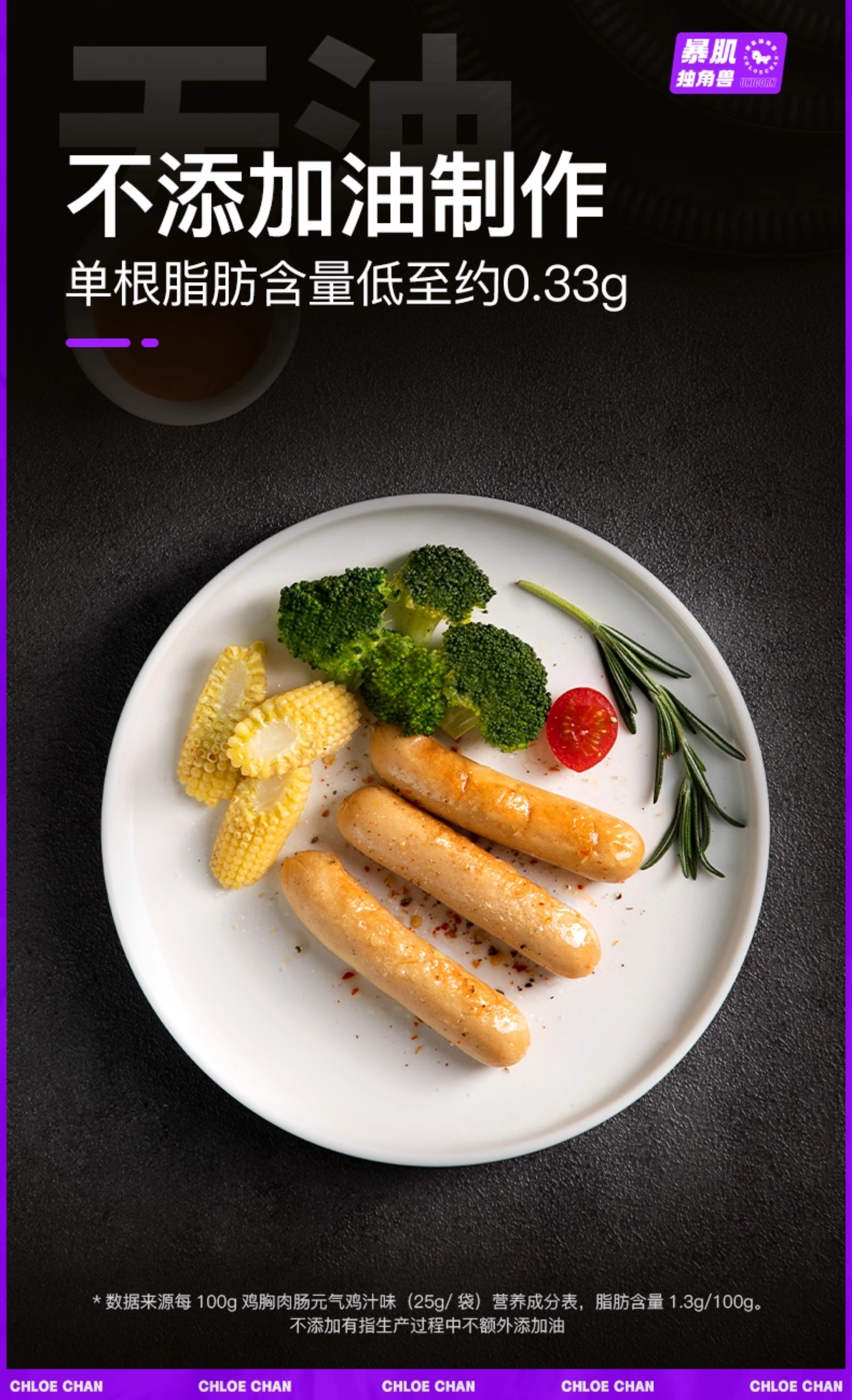 【暴肌独角兽 鸡胸肉肠】低脂低热小零食 | 鸡肉肠原味10个装