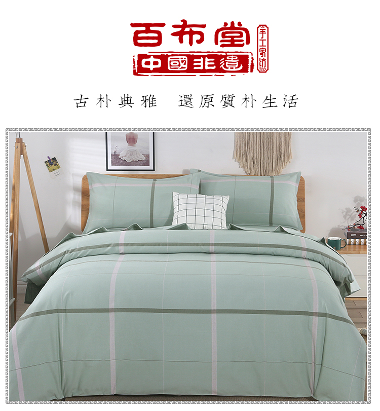 (乡村振兴商品)百布堂纯棉粗布三件套(绿色) 商品图0