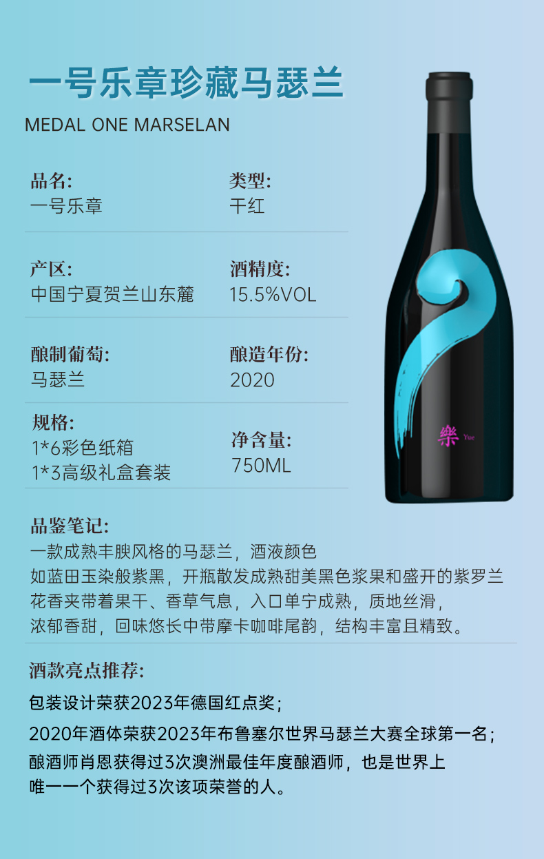 一号乐章珍藏马瑟兰干红葡萄酒2022