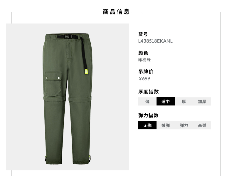 LeeXLINE 21春夏新品舒适橄榄绿色可脱卸休闲布裤男L438518EKANL
