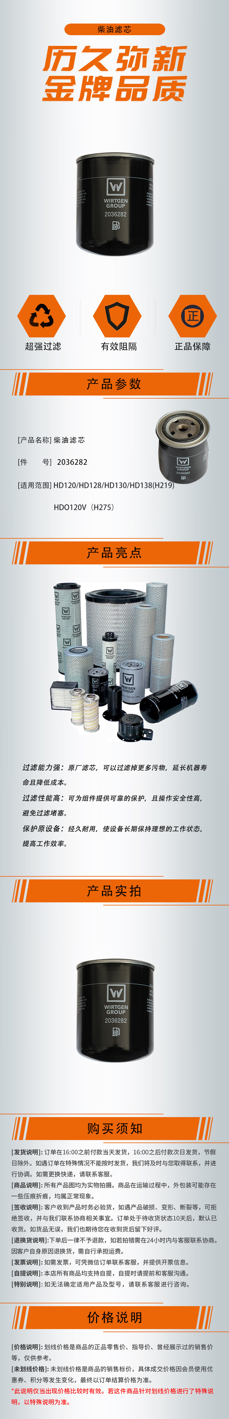 【柴油滤芯2036282】 适用于HD120/HD128/HD130/HD138(H219)/HDO120V(H275)