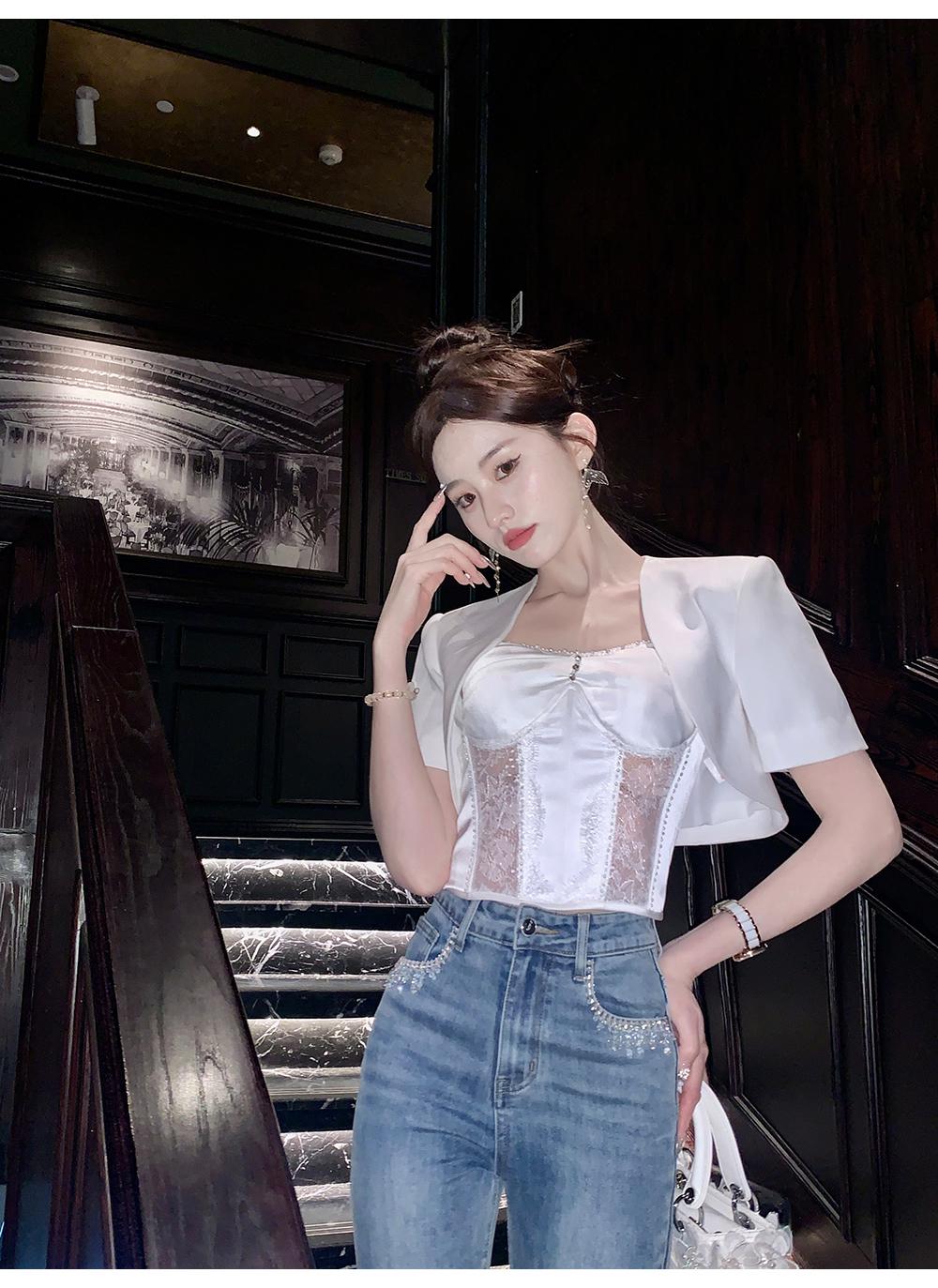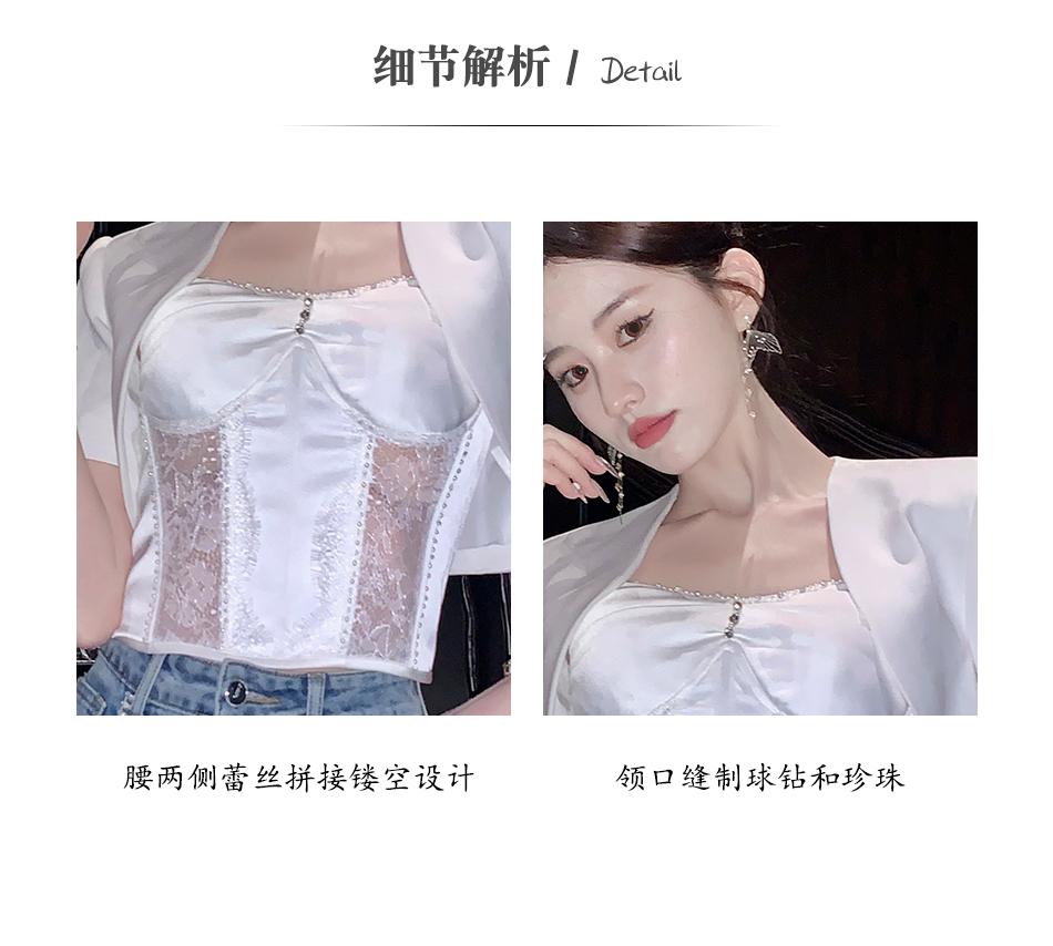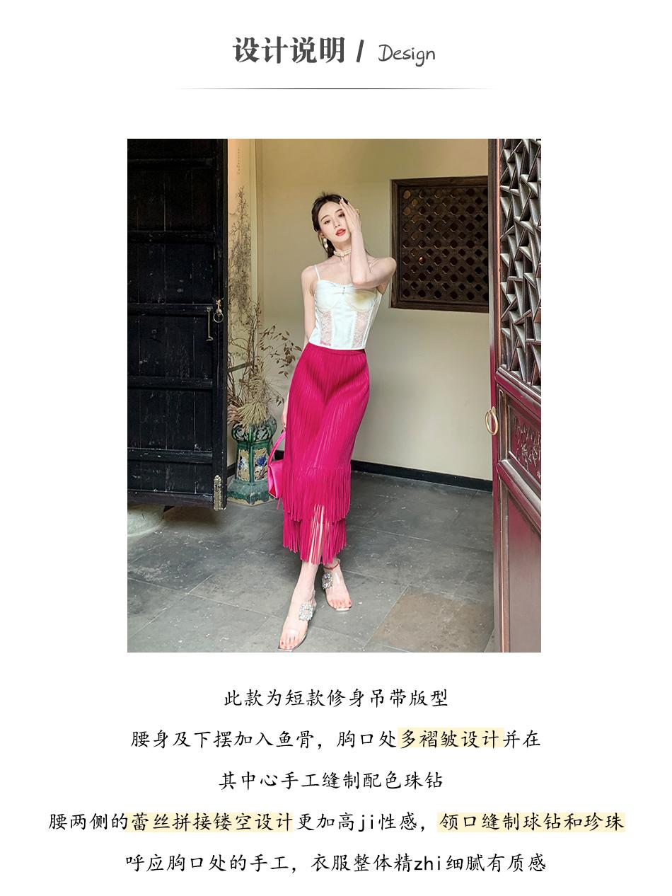 BeQueenStory【娇艳欲滴】蕾丝拼接设计感小众潮流百搭短款修身吊带