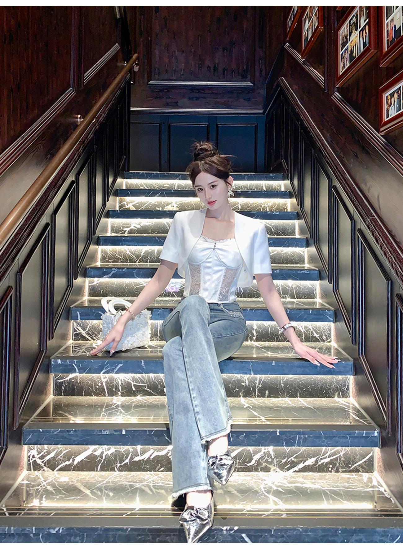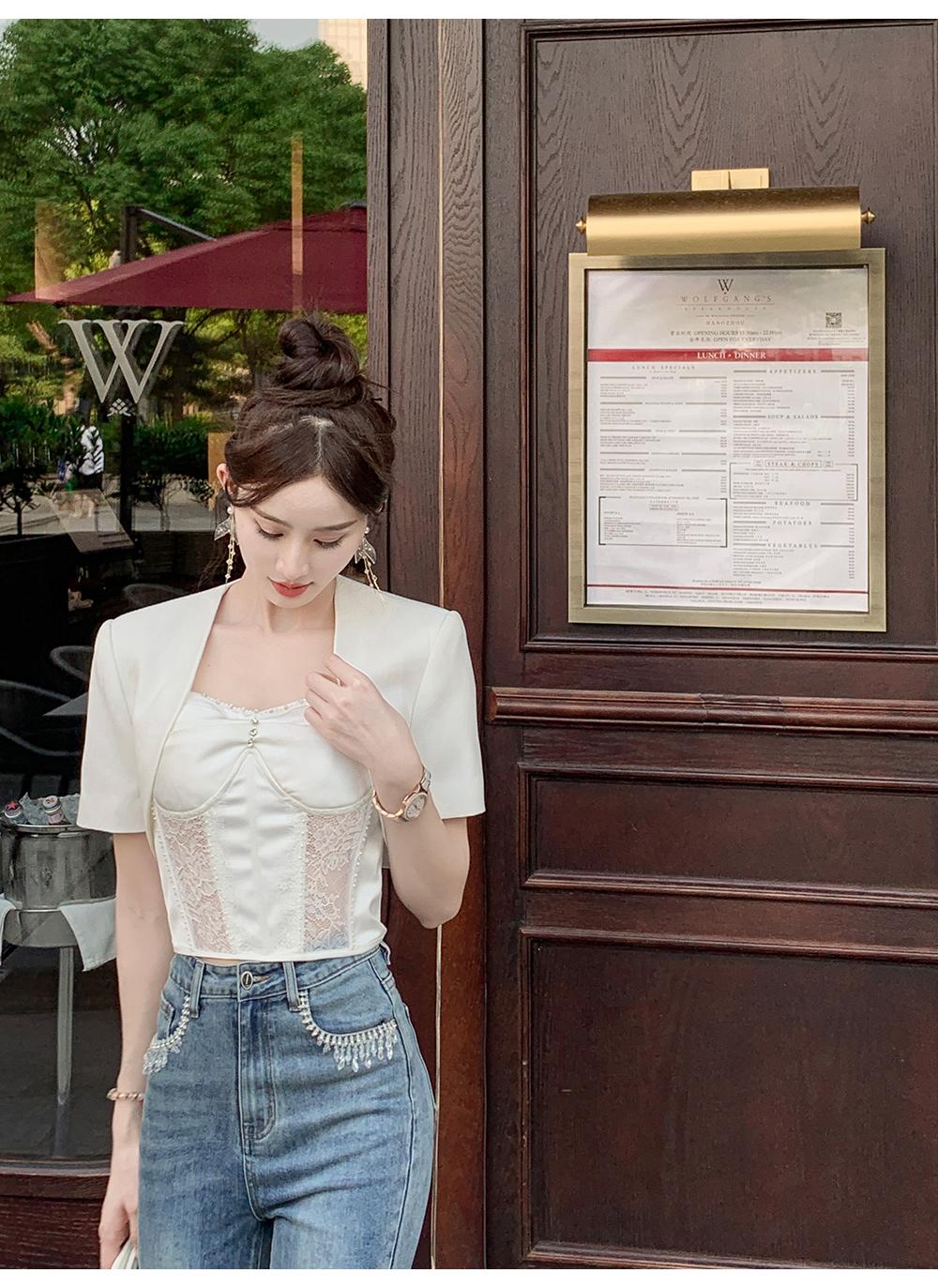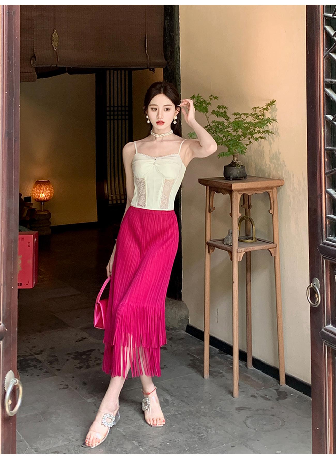 BeQueenStory【娇艳欲滴】蕾丝拼接设计感小众潮流百搭短款修身吊带