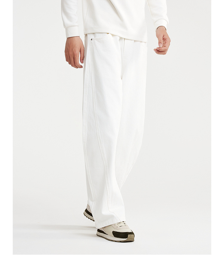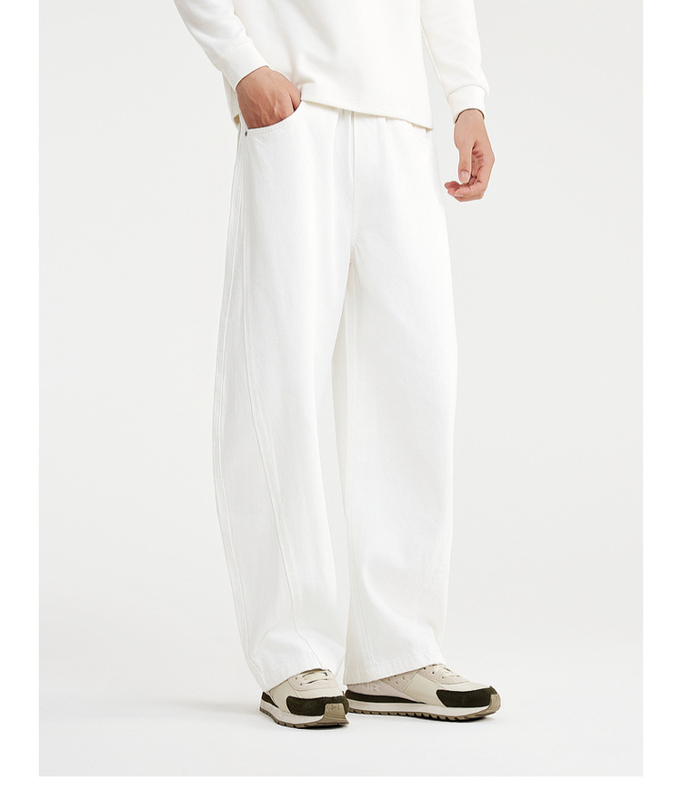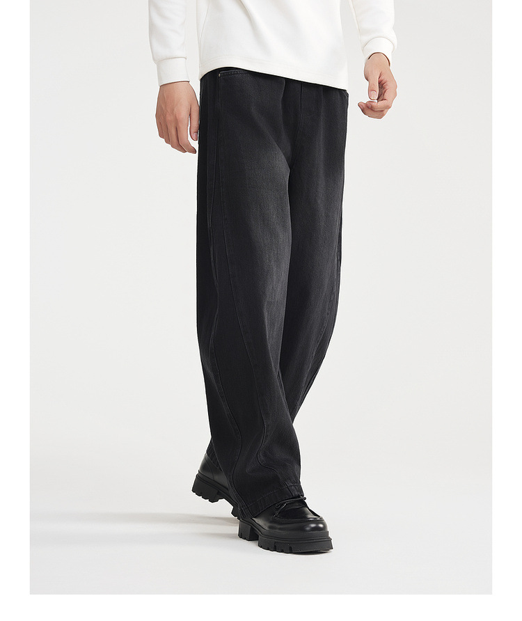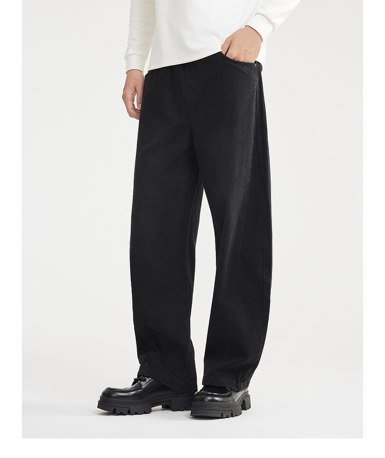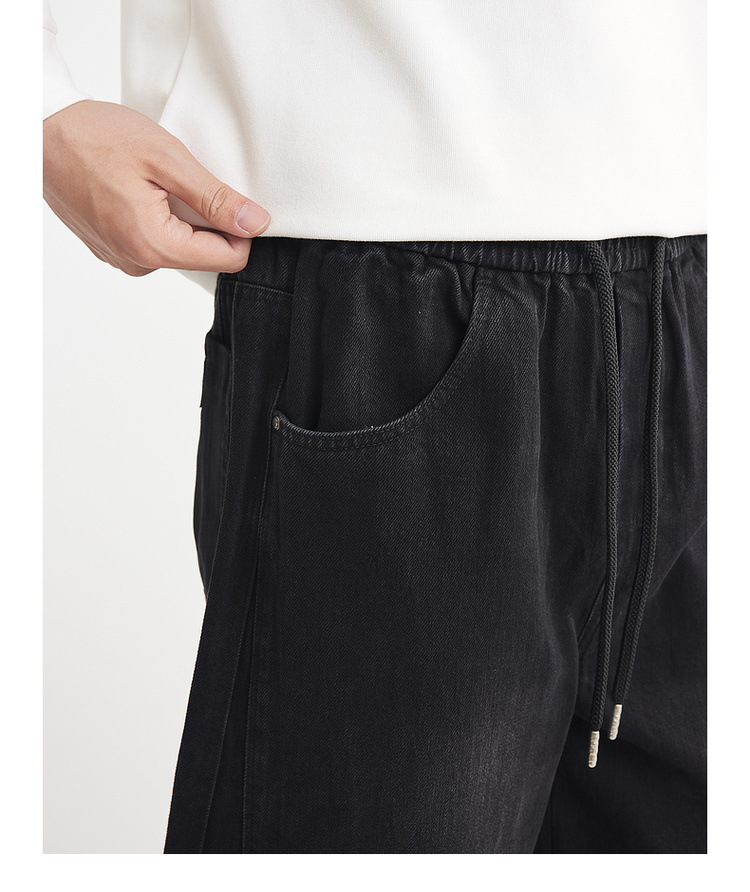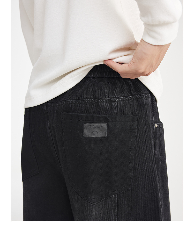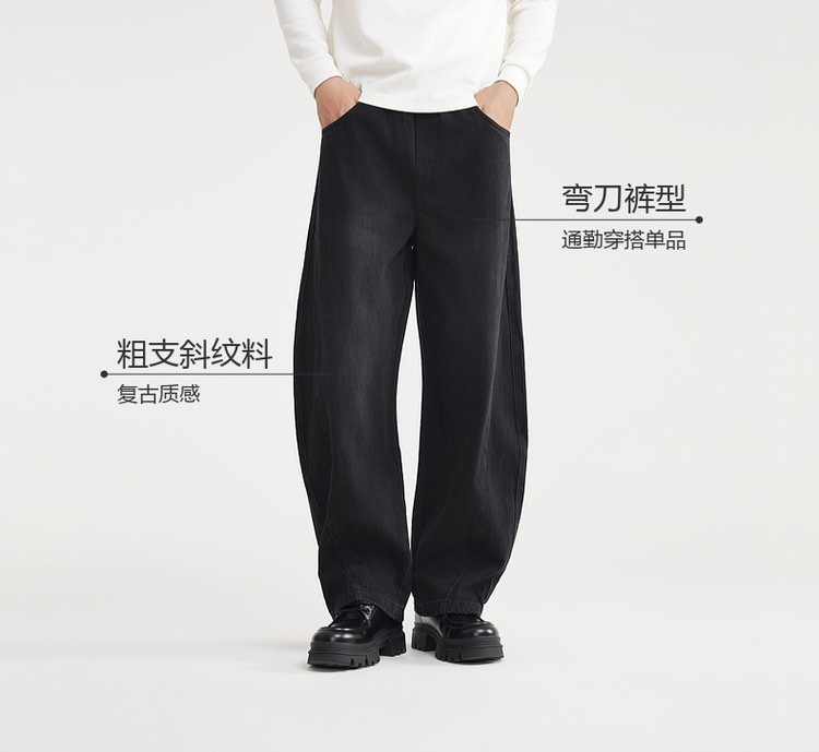 墨麦客男装粗支斜纹牛仔裤男2025冬季新款松紧腰宽松弯刀裤97333