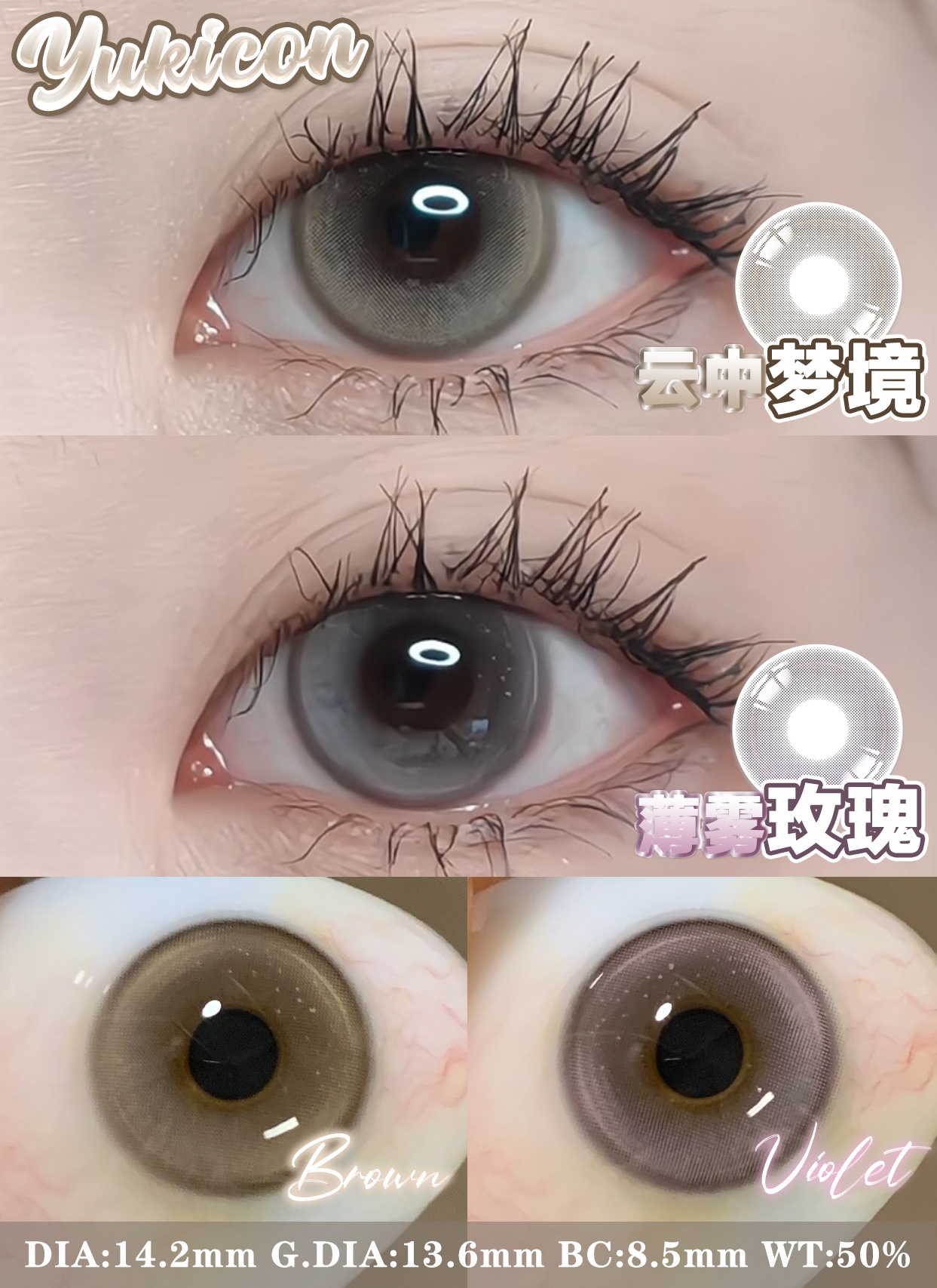 yukicon日抛 薄雾玫瑰 粉/云中梦境 棕/圆崽崽棕/圆崽崽蓝 14.2mm 日抛无售后!!非离子
