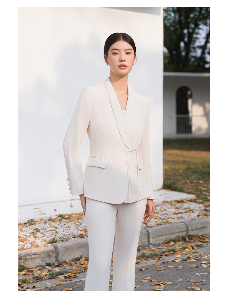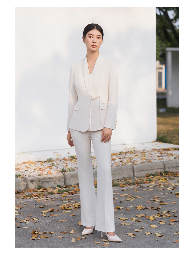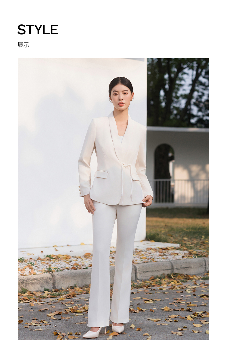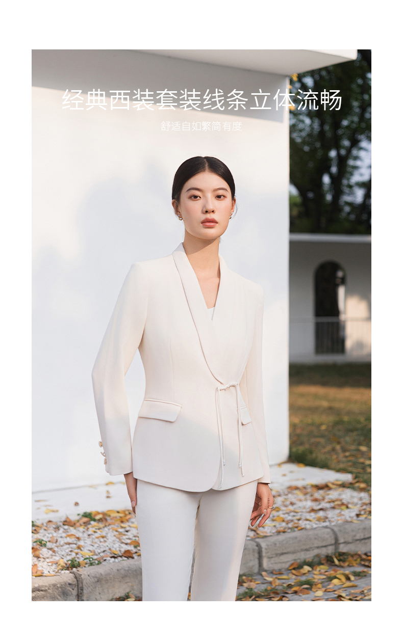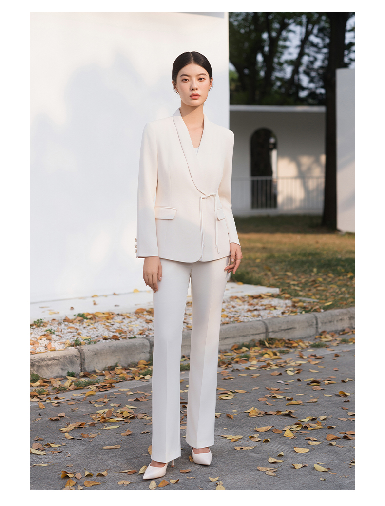 IWY/长款白色职业西装套裤秋冬季国风高端时尚通勤干练西服两件套C14267+P34267