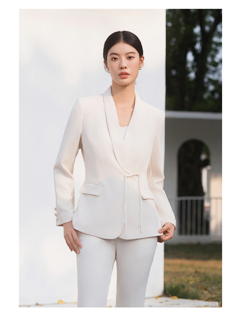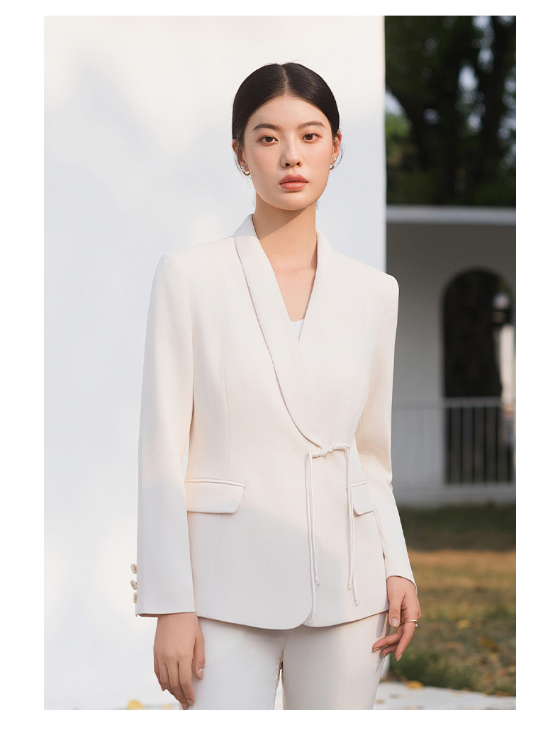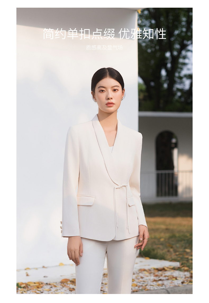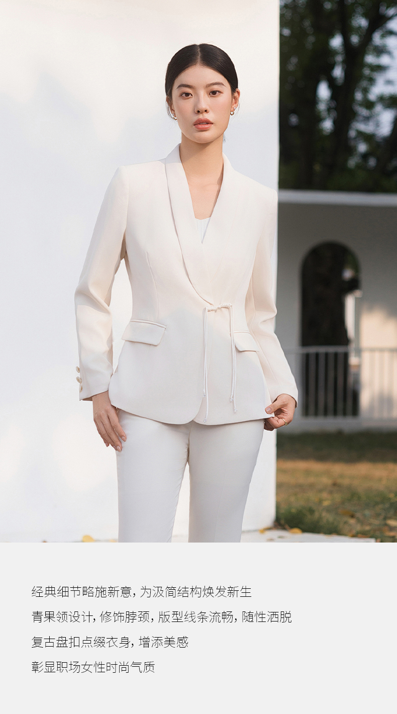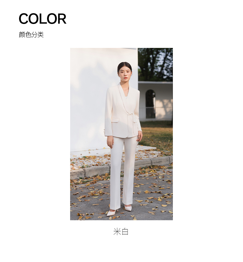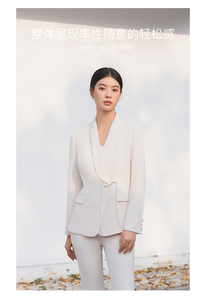 IWY/长款白色职业西装套裤秋冬季国风高端时尚通勤干练西服两件套C14267+P34267