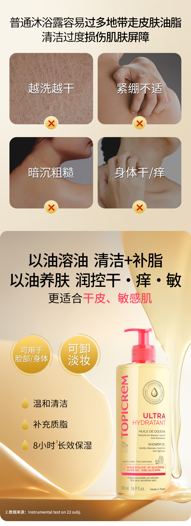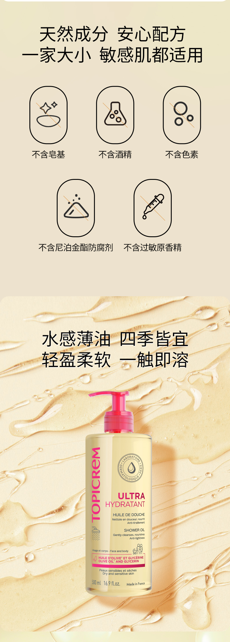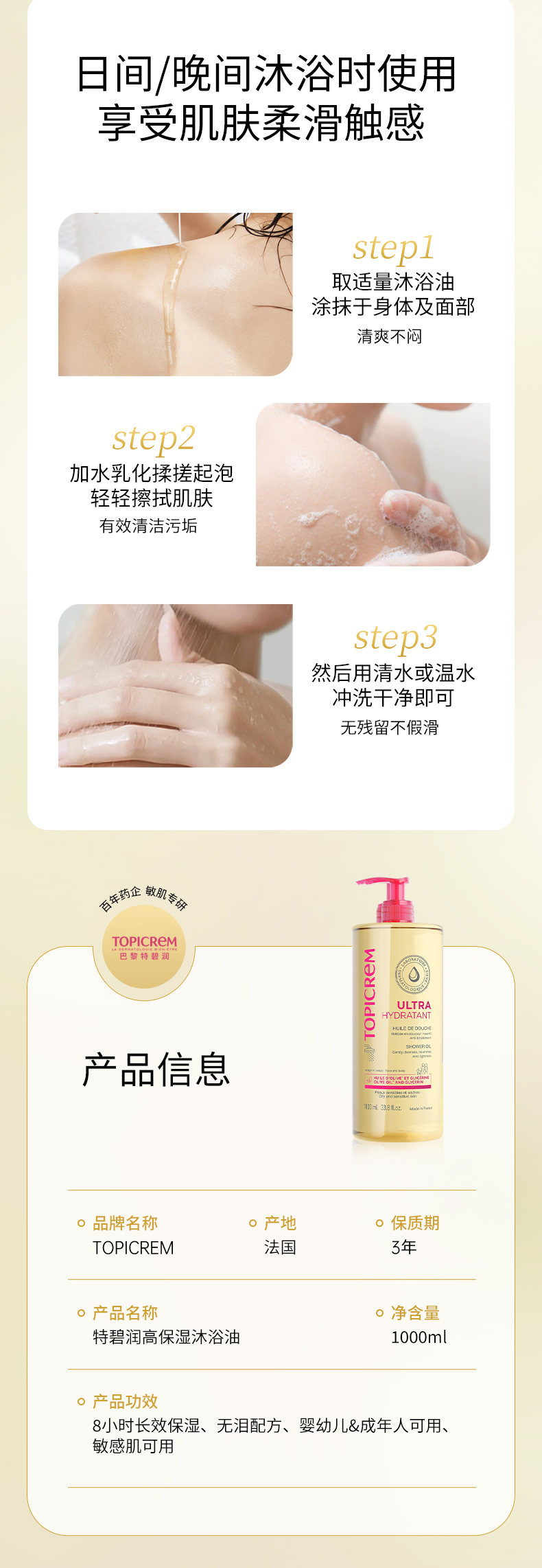 【巴黎特碧润 法国百年药企出品】特碧润舒润高保湿沐浴油500ml/1L 以油养肤 长效保湿抗干燥 温和清洁可卸淡妆 一家大小可用