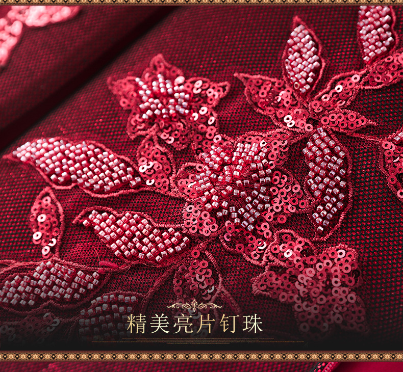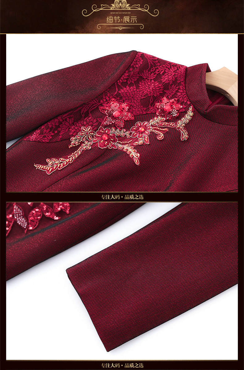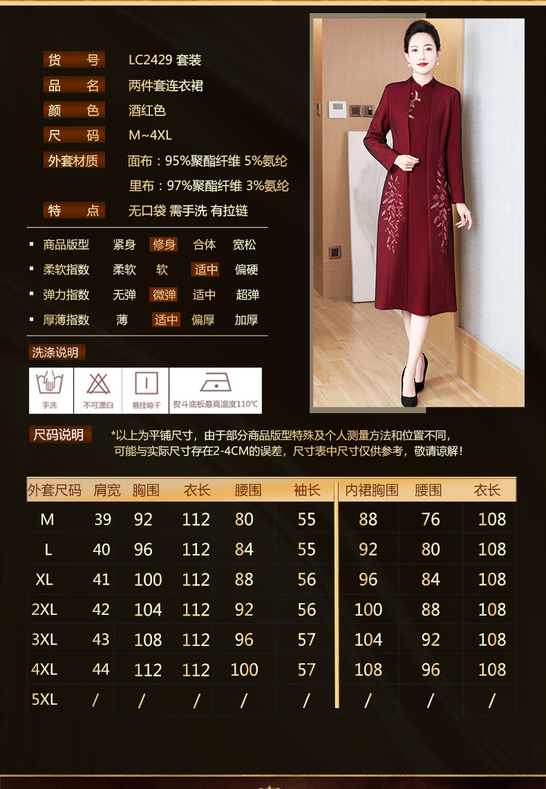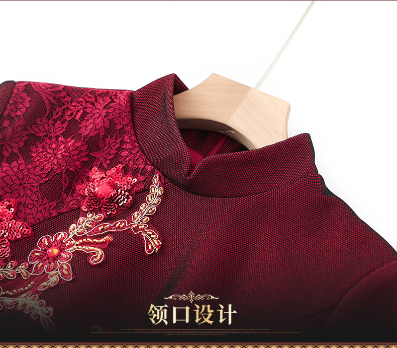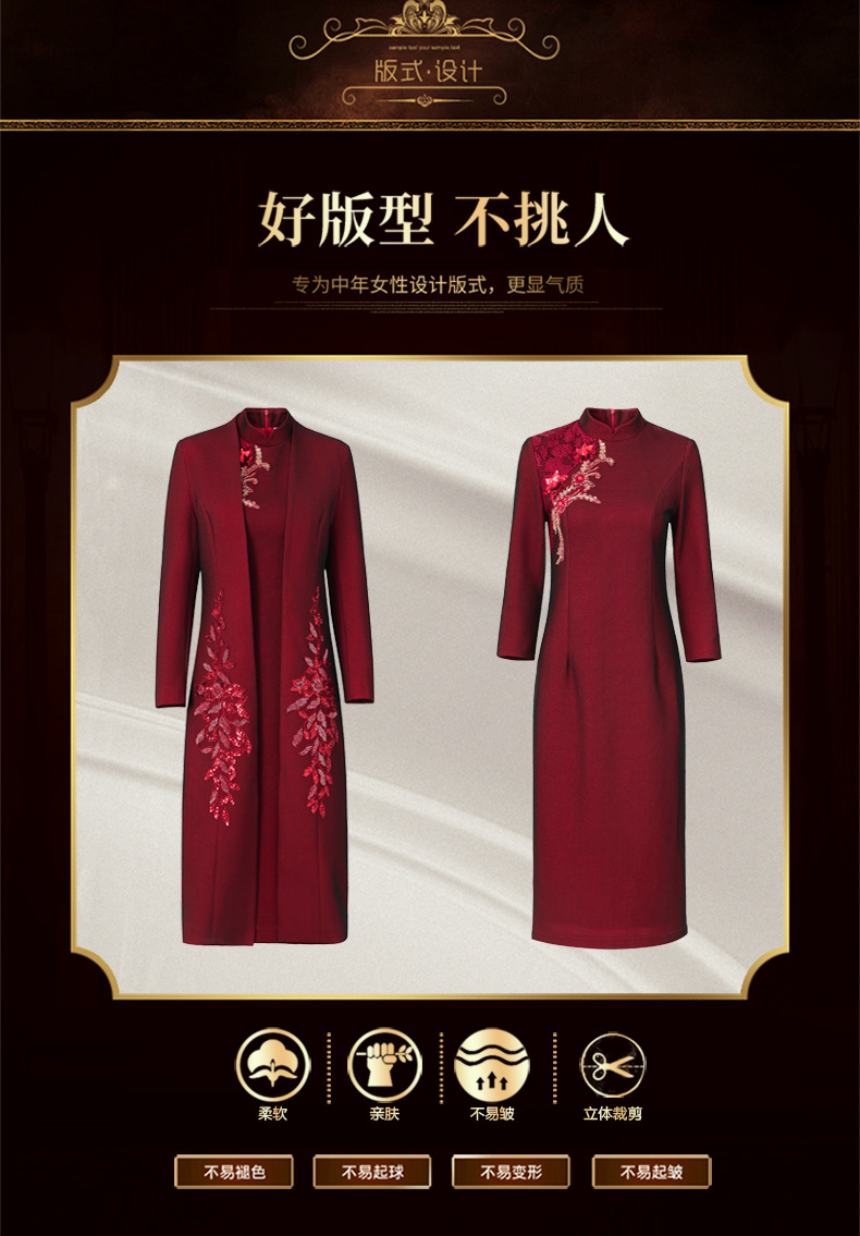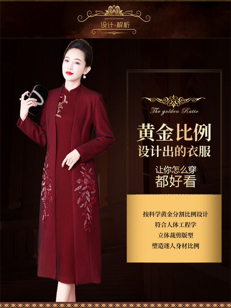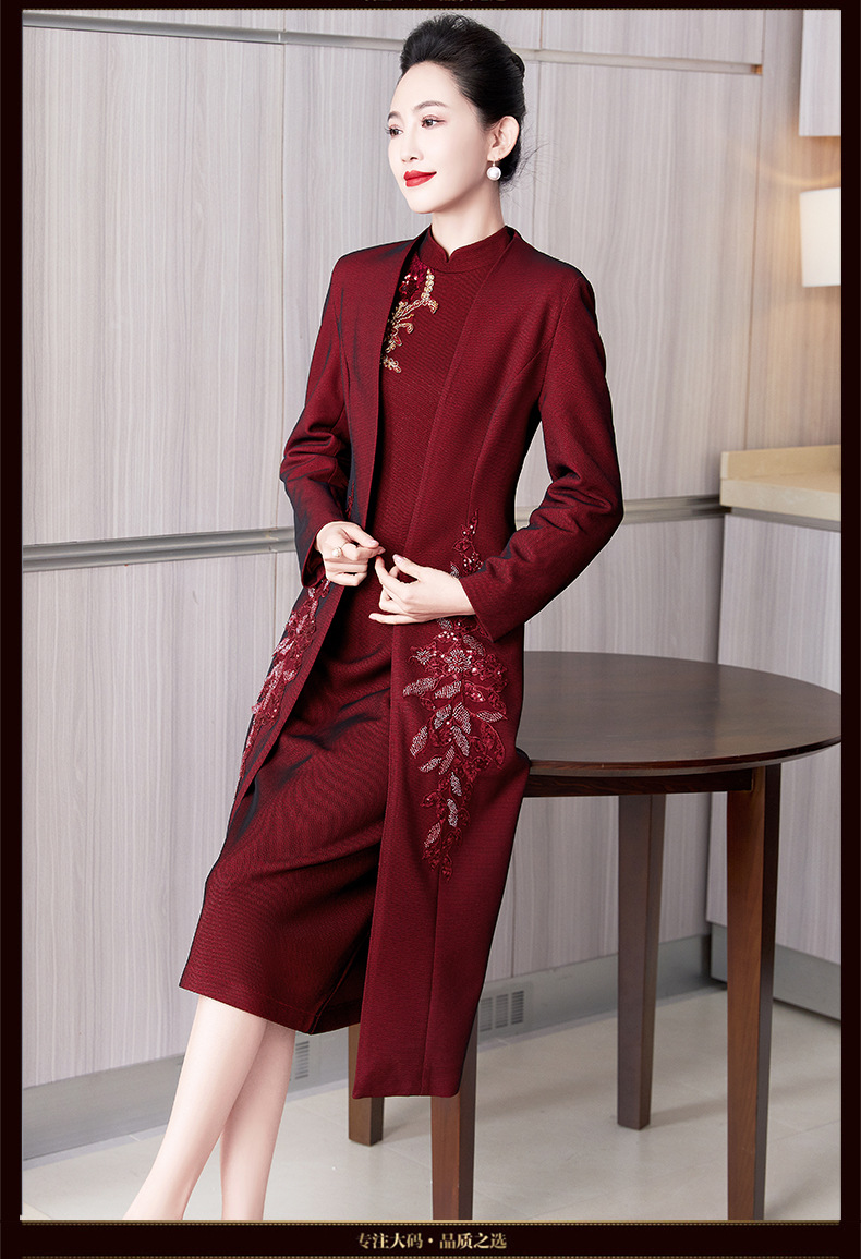2024年春季修身旗袍妈妈装立领中长款重工钉珠连衣裙两件套LC-2429