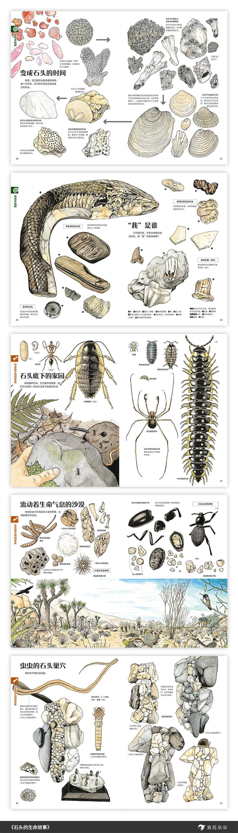 作者为日本有名博物学者、知名科普作家盛口满,极具权威性与影响力盛口满,日本冲绳大学人文学部教授,曾任冲绳大学校长。日本有名的博物学家、插画家、自由创作人,绰号“螳蜥先生”。其作品细致写实、充满生机、贴近自然,在科普作家中独树一帜。以独特的视角,带领读者开启一段石头的探险之旅,激发求知欲,提升观察力。如果没有细致的观察和思考,石头不过是些普通的东西。小小的砂粒可能是生命的遗产,各种化石低语着过去的故事。动物用它筑巢,人类的先祖用它制造工具。带领读者开拓视野,一点点揭开蕴藏其中的秘密,激发求知欲,提升接受新信息的能力。让读者感受到石头和生物之间的有趣联系,培养跨学科的思维能力。读者不仅能学到有关地质学的知识,感受到地球的沧海桑田,还能感受到“冷冰冰”的石头其实是有生命的温度,日常所见的不起眼的事物背后其实有无穷的故事。引发读者对自然、对生活的思考与探索,培养跨学科的思维能力。以独特的视角,揭开常见事物的小秘密,提升观察力全手绘插画,漂亮、细腻、逼真,兼具科学性与艺术性用细腻精美的手绘图,为读者展现了真实却用肉眼无法捕捉到的石头和各种生物的色彩、光泽和纹路。用简洁而有温度的文字带领读者进入一个个简短却不简单的故事。画面和内容引人入胜,适合儿童阅读。