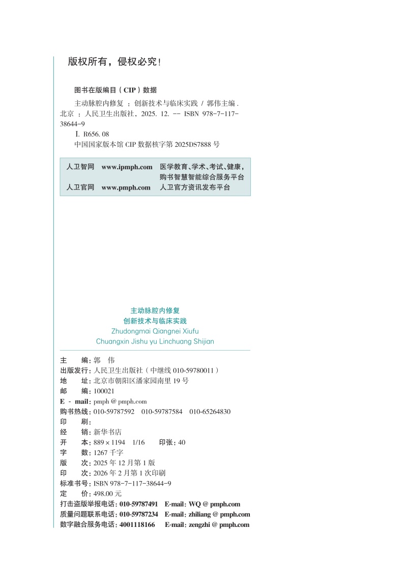 主动脉腔内修复——创新技术与临床实践 附操作视频 郭伟 主编 本书将详细介绍主编团队设计的各类腔内主动脉器材 人民卫生出版社