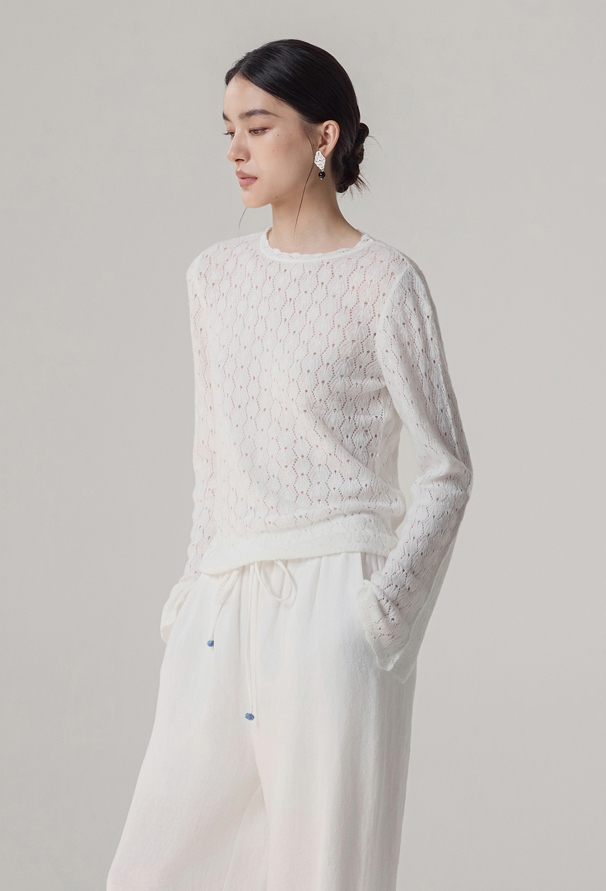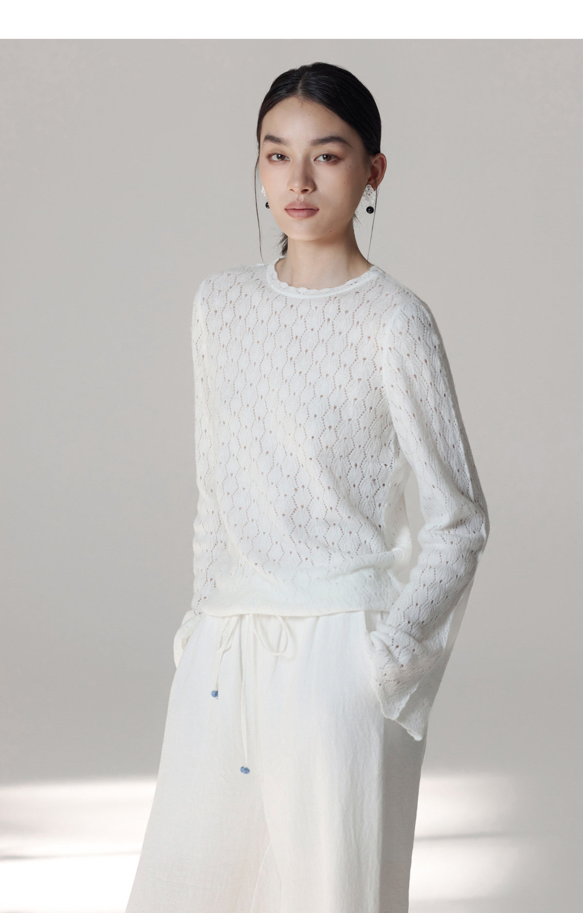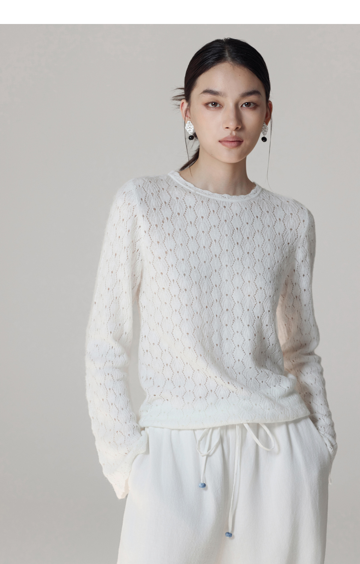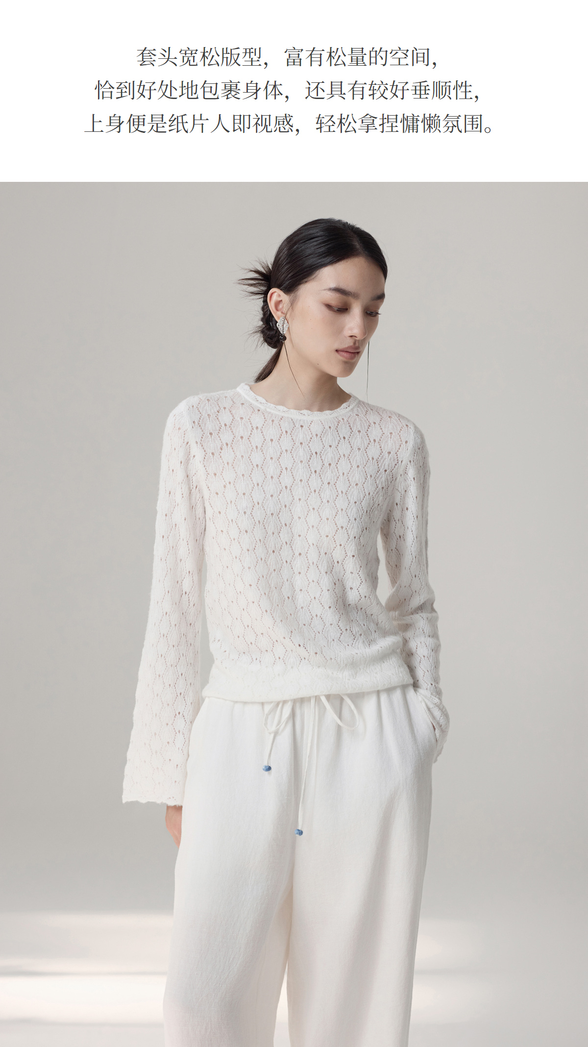 【林栖设计小店】镂空毛织上衣肌理感优雅百搭宽松显瘦2025秋季新款毛衣女G1954170