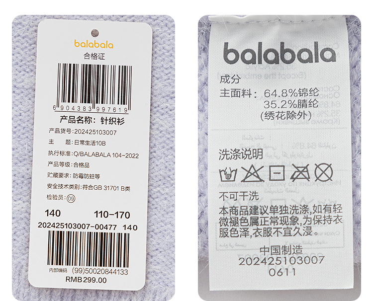 【hellokittyIP商场同款】巴拉巴拉童装女童毛衫儿童2025新款冬装