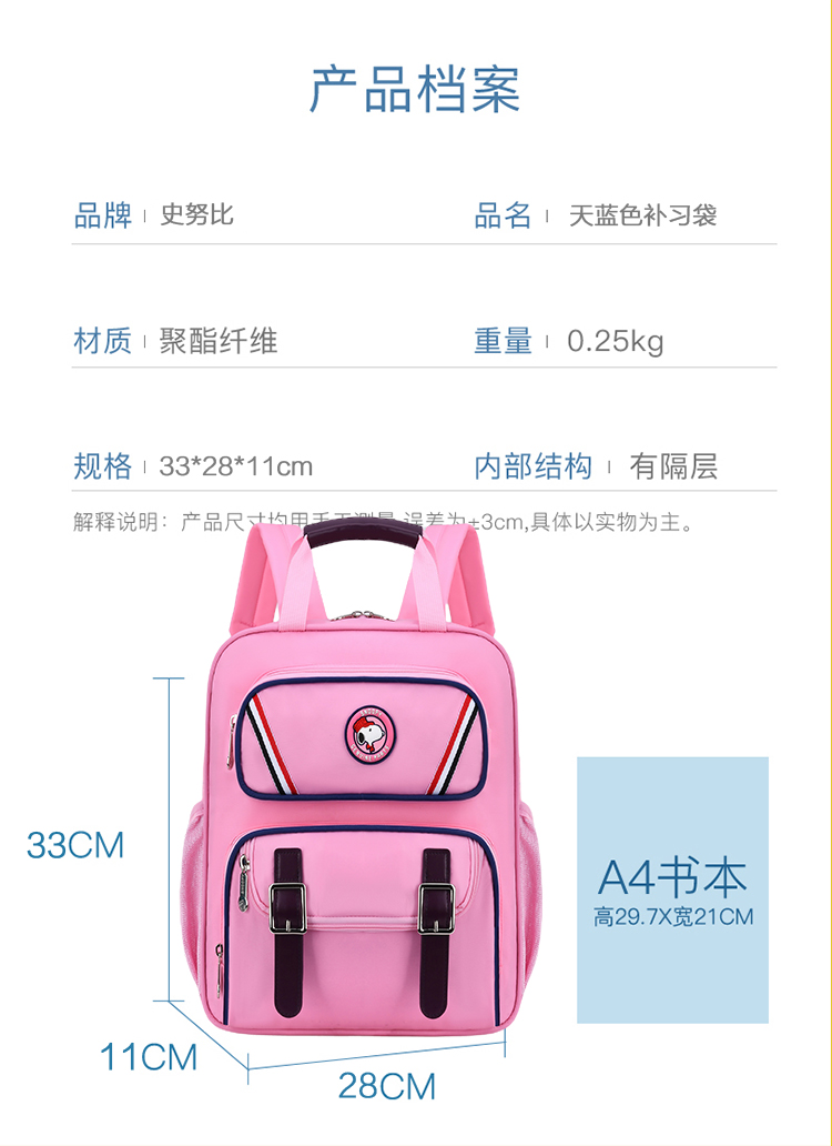 史努比书包小学生卡通儿童双肩书包大容量护脊防泼水轻便女生