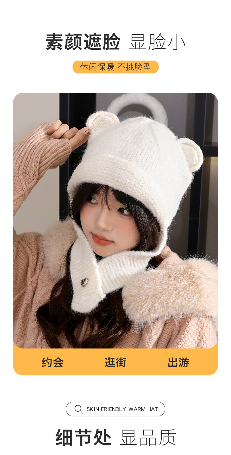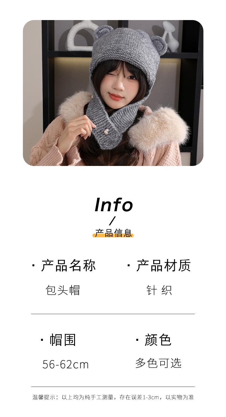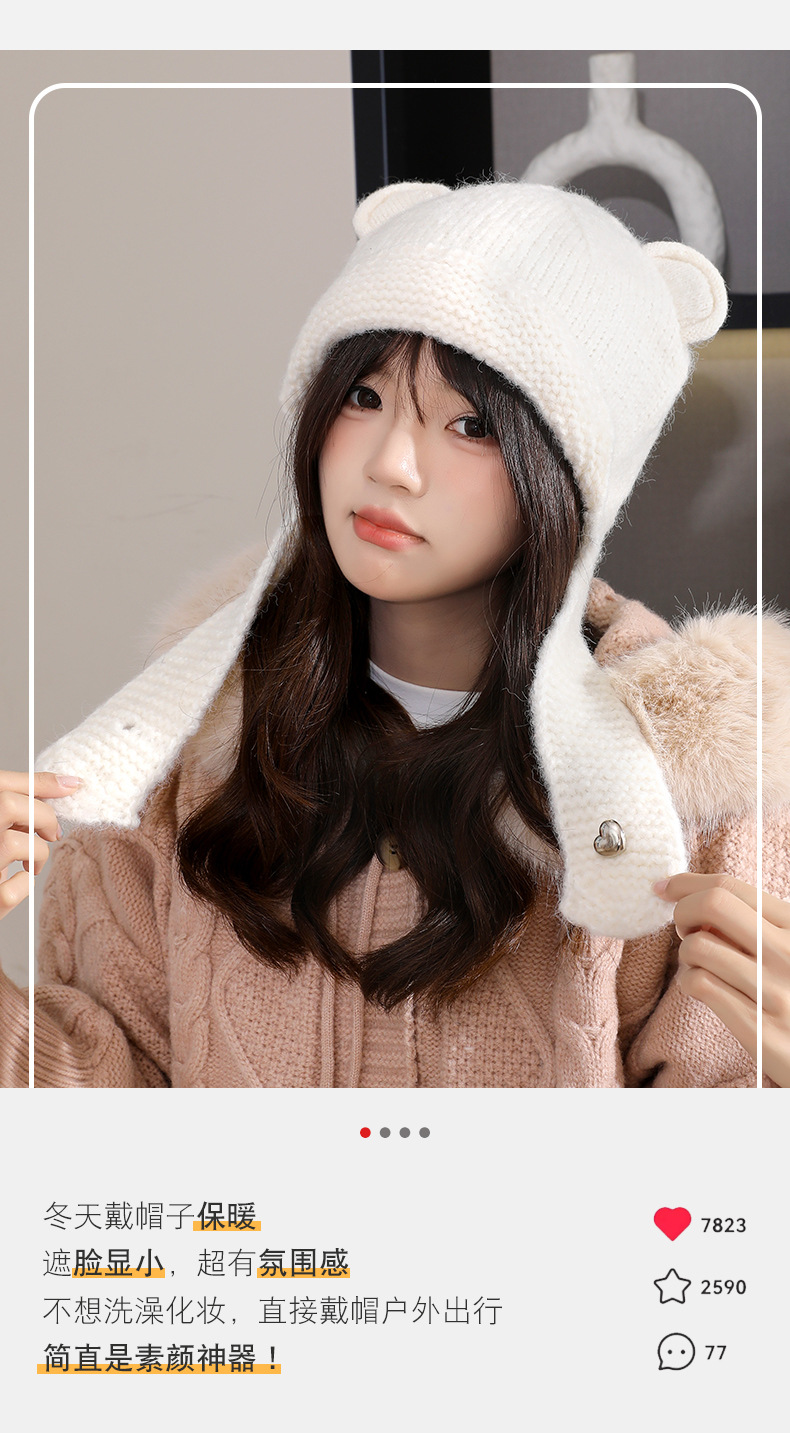 【时尚潮搭保暖帽!秋冬氛围感拿捏住~】秋冬新款小熊耳朵帽子女百搭可爱时尚潮针织帽冬季防寒保暖毛线帽,遮脸显小,超有氛围感。ry