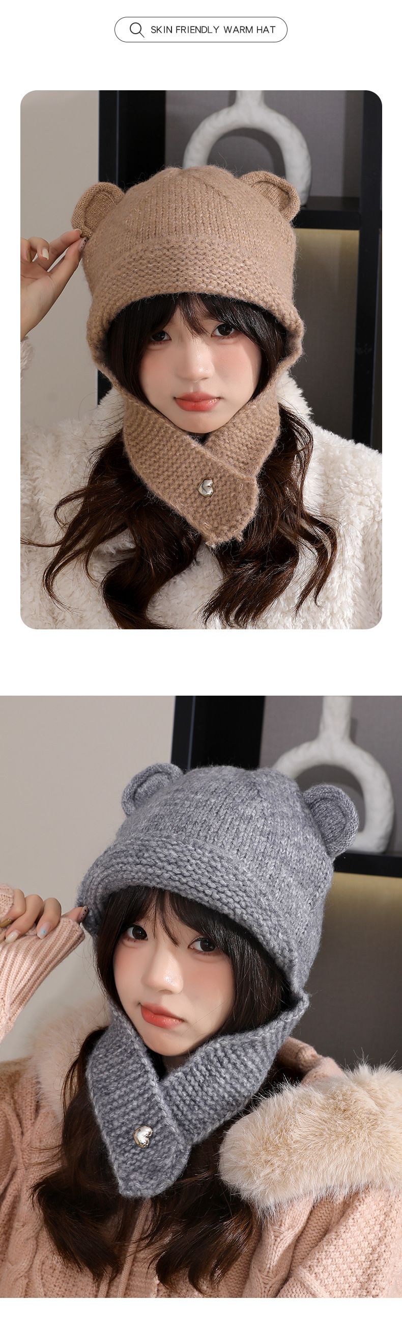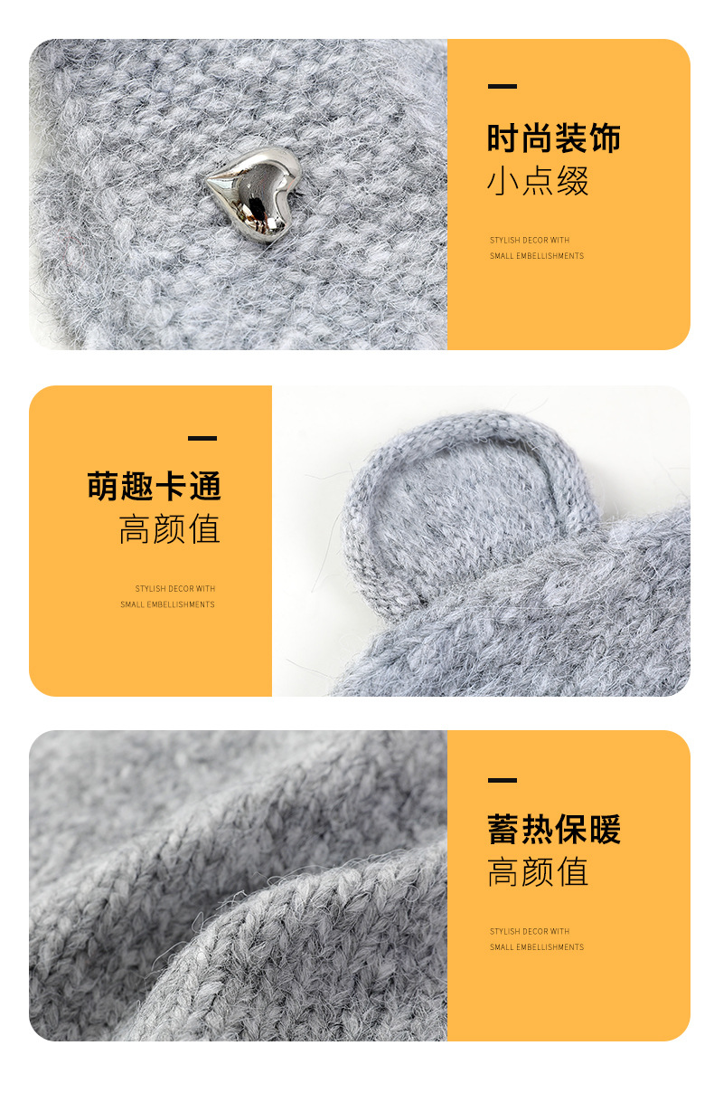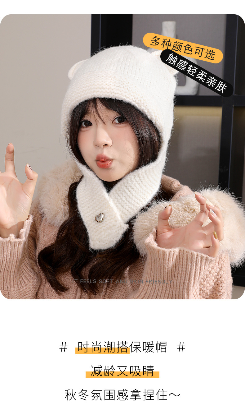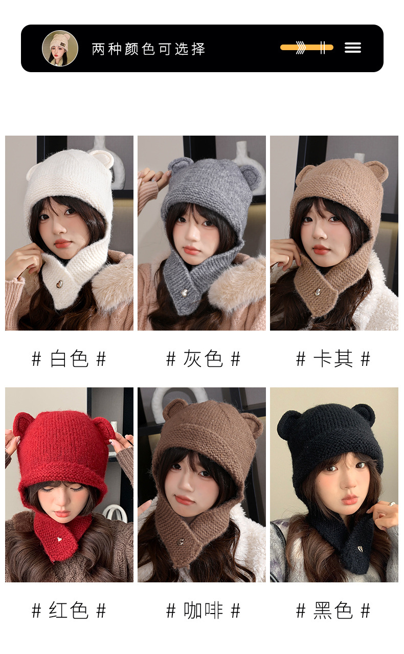 【时尚潮搭保暖帽!秋冬氛围感拿捏住~】秋冬新款小熊耳朵帽子女百搭可爱时尚潮针织帽冬季防寒保暖毛线帽,遮脸显小,超有氛围感。ry