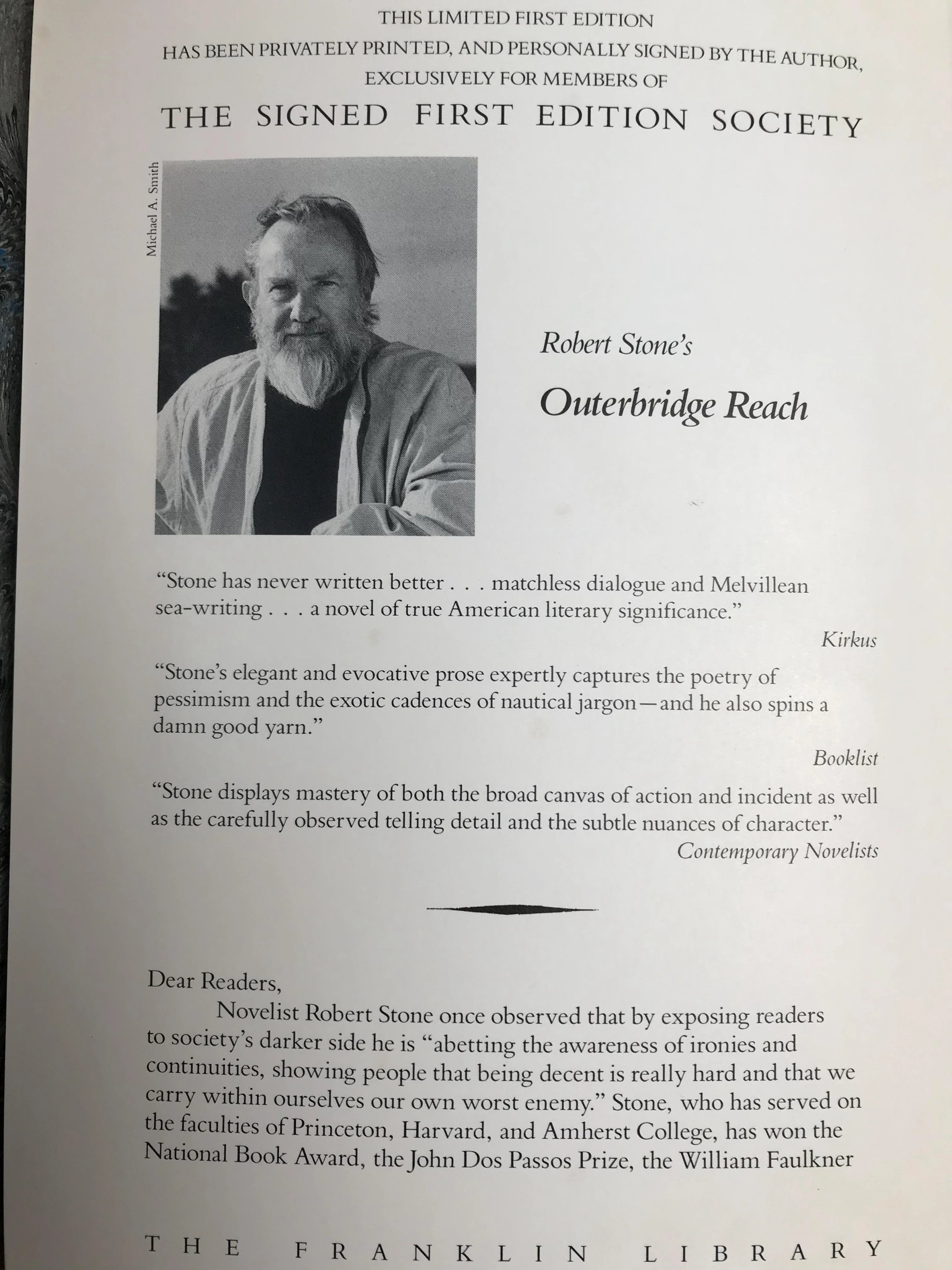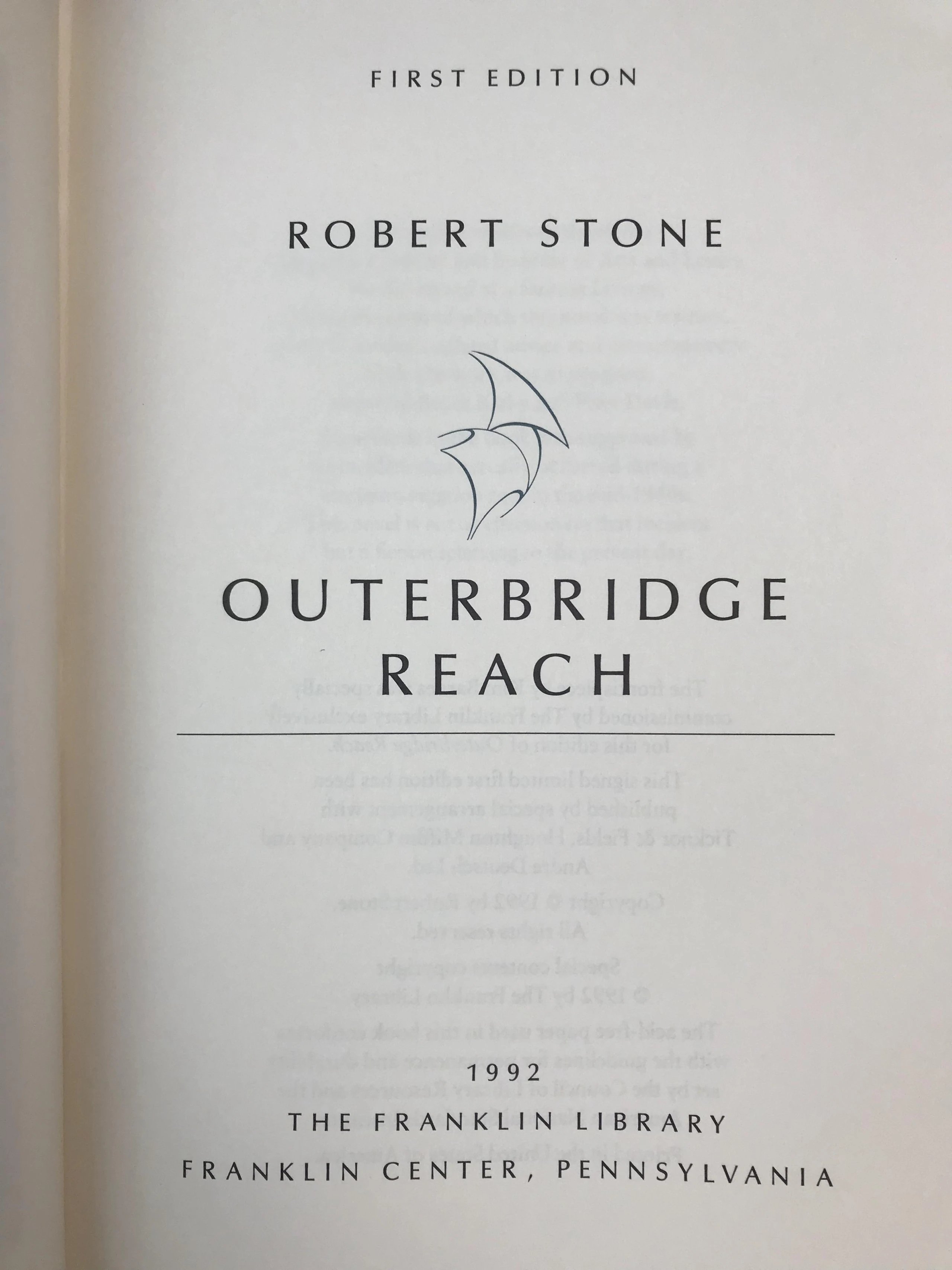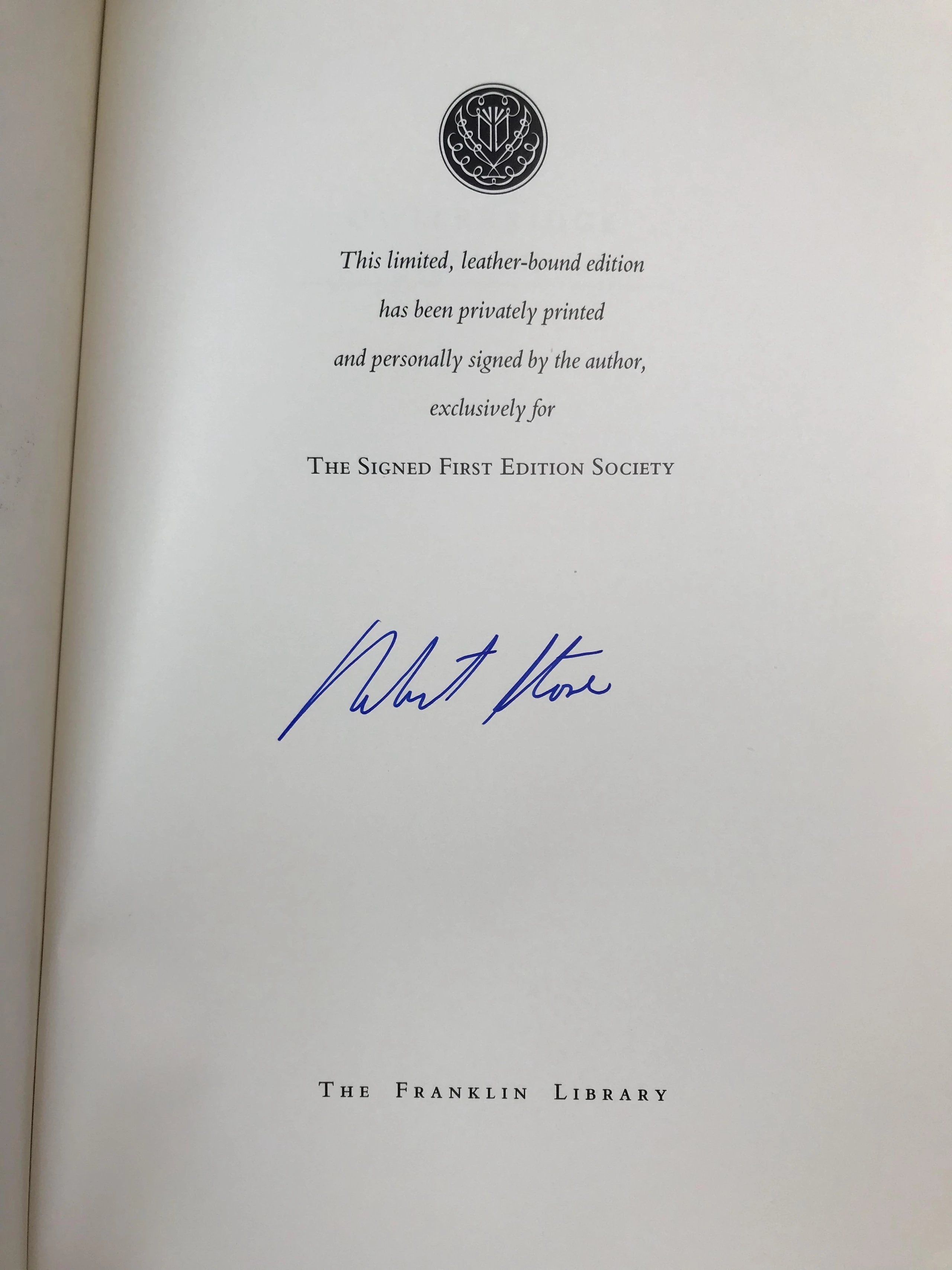 签名首版!罗伯特・斯通《奥特布里奇的延伸》 富兰克林图书馆豪华皮装本