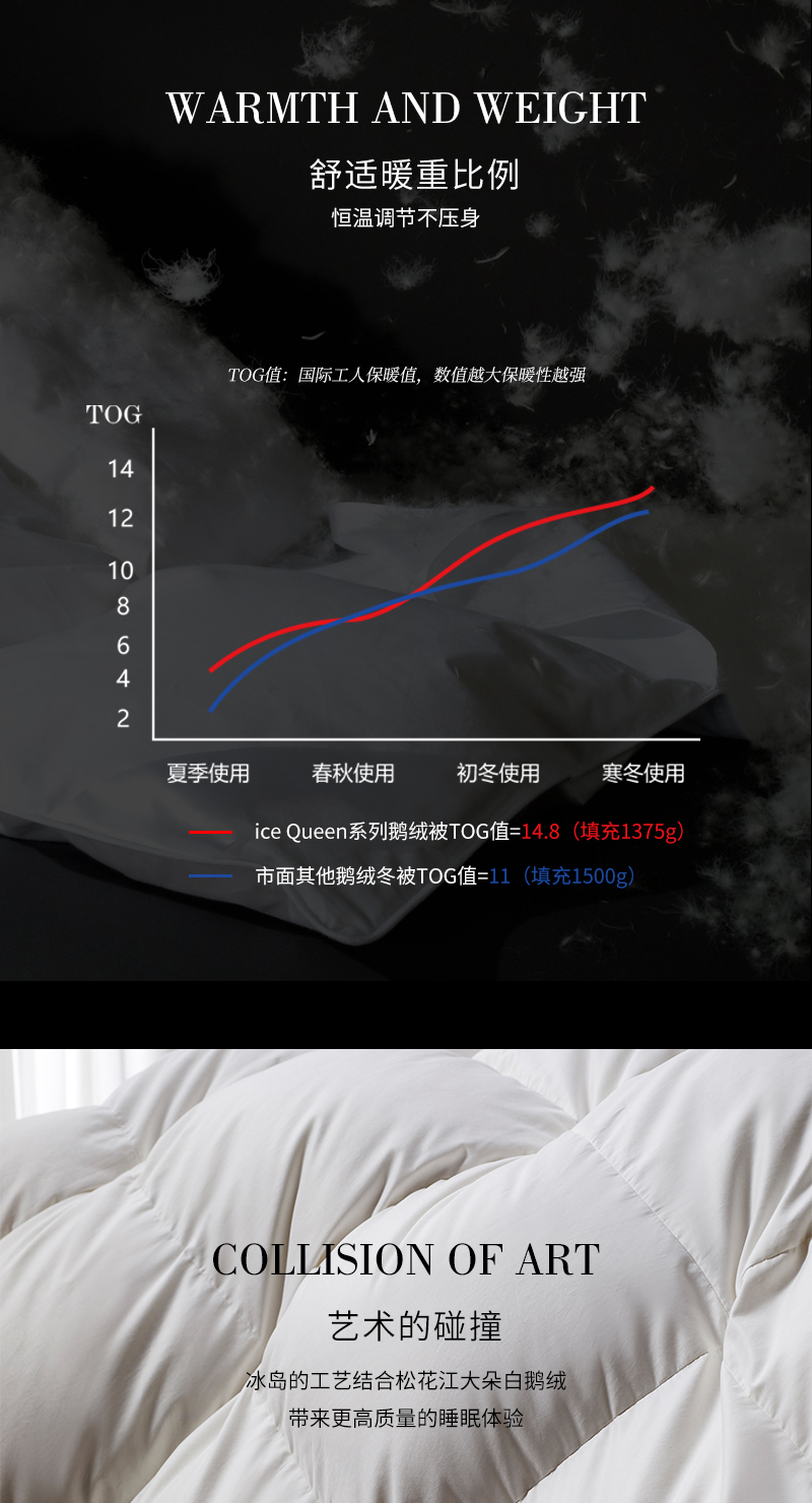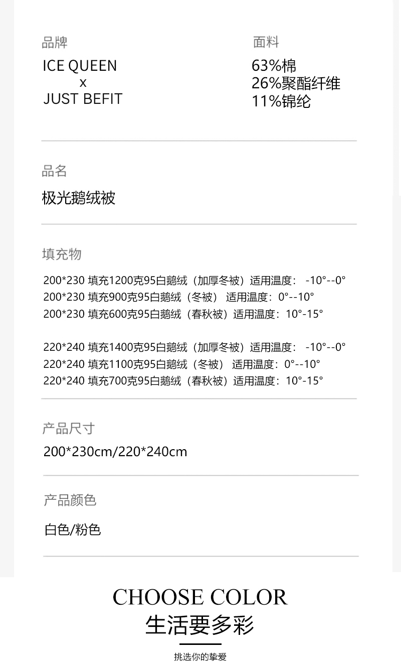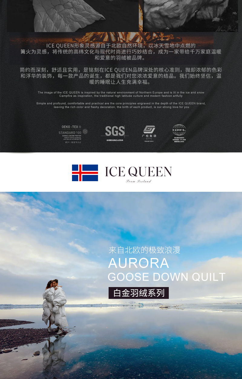 【鹅绒被】极光鹅绒被 ICEQUEEN冰雪皇后系列家用羽绒被子 95%大朵白鹅绒填充被芯,600-1400克可选