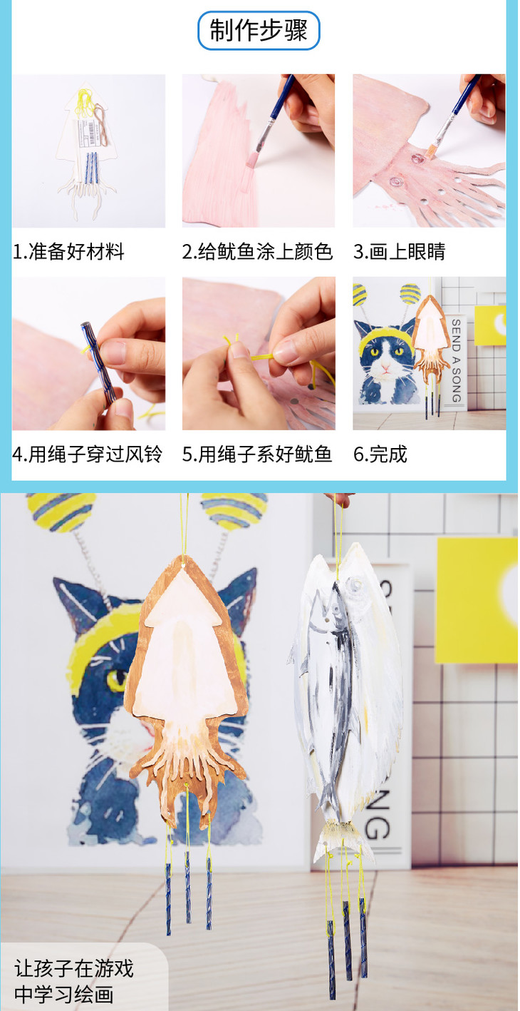 美可海味风铃超市美术绘画手工diy制作材料包幼儿园儿童创意趣味