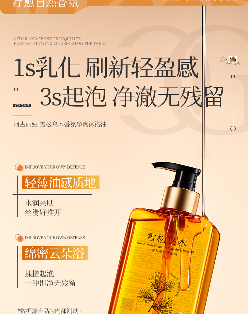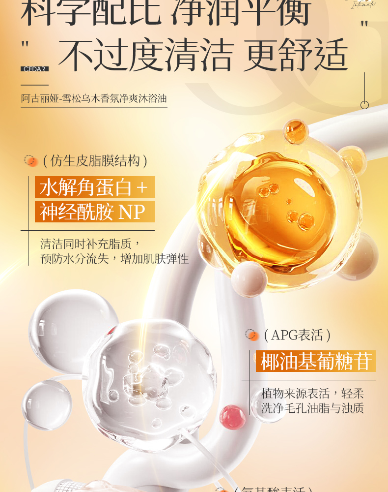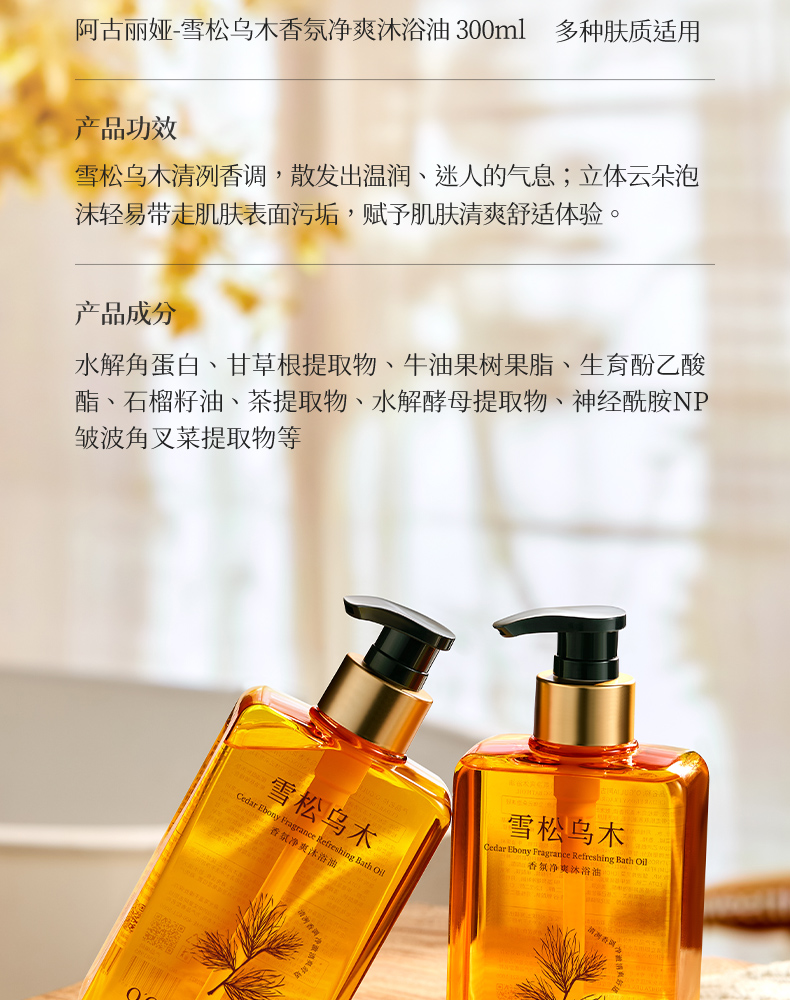 【香水级沐浴】阿古丽娅雪松乌木香氛净爽沐浴油 专利成分 疗愈香氛 肌肤水润 洗出少女肌 300ml