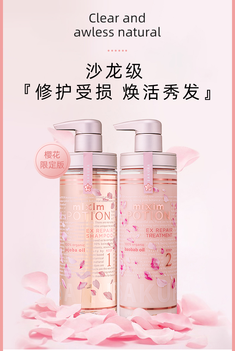 miximPOTION觅籍樱花限定洗发水护发素套装氨基酸无硅油440ml+440g 修护限定款