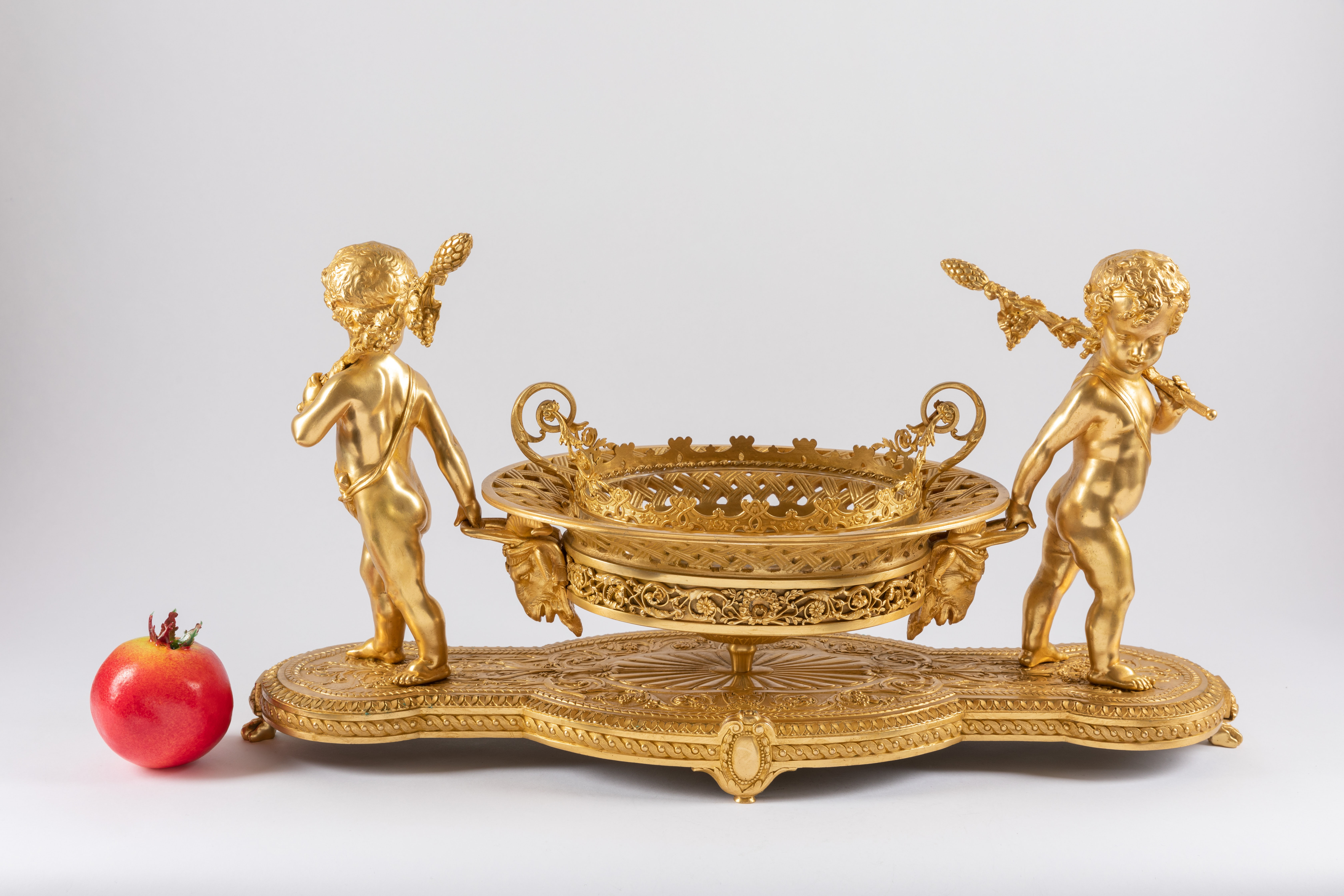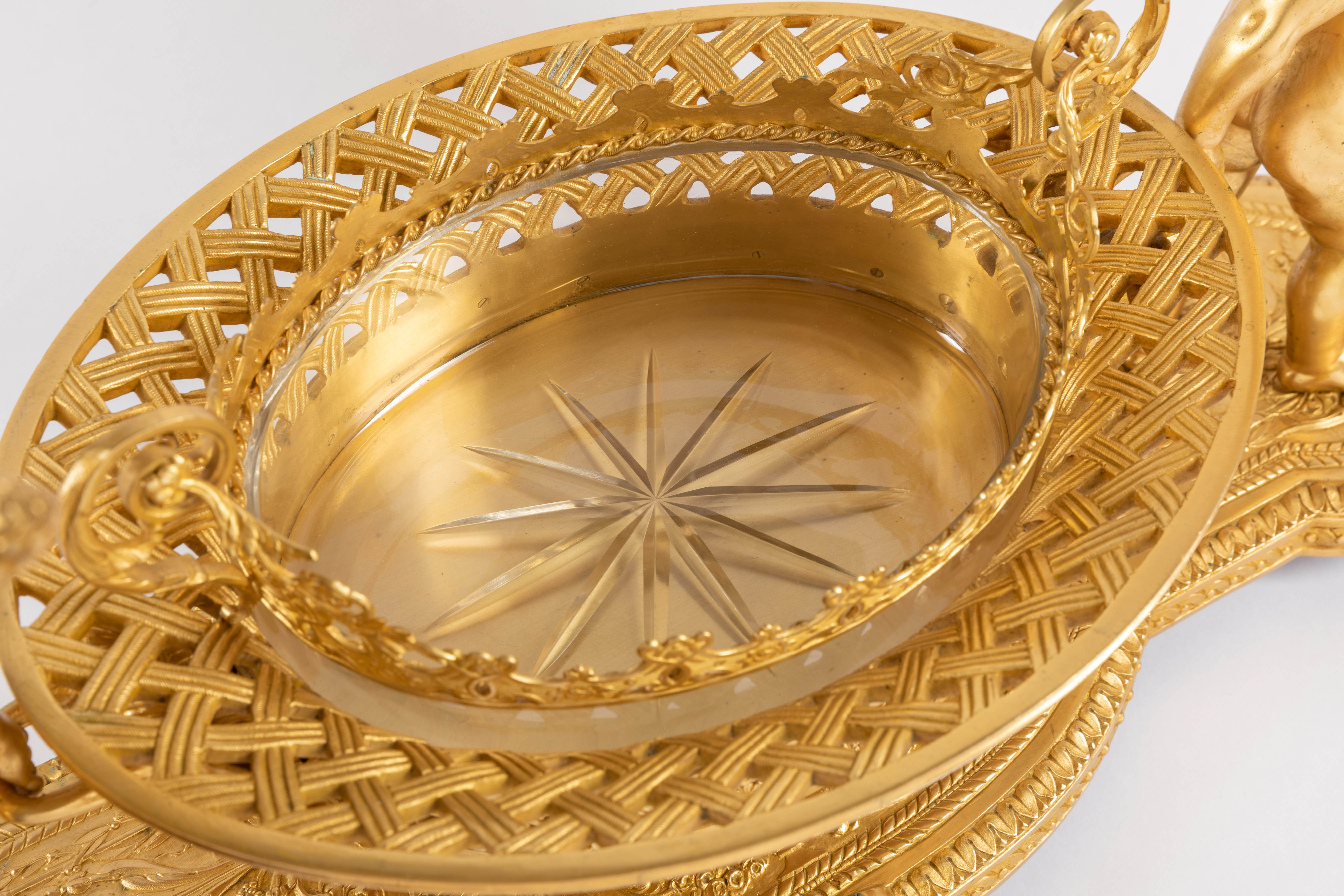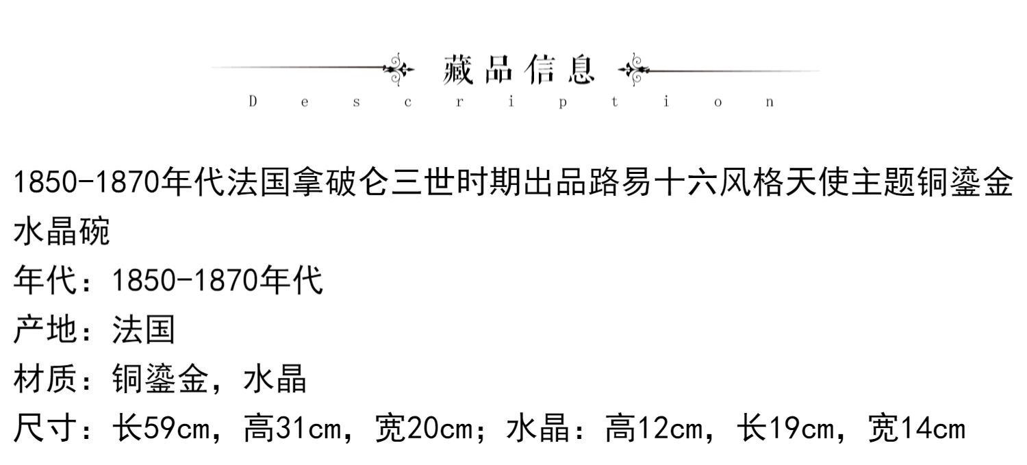 独角鹿西洋古董法国拿破仑三世时期路易十六风格天使铜鎏金水晶碗