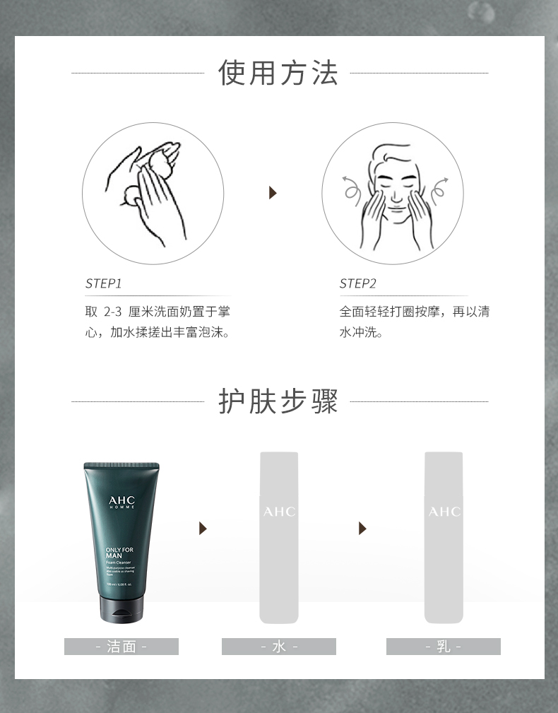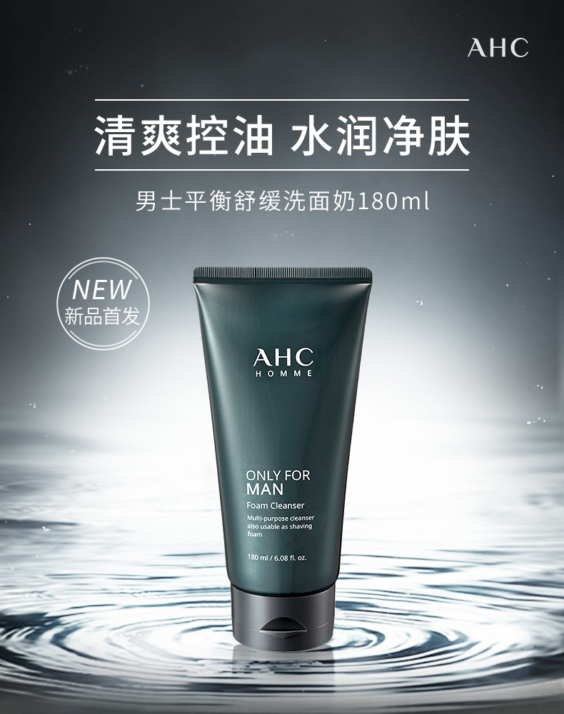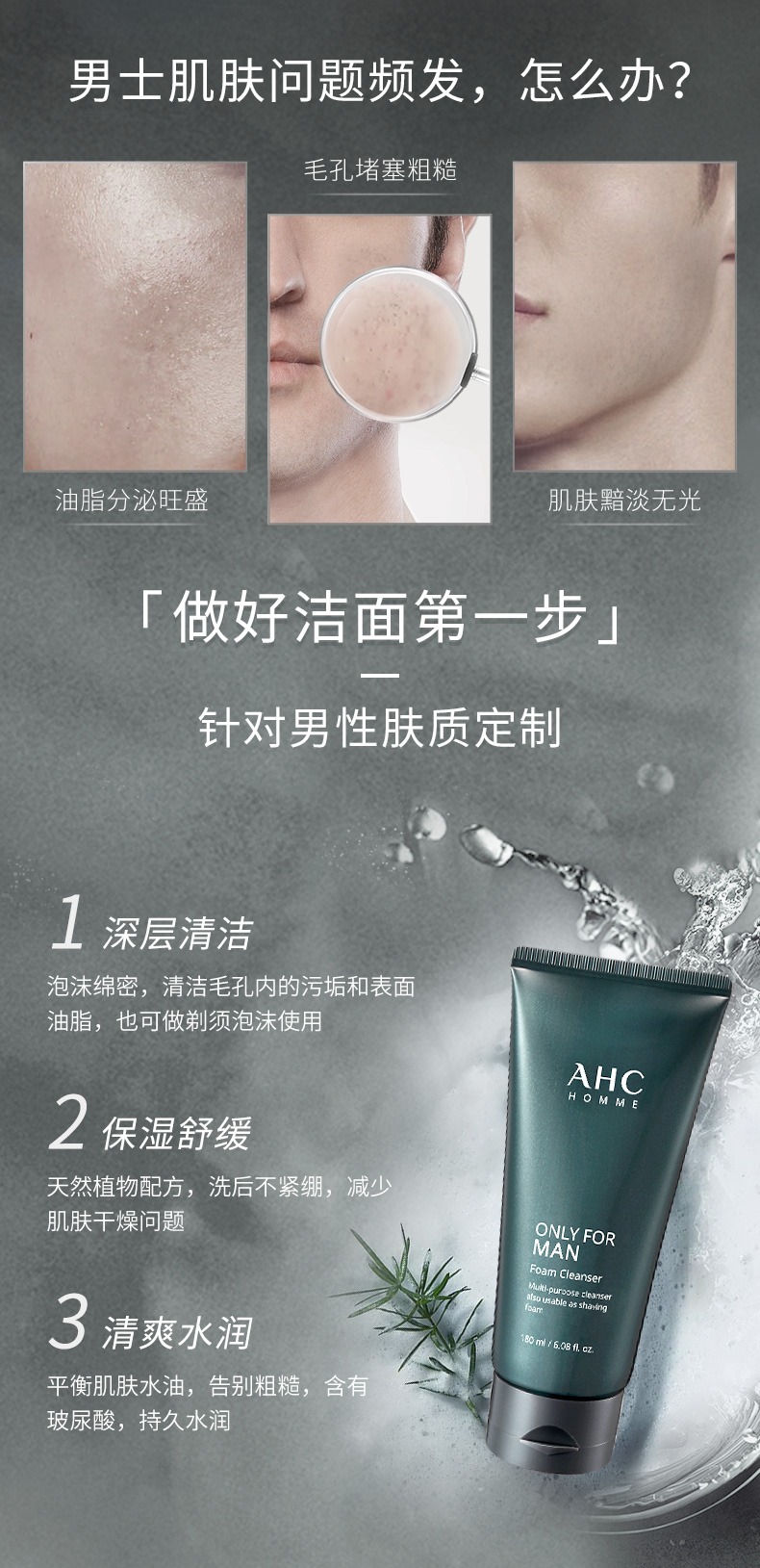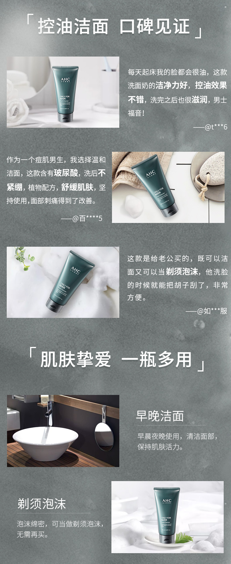 韩国 AHC爱和纯 男士控油去黑头洗面奶 180ml