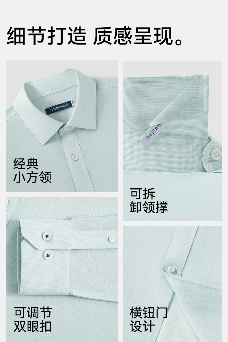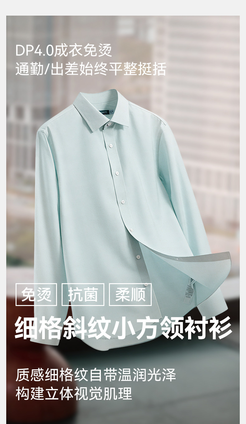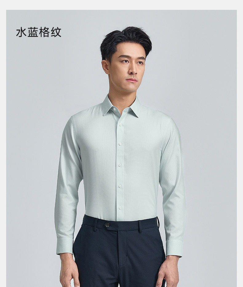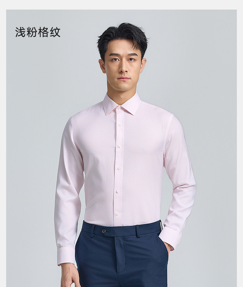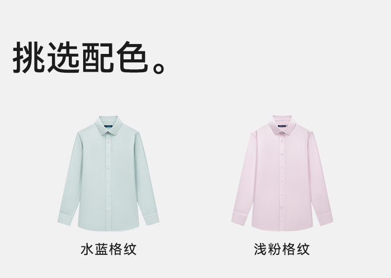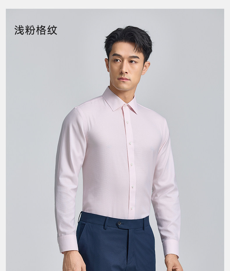 【春夏新品】十如仕男士纯棉细格斜纹小方领衬衫免烫高砂支301-40