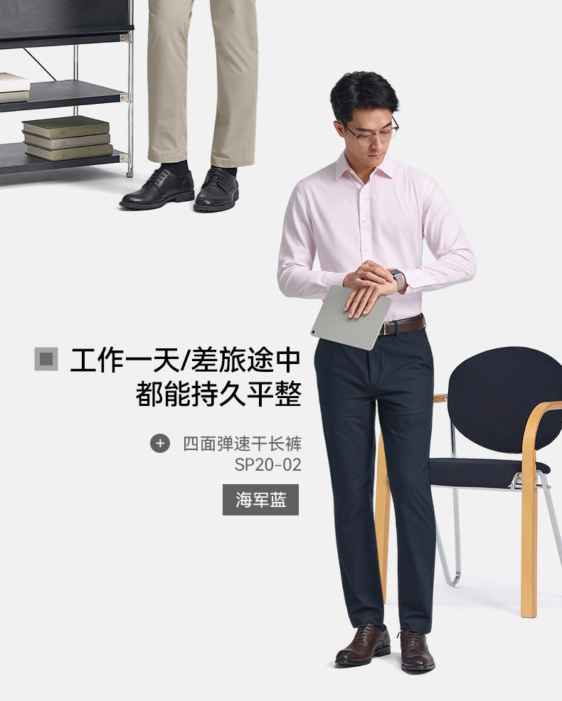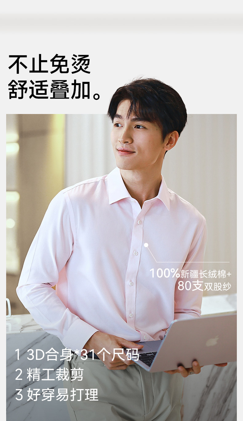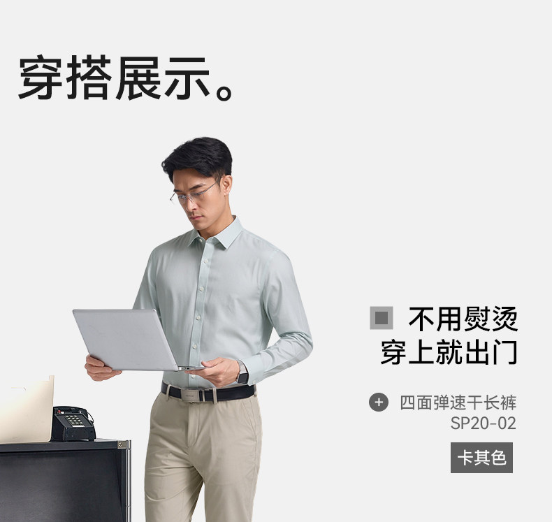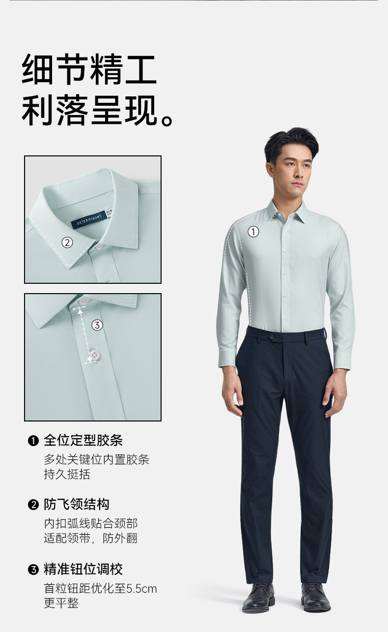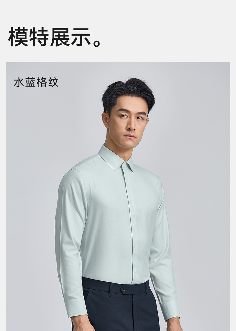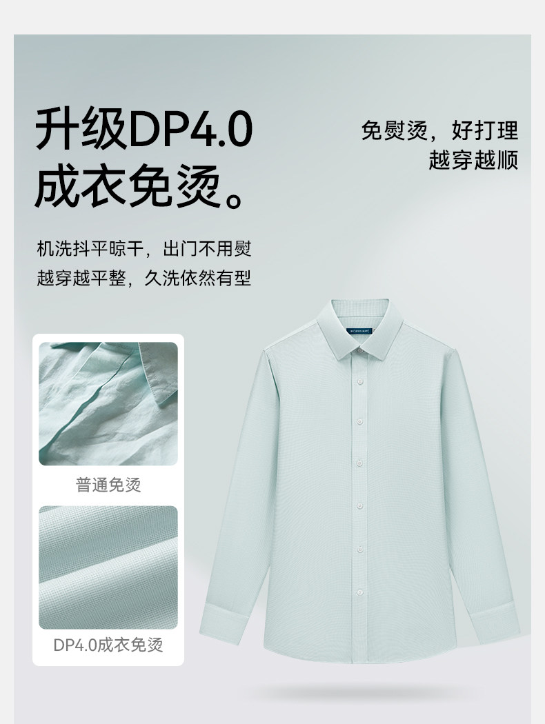 【春夏新品】十如仕男士纯棉细格斜纹小方领衬衫免烫高砂支301-40