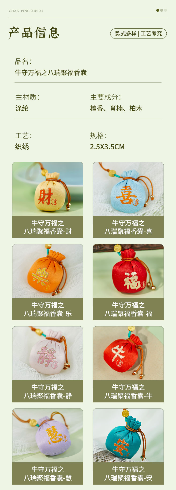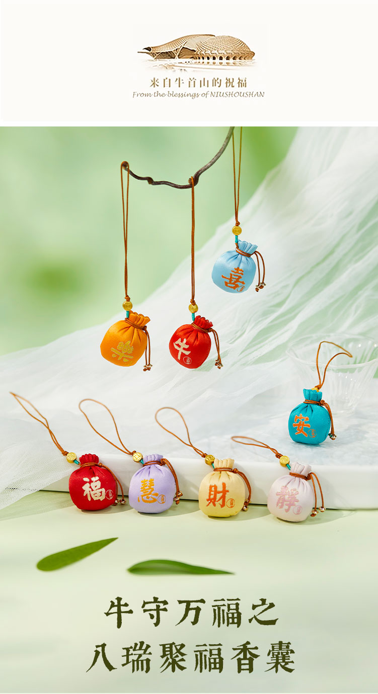 牛首山文创牛守万福之八瑞聚福香囊南京纪念品国风随身香包小挂件