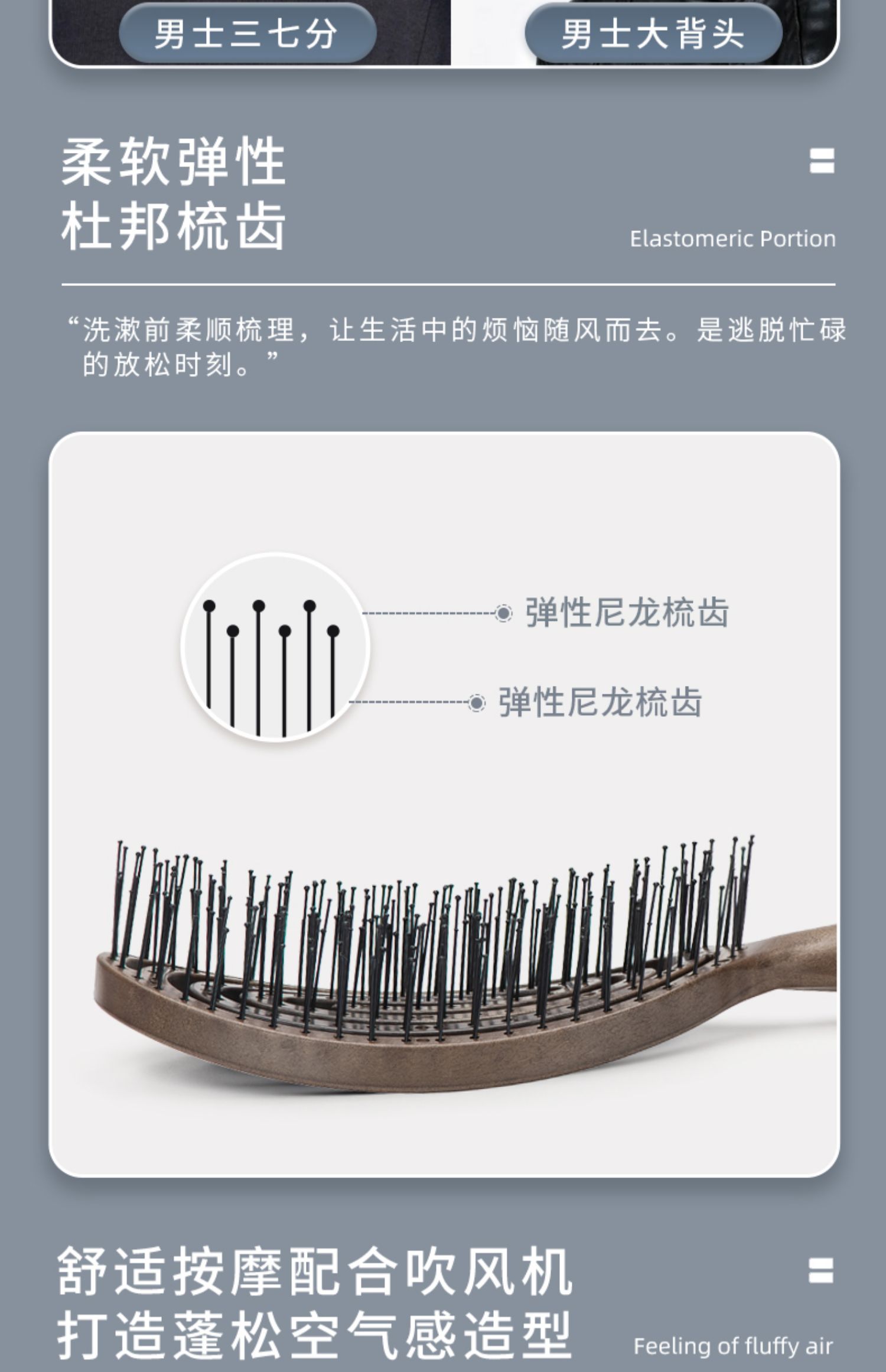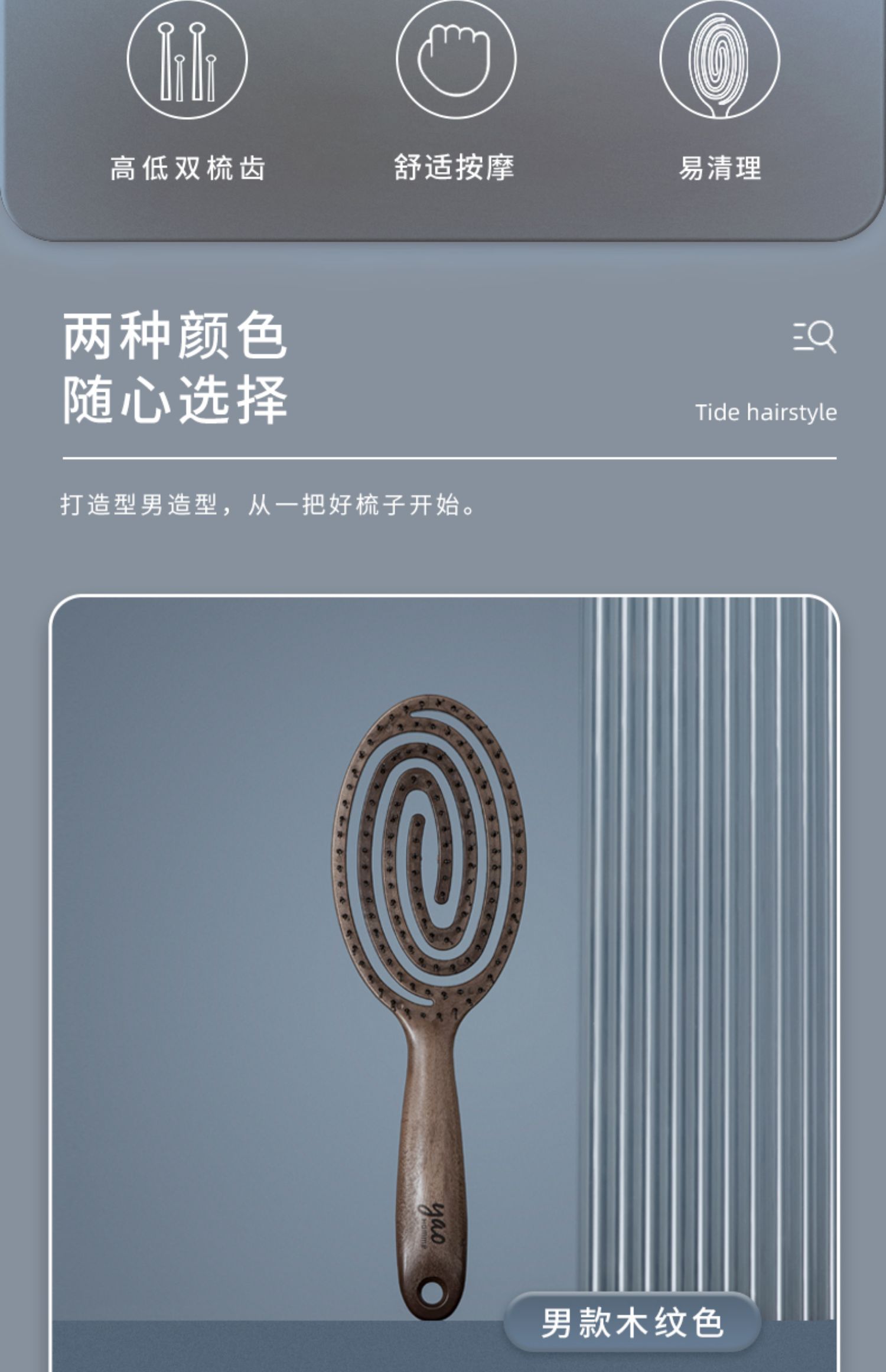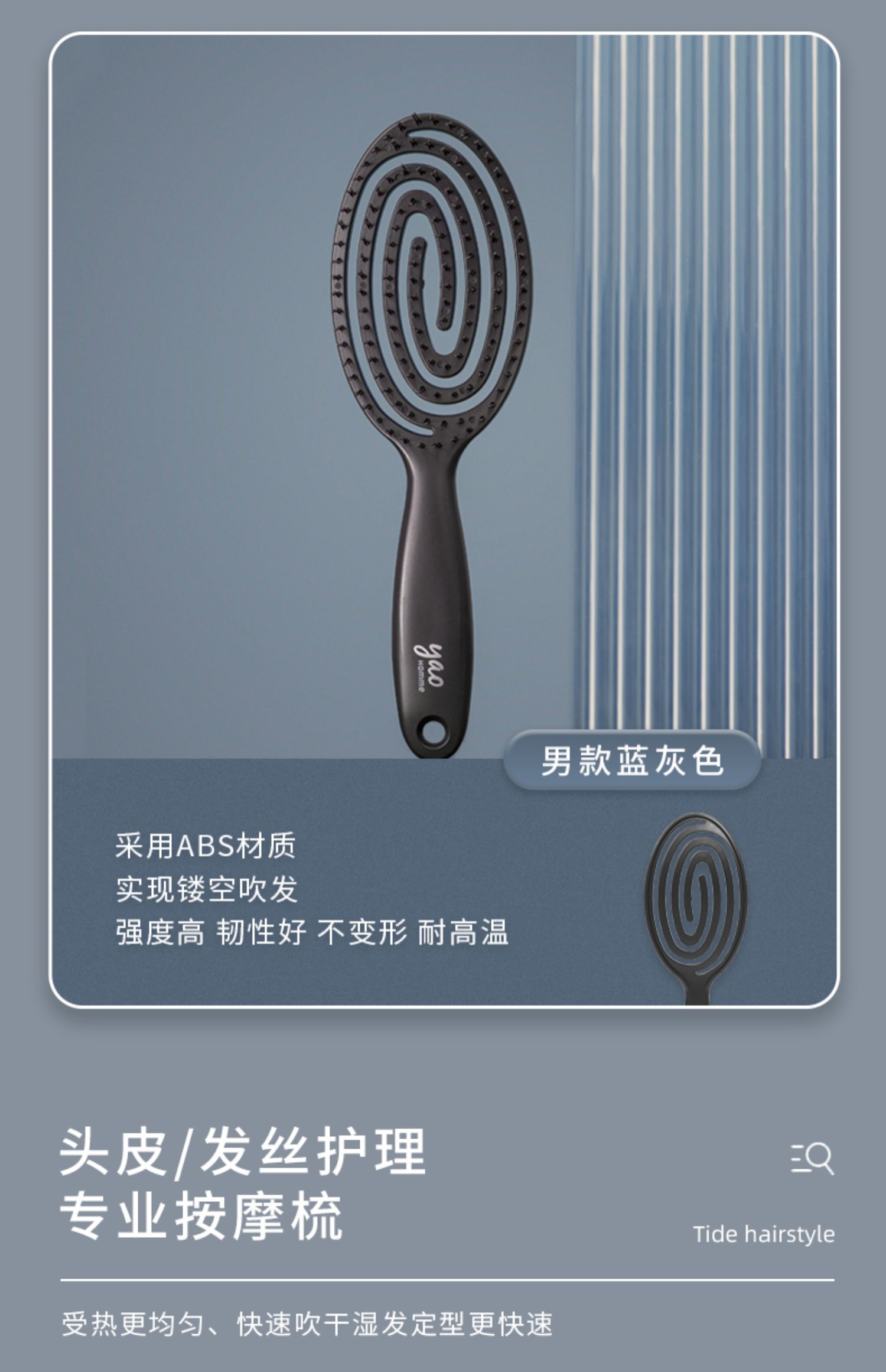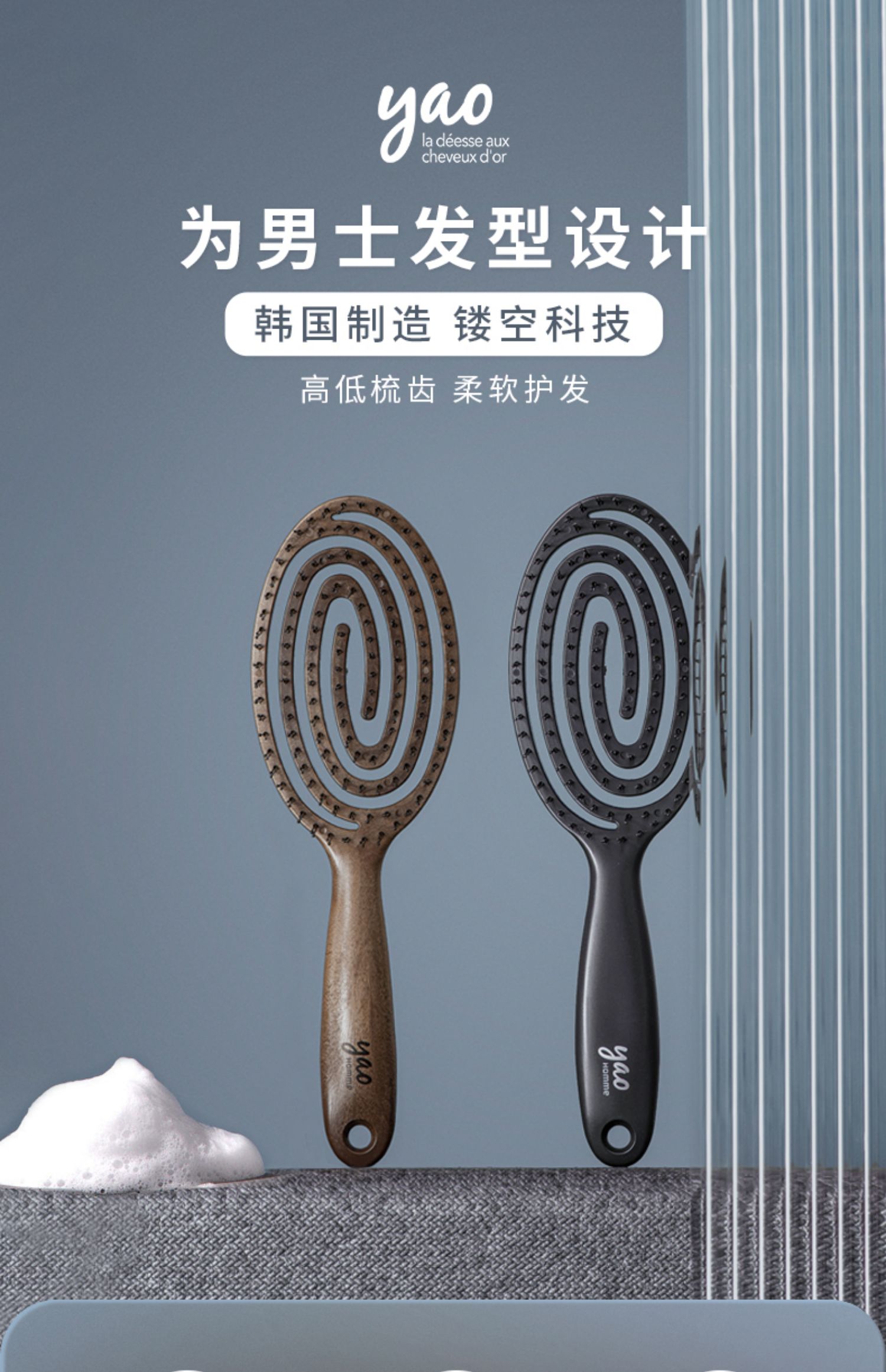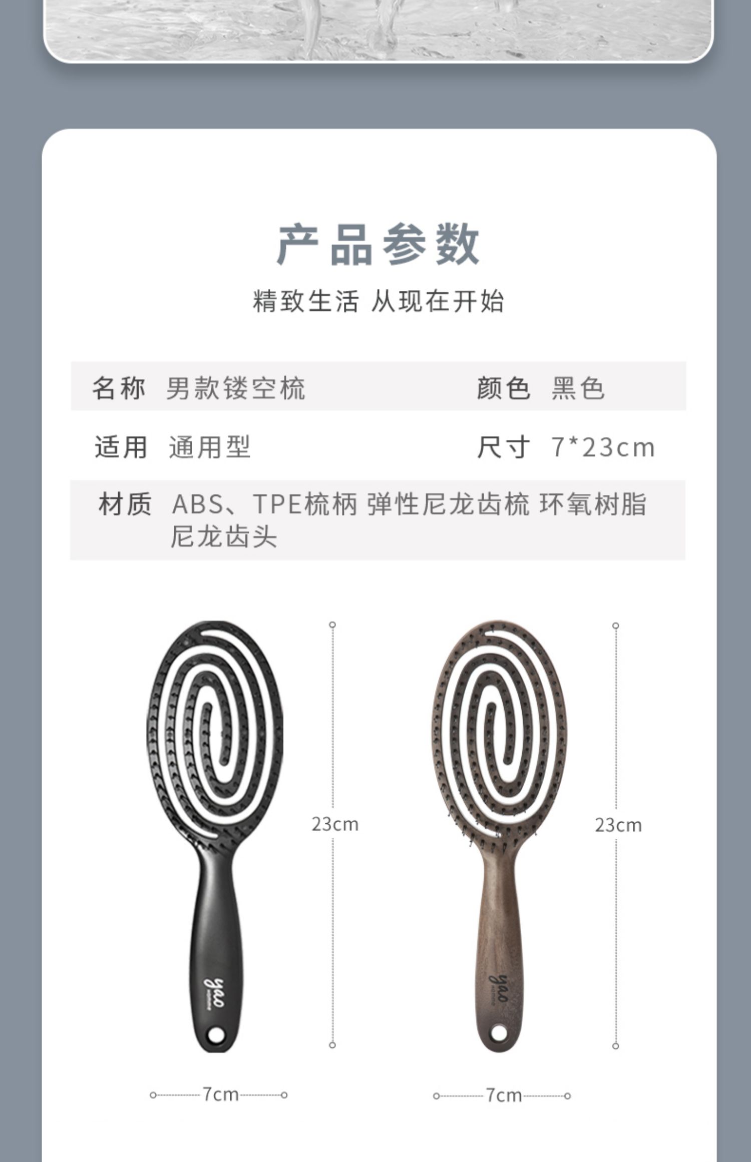 韩国yao 镂空按摩梳 椭圆尼龙男士专款 黑色