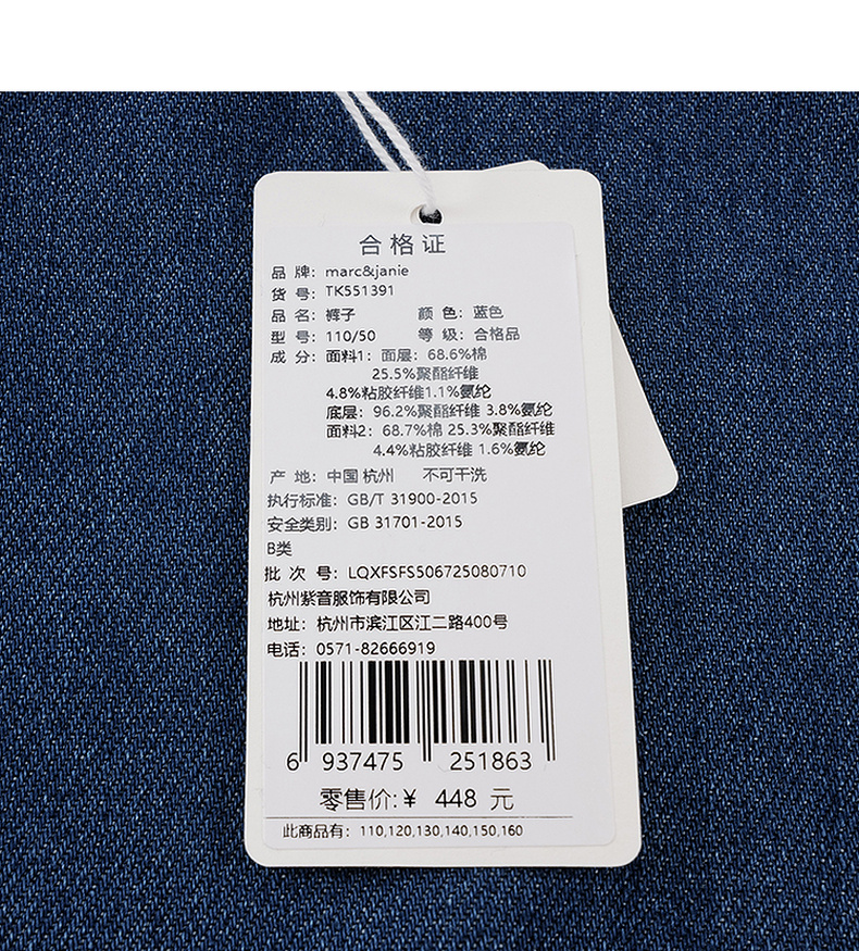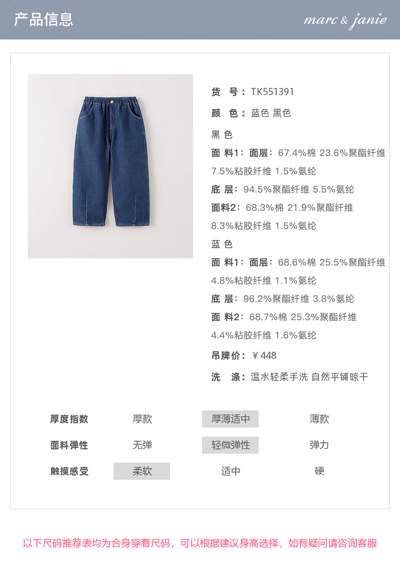 【奥利绒】马克珍妮女童挺括有型牛仔萝卜裤2025年秋冬新款551391