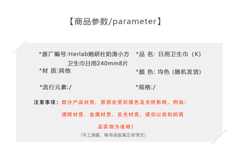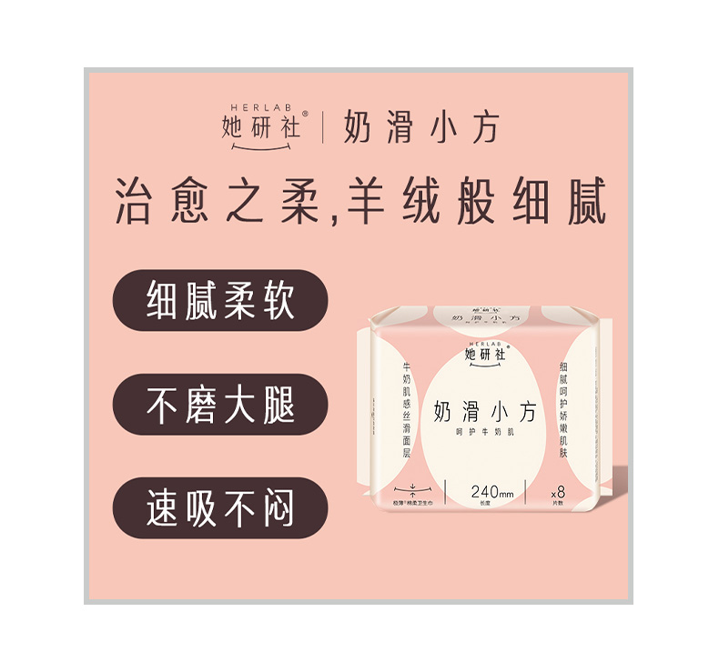 Herlab她研社奶滑小方卫生巾日用240mm8片日用卫生巾158743728