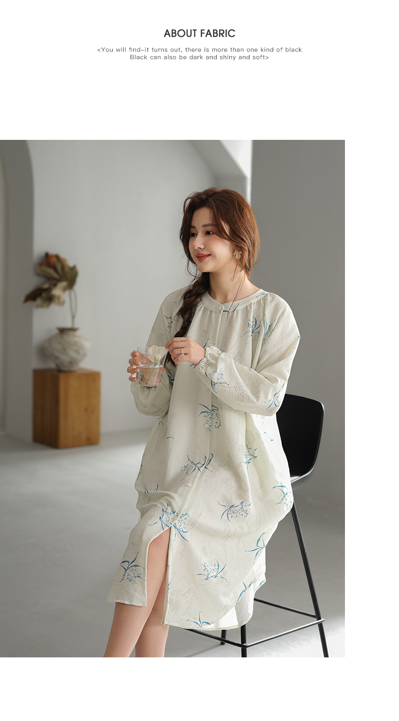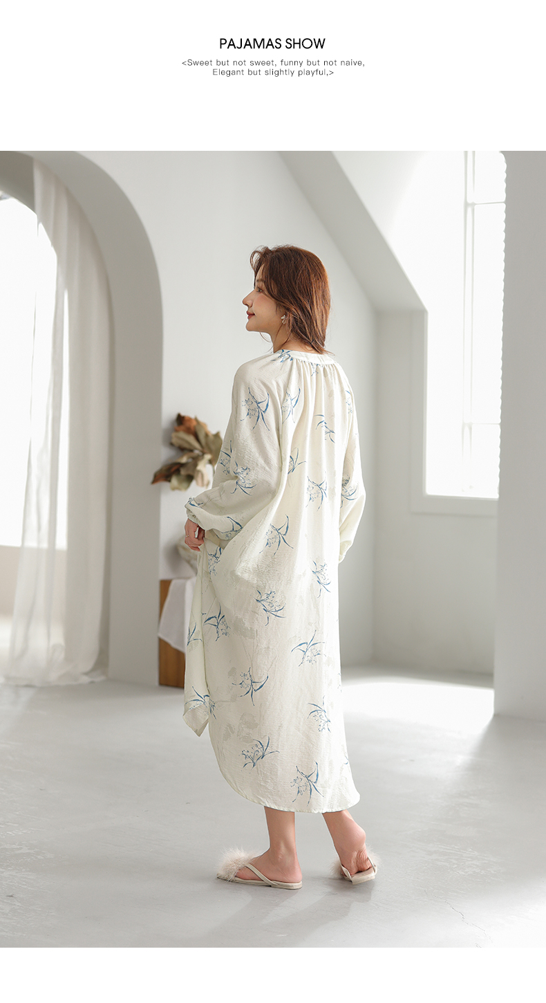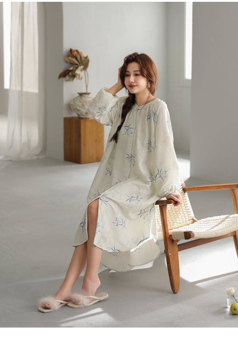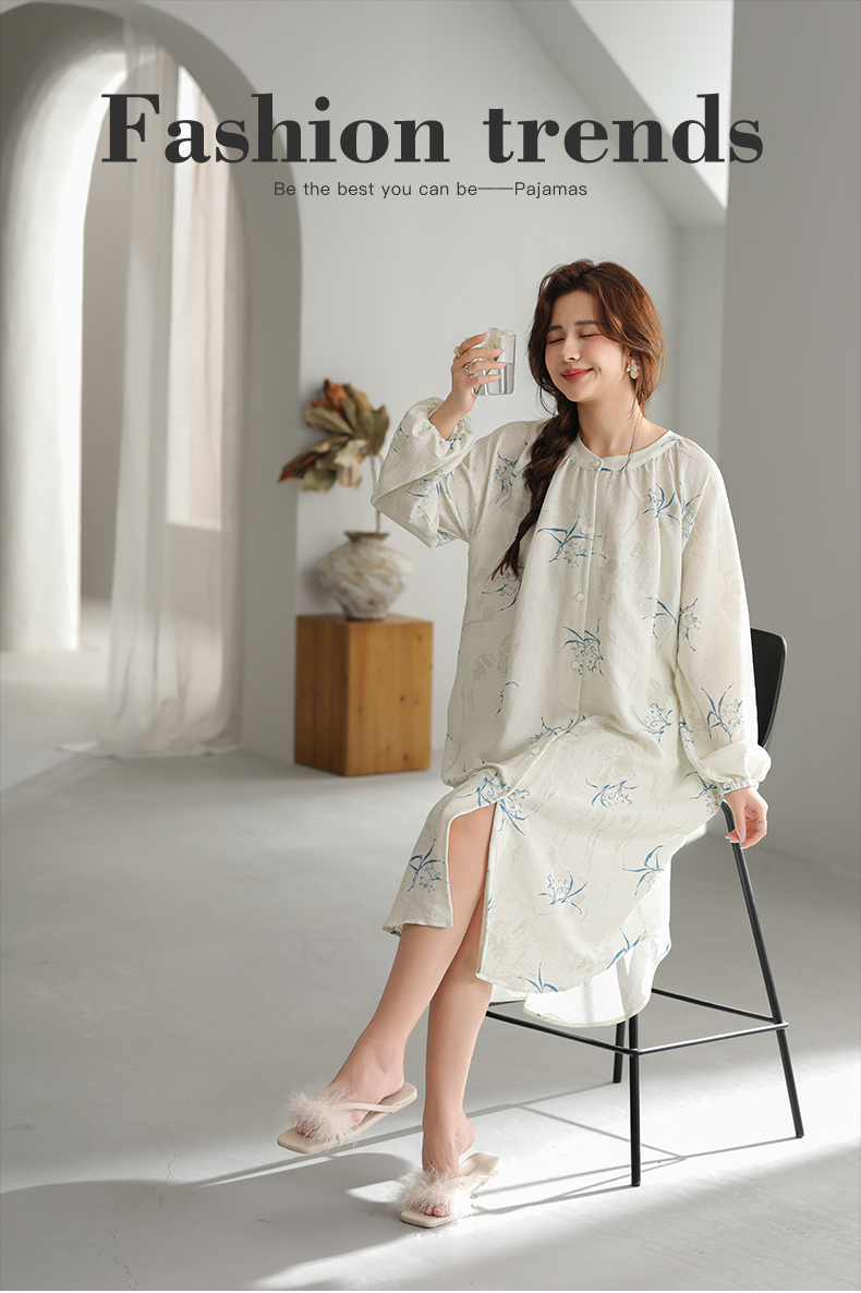 可人儿小众设计新款泡泡绵女士睡裙春秋长袖少女睡衣可外穿连衣裙