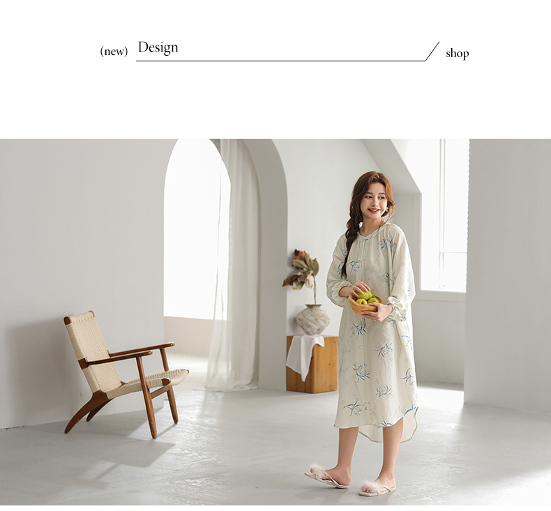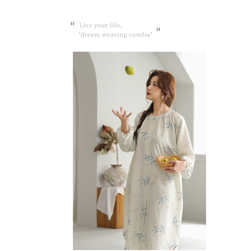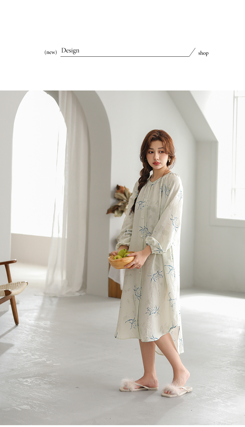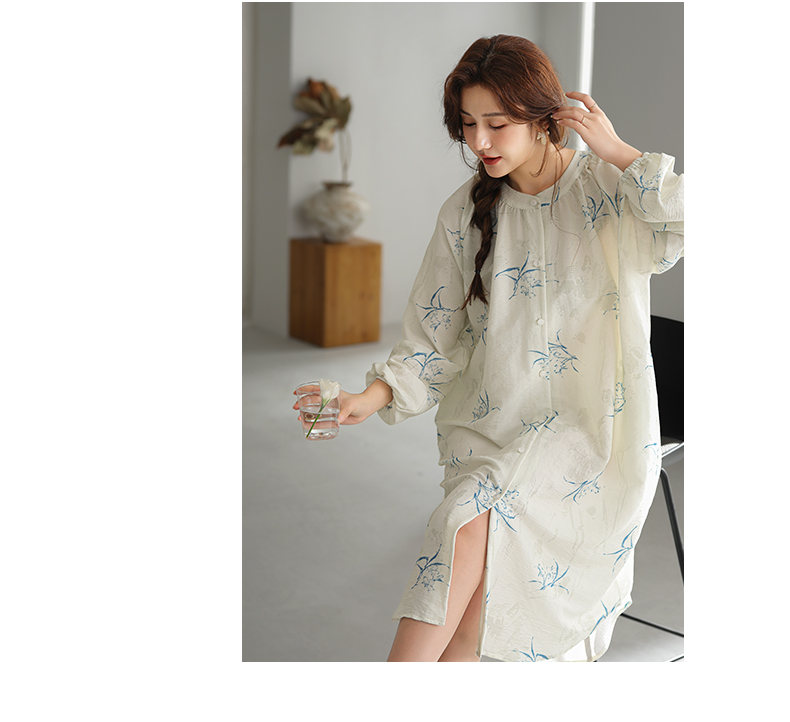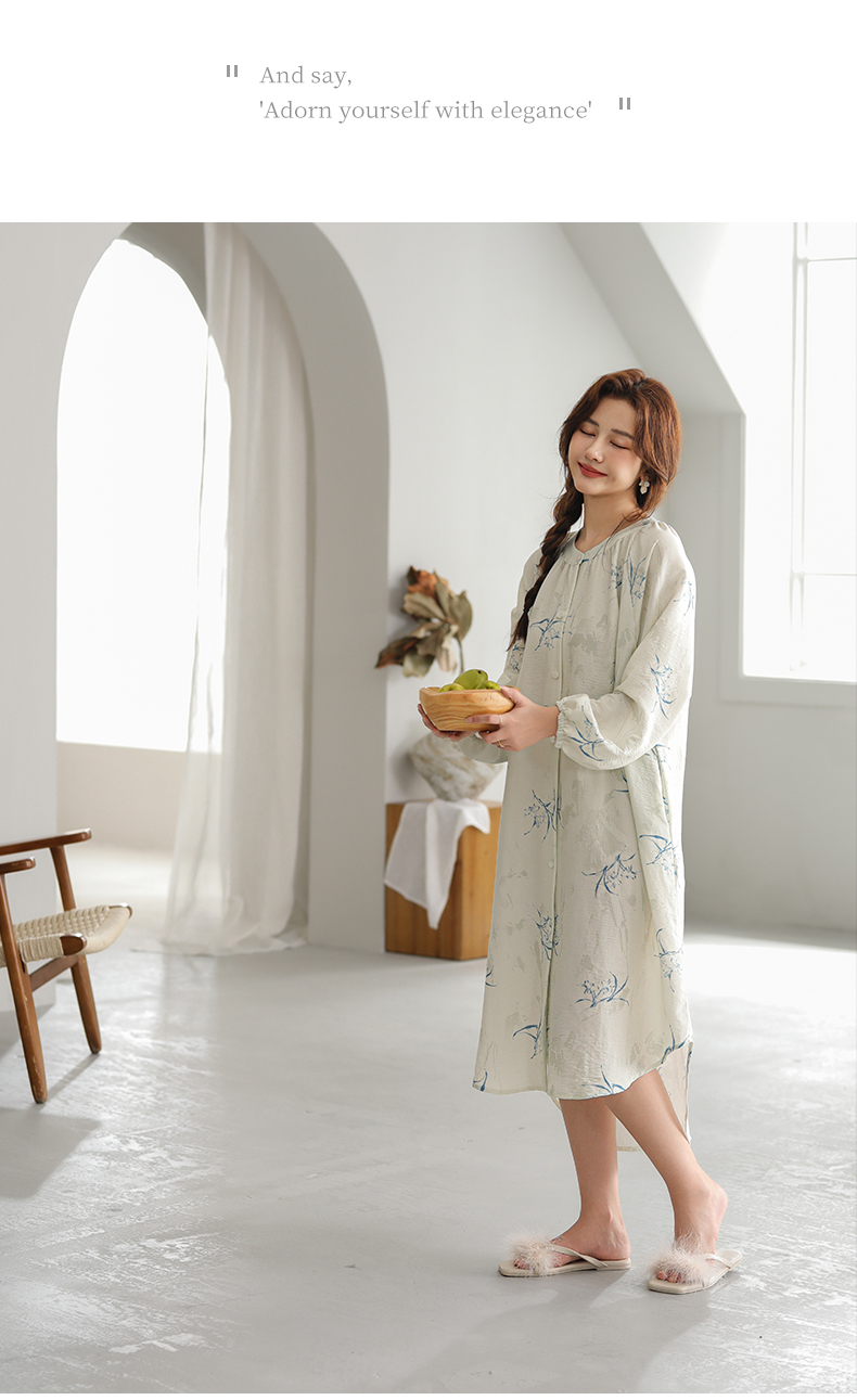可人儿小众设计新款泡泡绵女士睡裙春秋长袖少女睡衣可外穿连衣裙