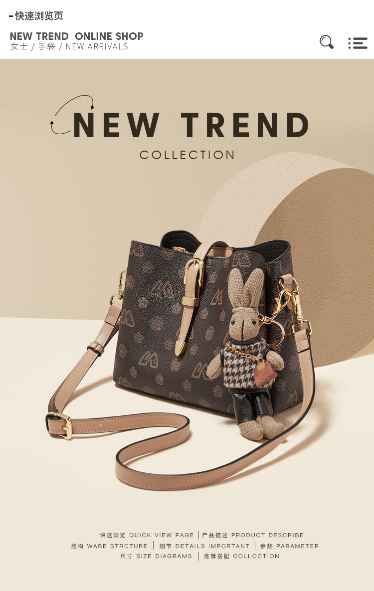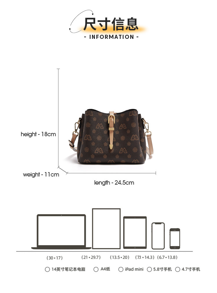 Safiya/索菲娅2022新款印花水桶包时尚单肩包包女式斜挎包女包 SF9140021Y