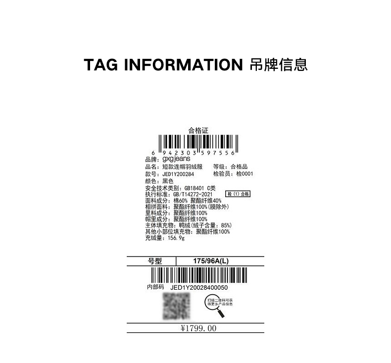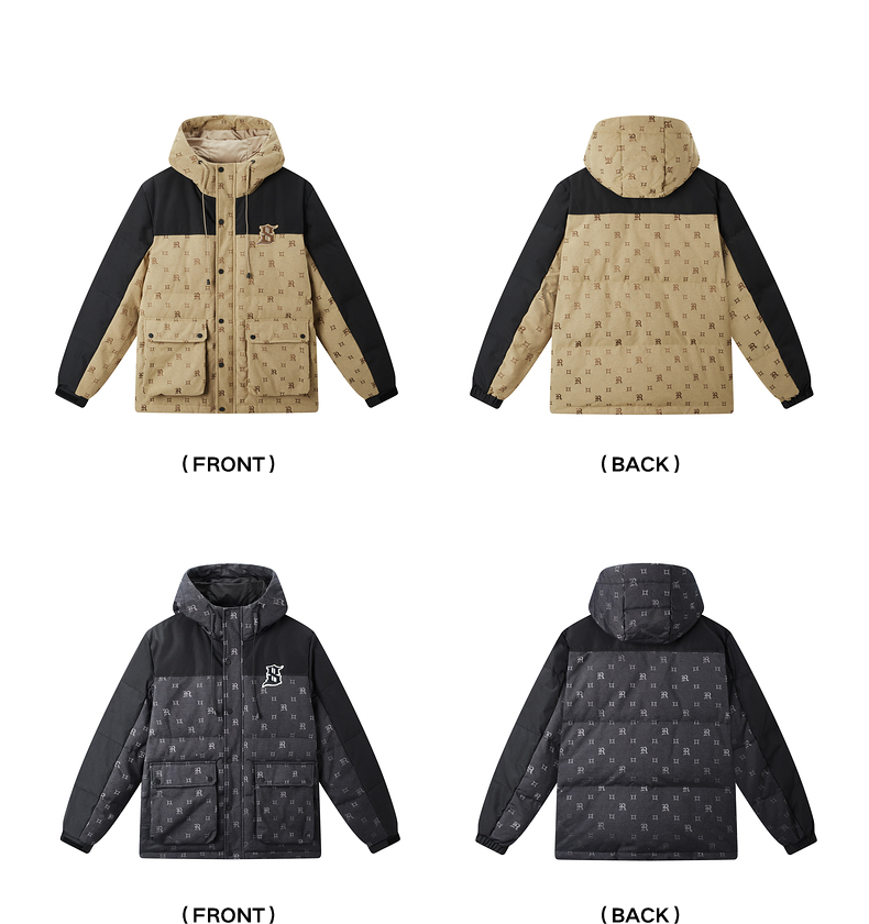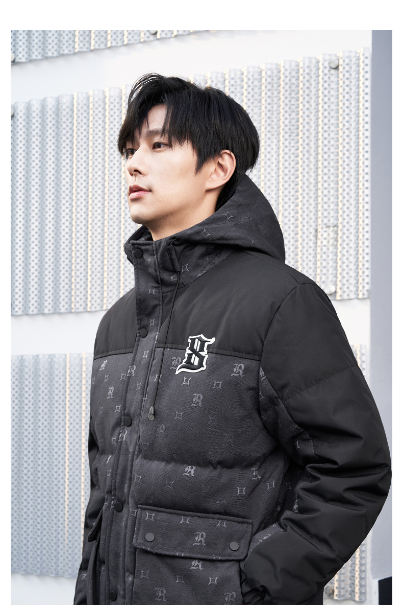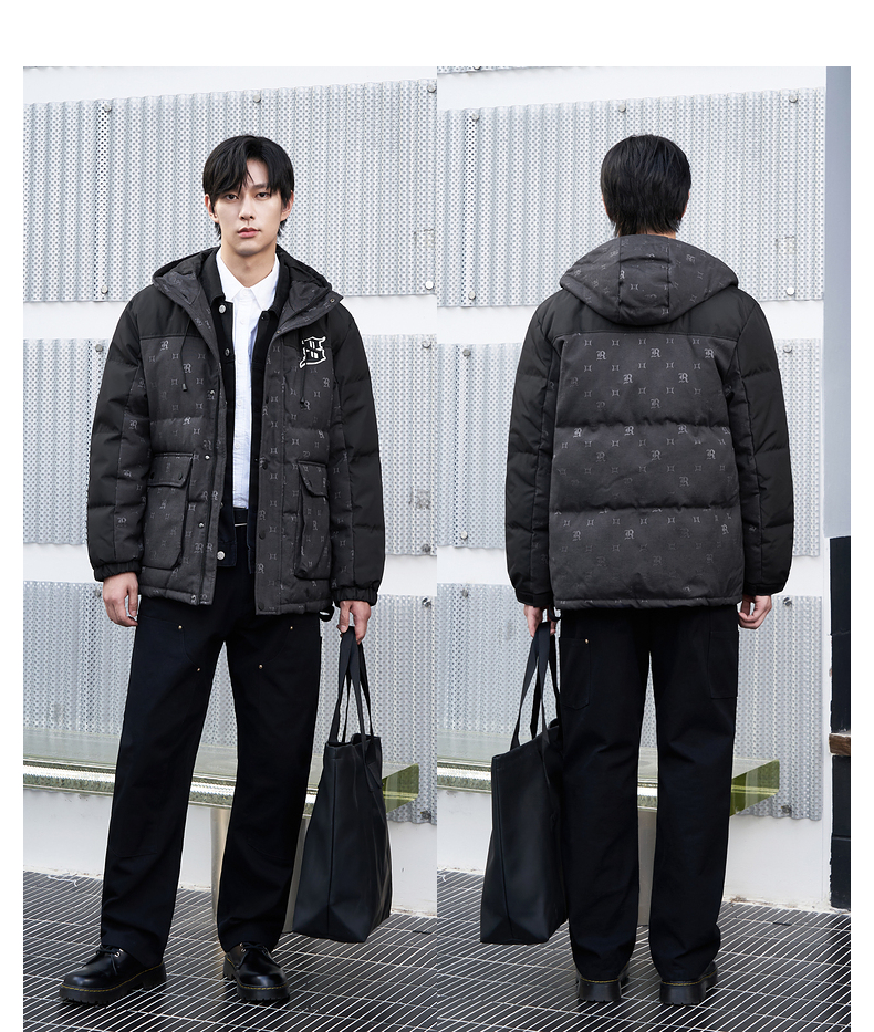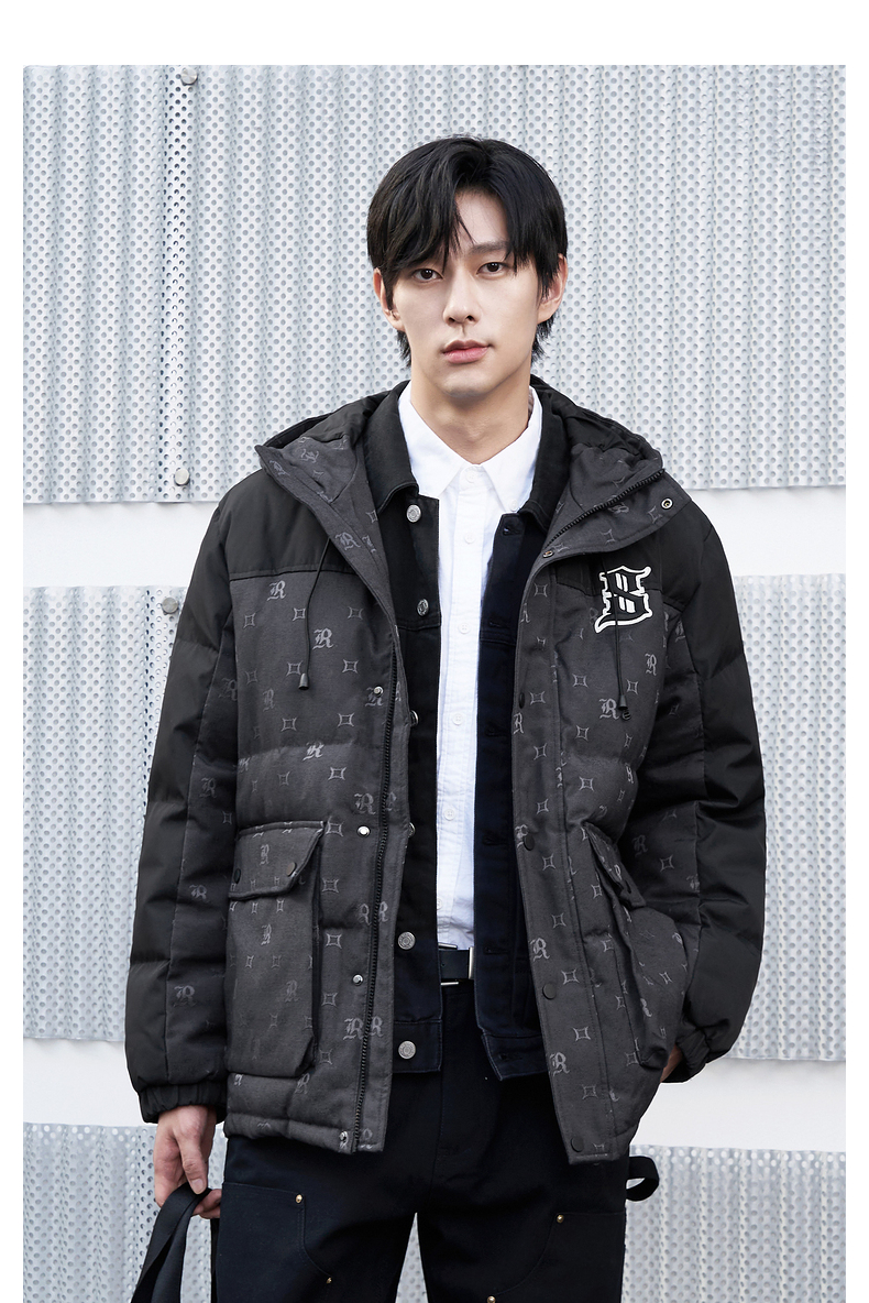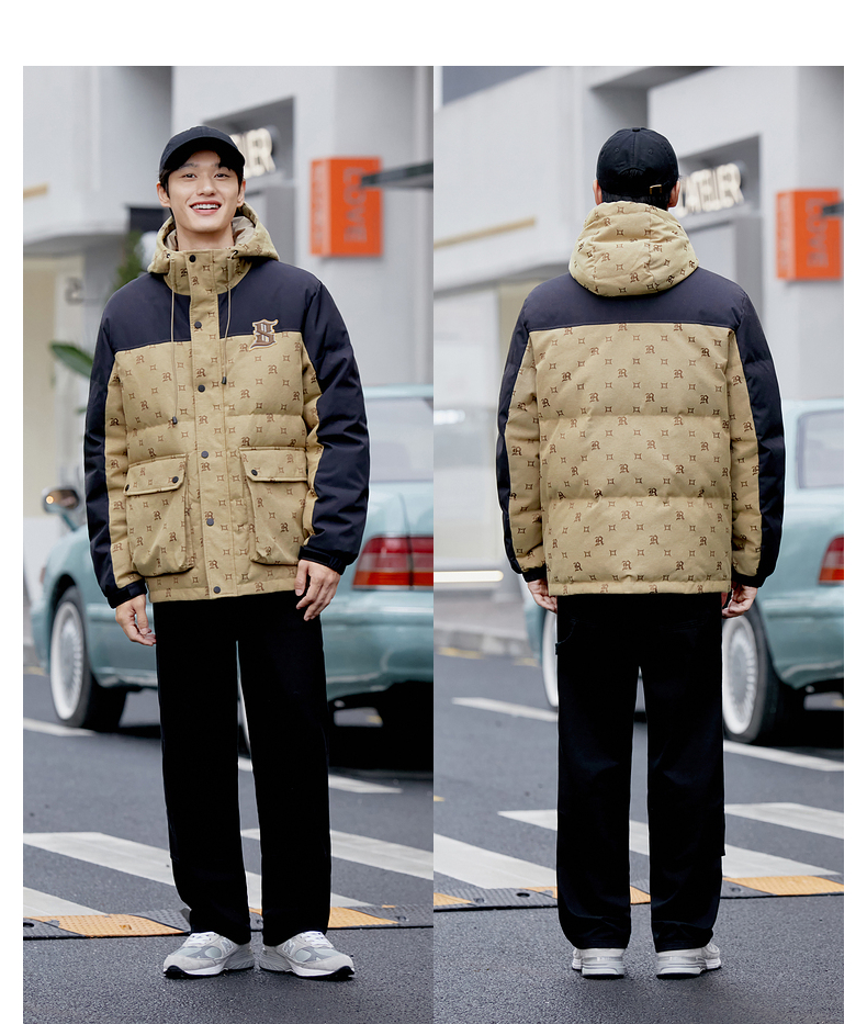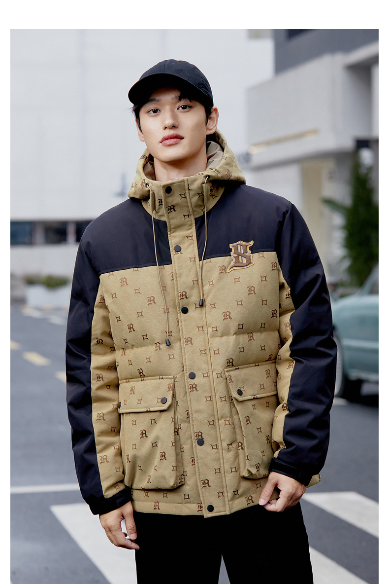 gxg.jeans男装冬季羽绒服 潮流撞色满印老花设计短款连帽羽绒服JED1Y200284
