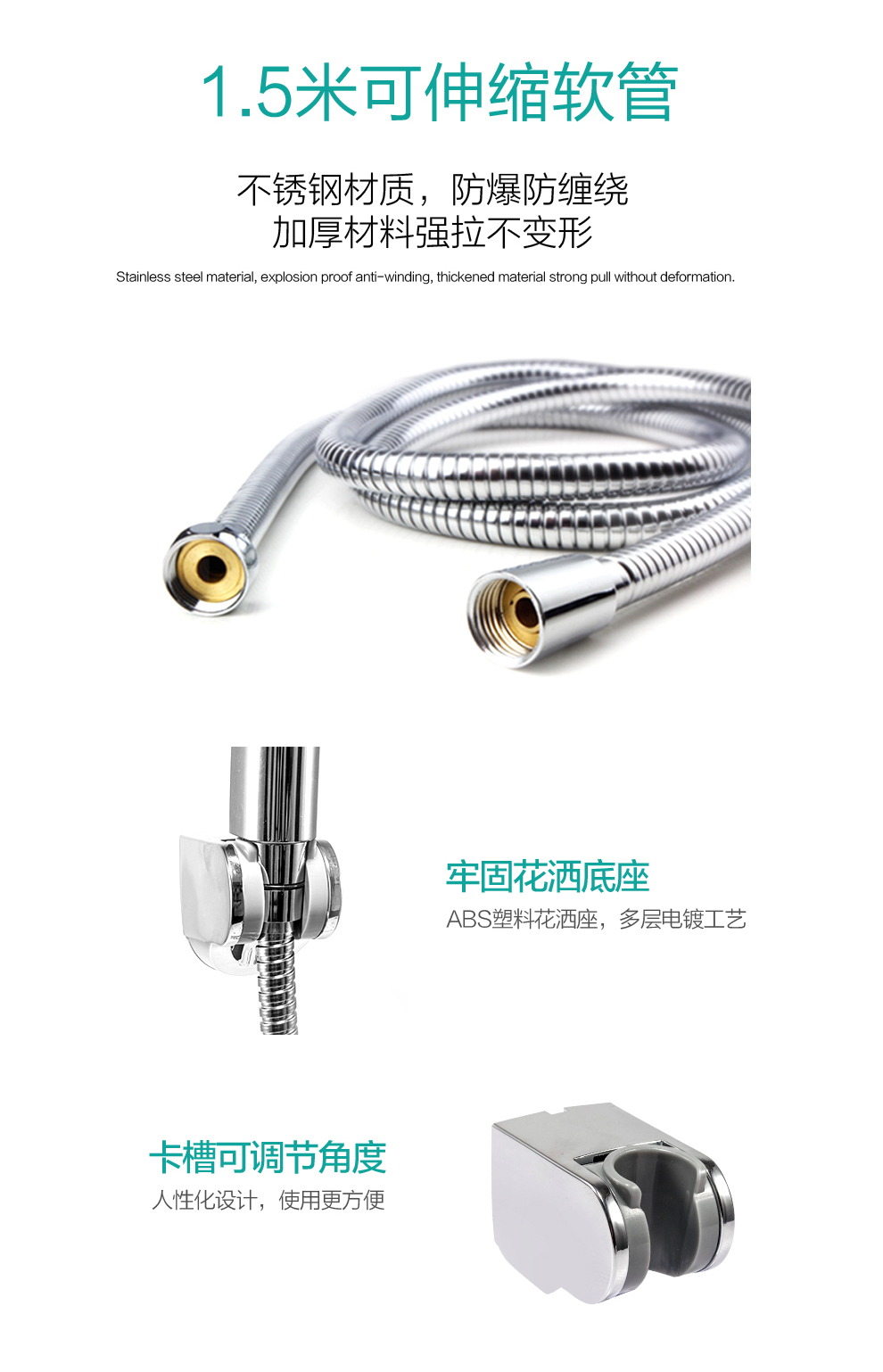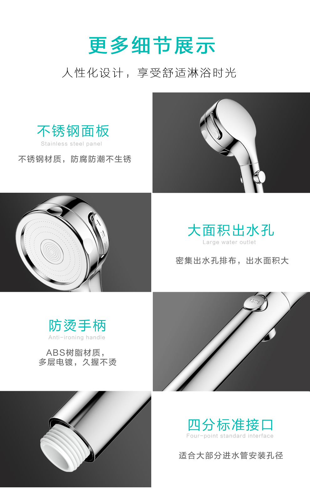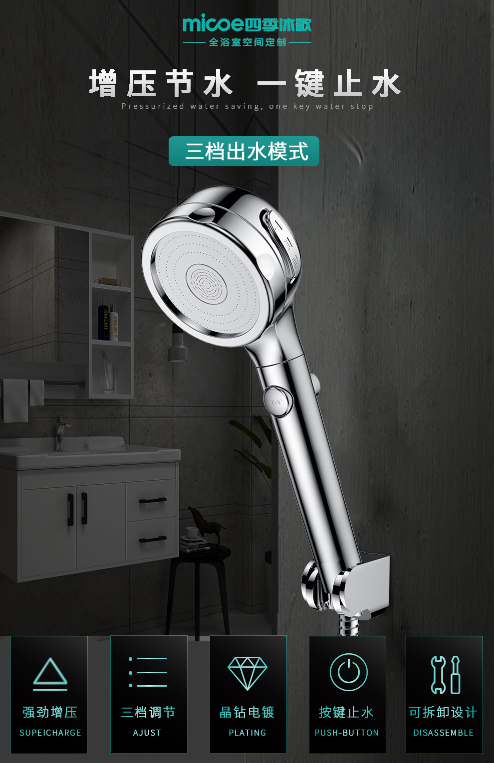 四季沐歌(MICOE)增压花洒淋浴喷头套装 加压浴室沐浴手持洗澡莲蓬单头卫浴套装三件套M-HS202