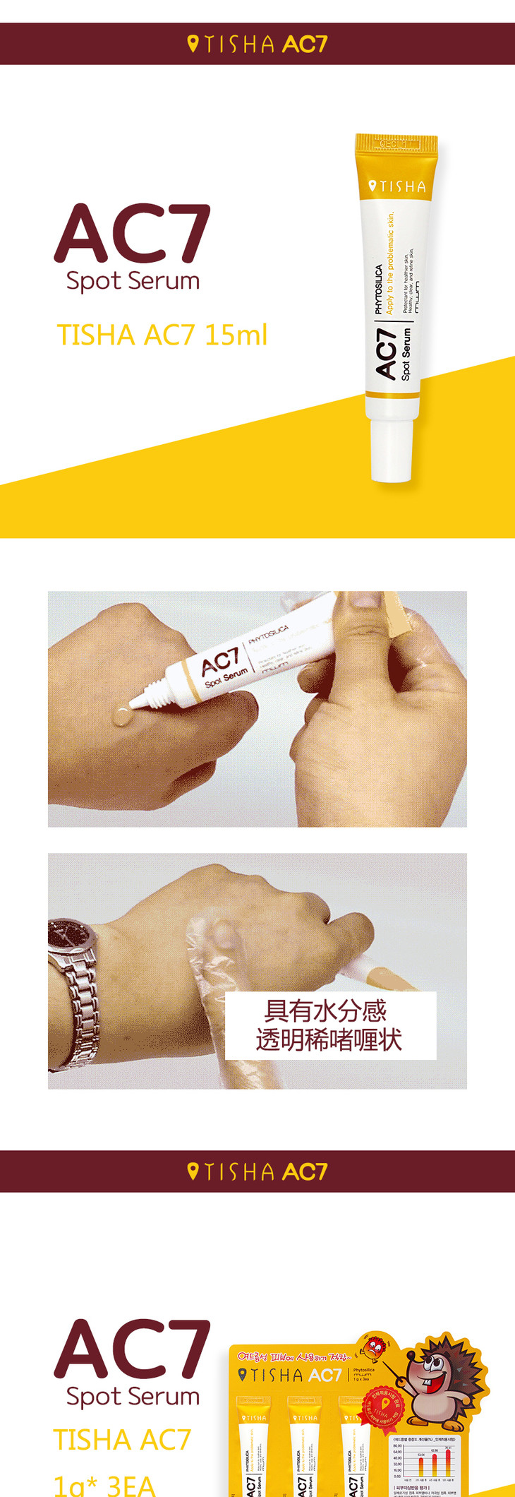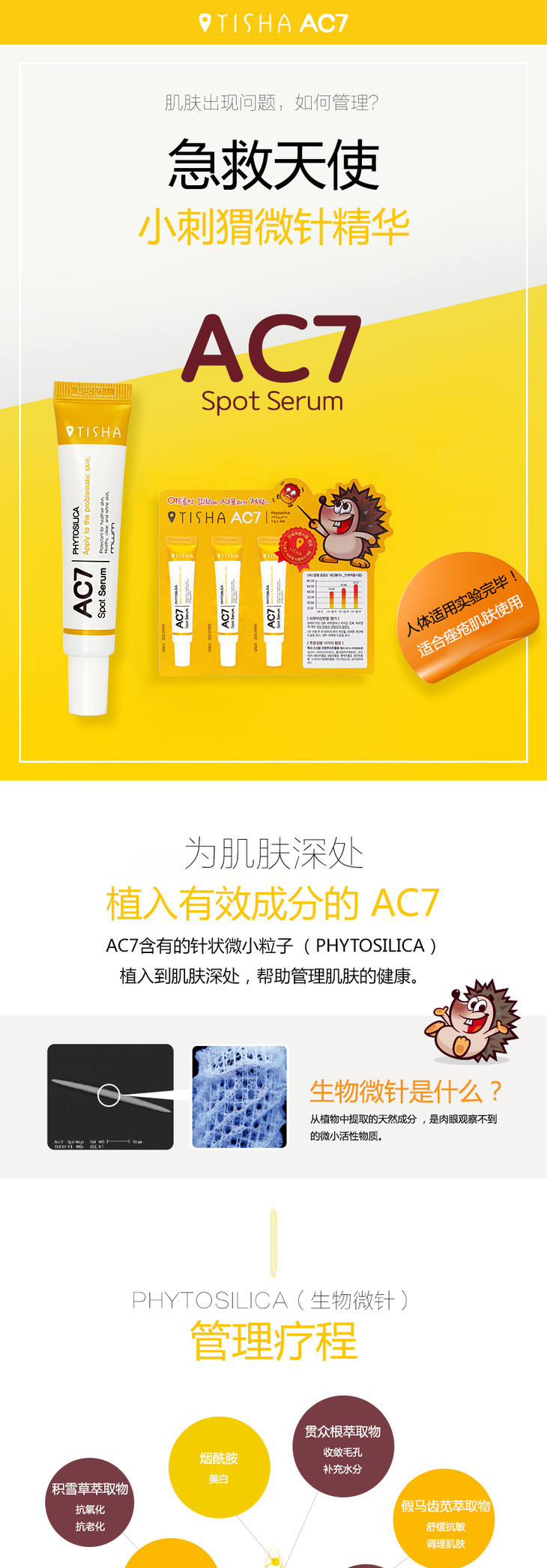 (超值)韩国MWM AC7祛痘膏精华生物小刺猬微针去青春痘印缩小毛孔改善痤疮 商品图3