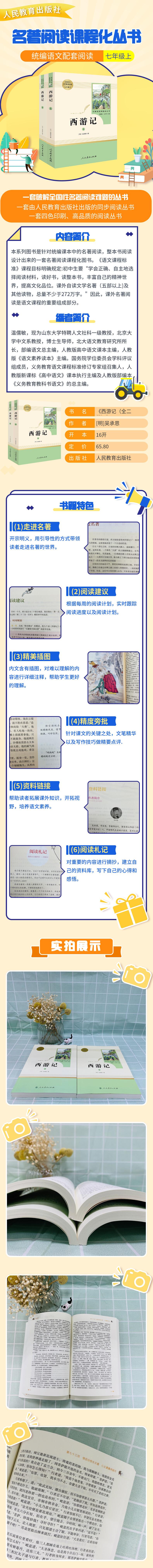 《西游记》主要写孙悟空、猪八戒、沙僧三人保护唐僧西行取经,沿途遇到八十一难,一路降妖伏魔,化险为夷,最后到达西天、取得真经的故事。小说以师徒西天取经为线索,以孙悟空为主角,塑造了一个敢于反对天宫、地府统治者,爱打抱不平、勇于追求自由的英雄形象。另外,小说中的其他人物形象如猪八戒、唐僧、沙僧、白骨精、铁扇公主等,也都写得个性鲜明,栩栩如生。而小说中所写的众多妖魔鬼怪,则多象征社会恶势力。作品对崇信道教、昏庸无能、荒淫残暴、不辨贤愚、专横独断之帝王,更作了无情的嘲弄和批判。作者以积极浪漫主义创作手法,反映现实主义的思想感情,将善意的嘲笑、辛辣的讽刺和严肃的批判巧妙结合,开启了神魔长篇章回小说的新门类。 它是一部散发着浓郁的浪漫主义气息的长篇小说,也是我国文学目前神魔小说的巅峰之作。