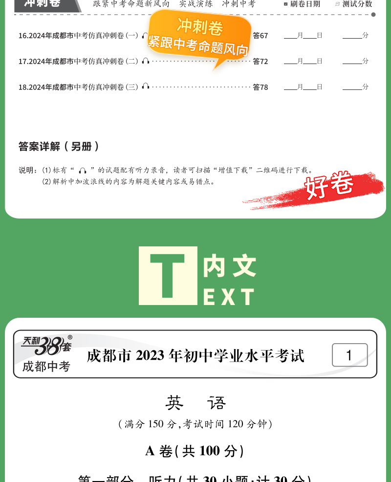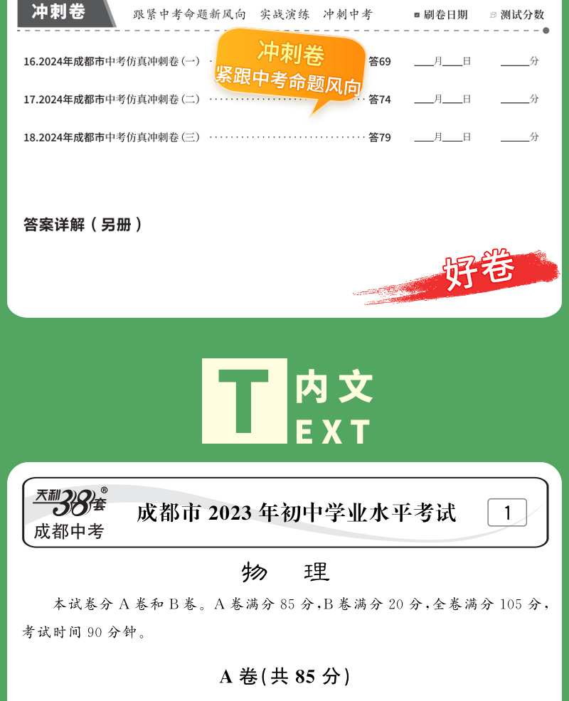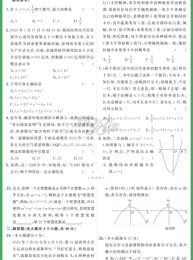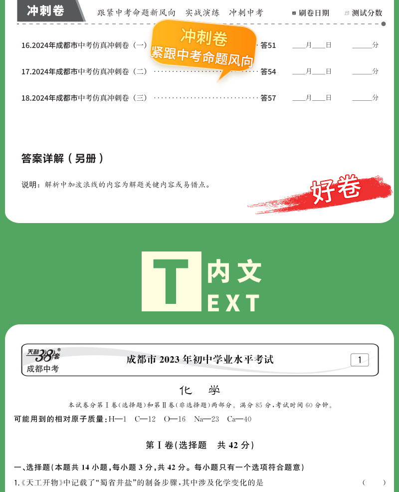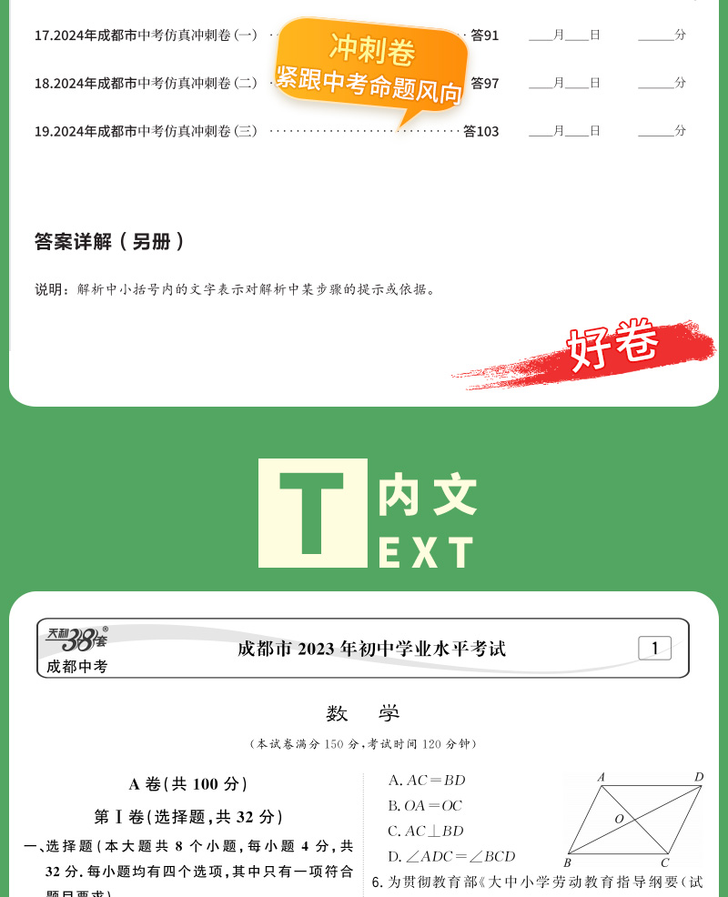 天利38套 2024成都中考试题精选语文、数学、英语、物理、化学