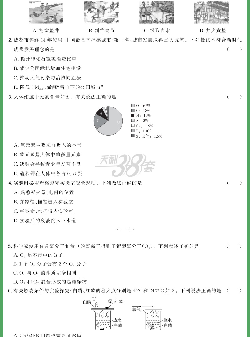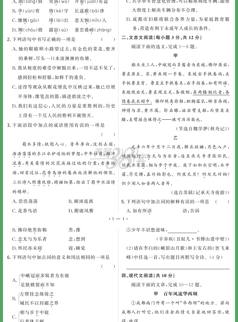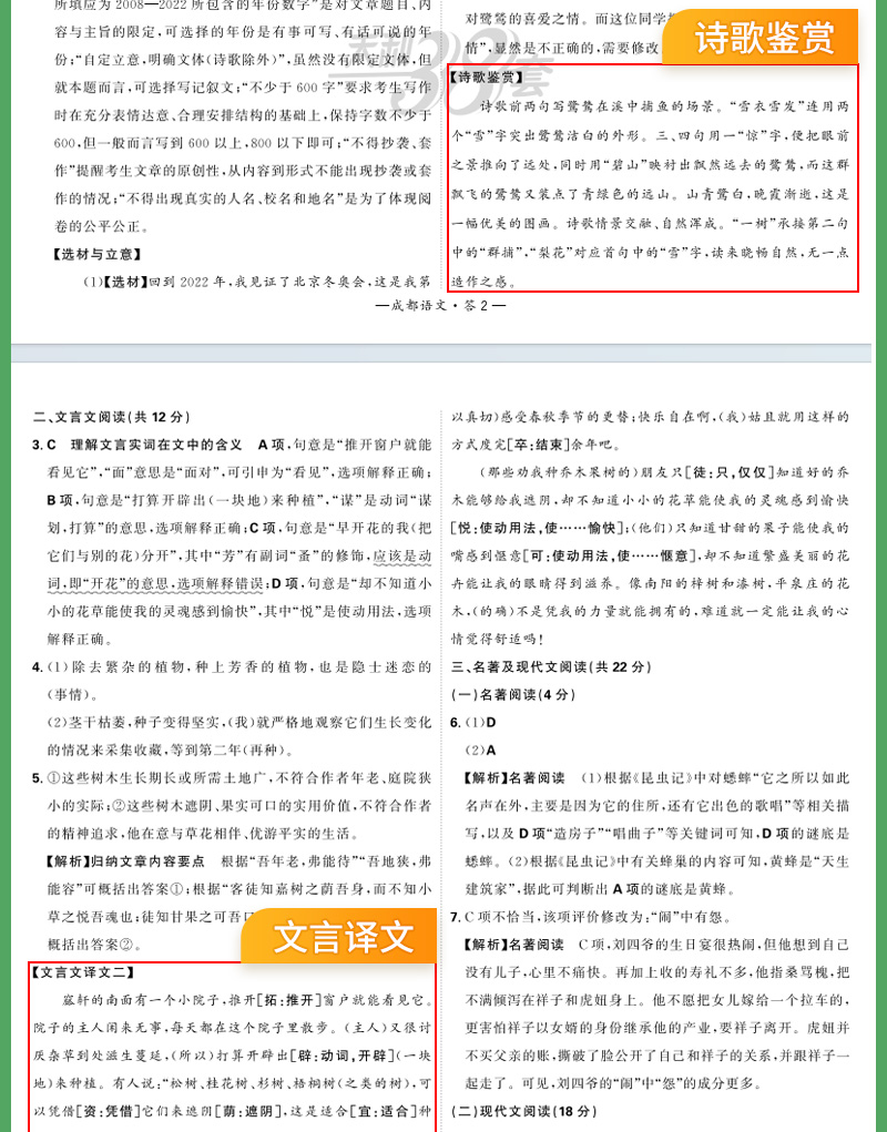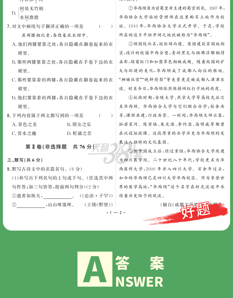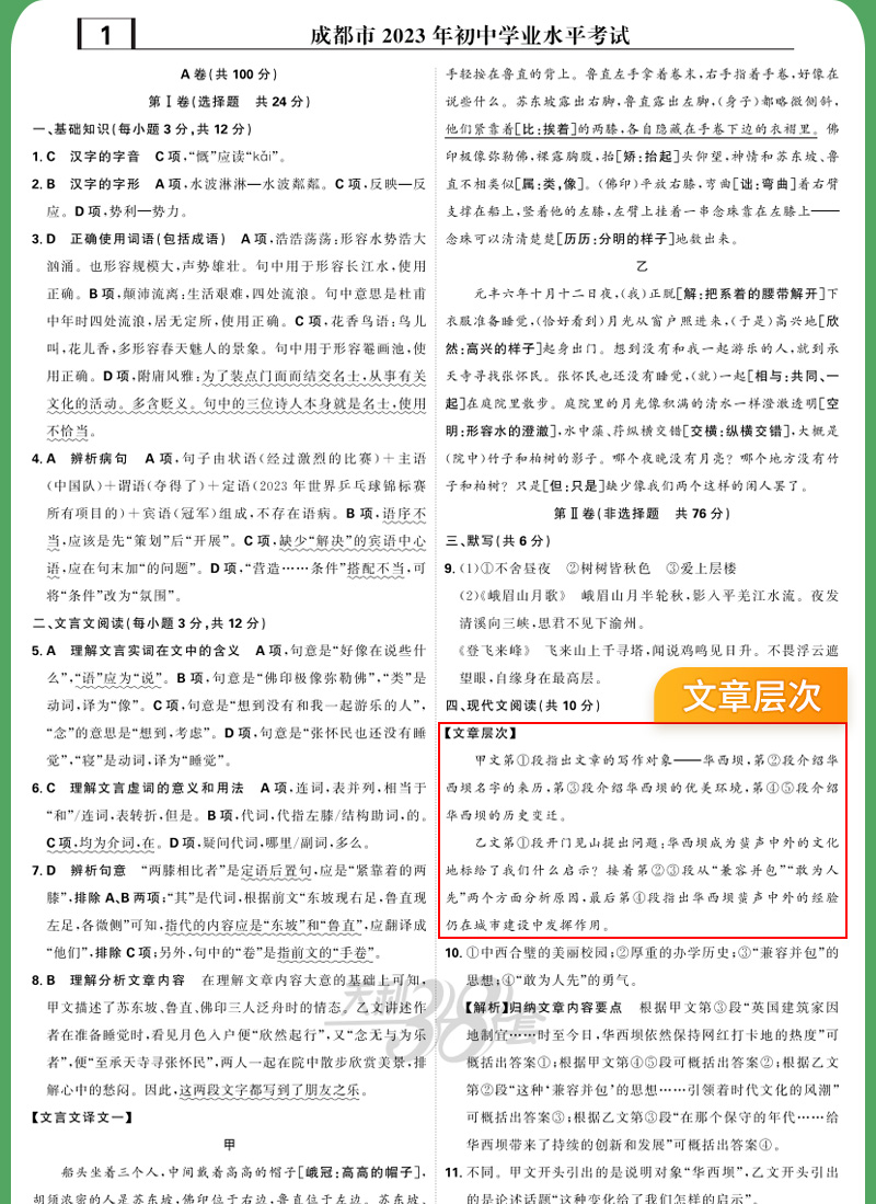 天利38套 2024成都中考试题精选语文、数学、英语、物理、化学