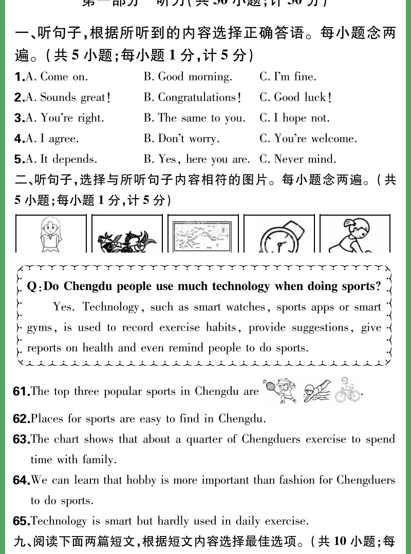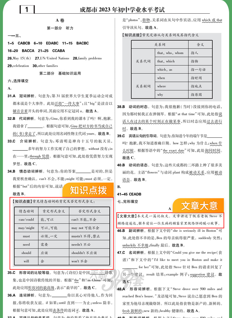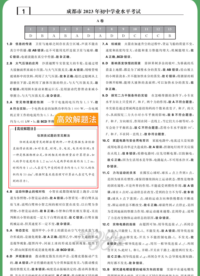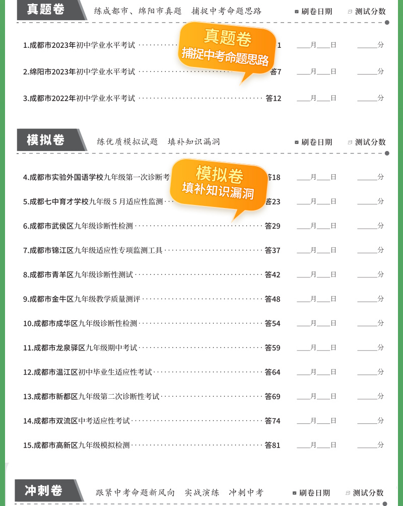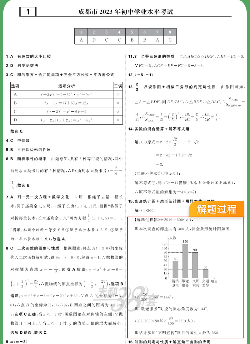 天利38套 2024成都中考试题精选语文、数学、英语、物理、化学