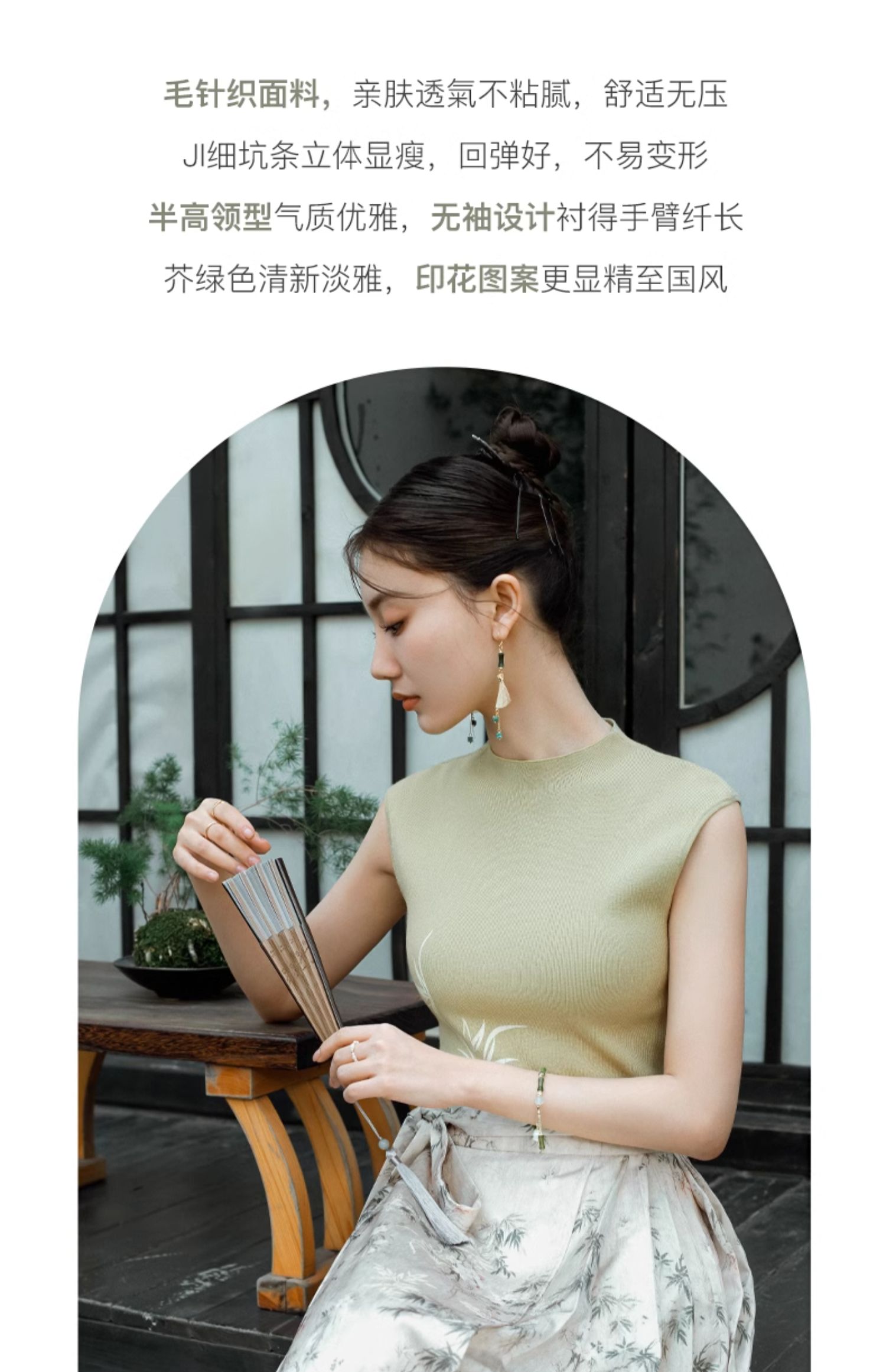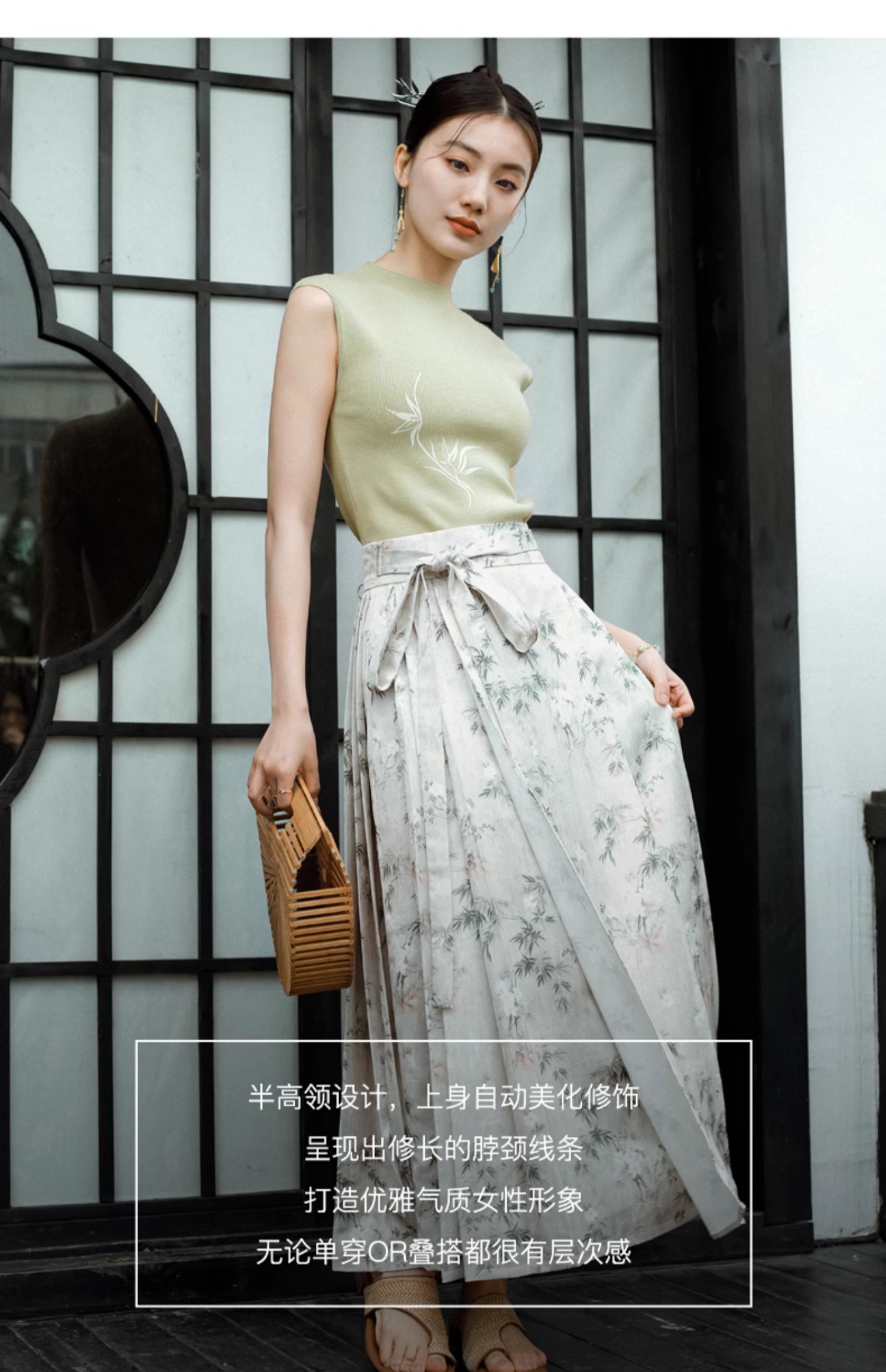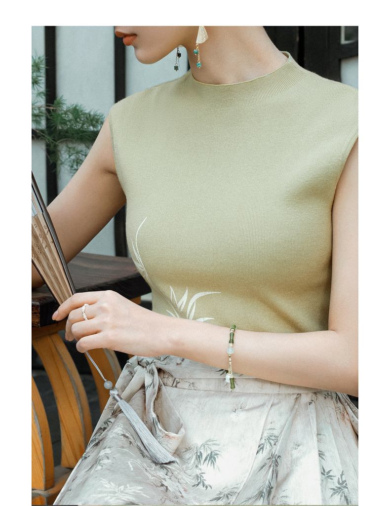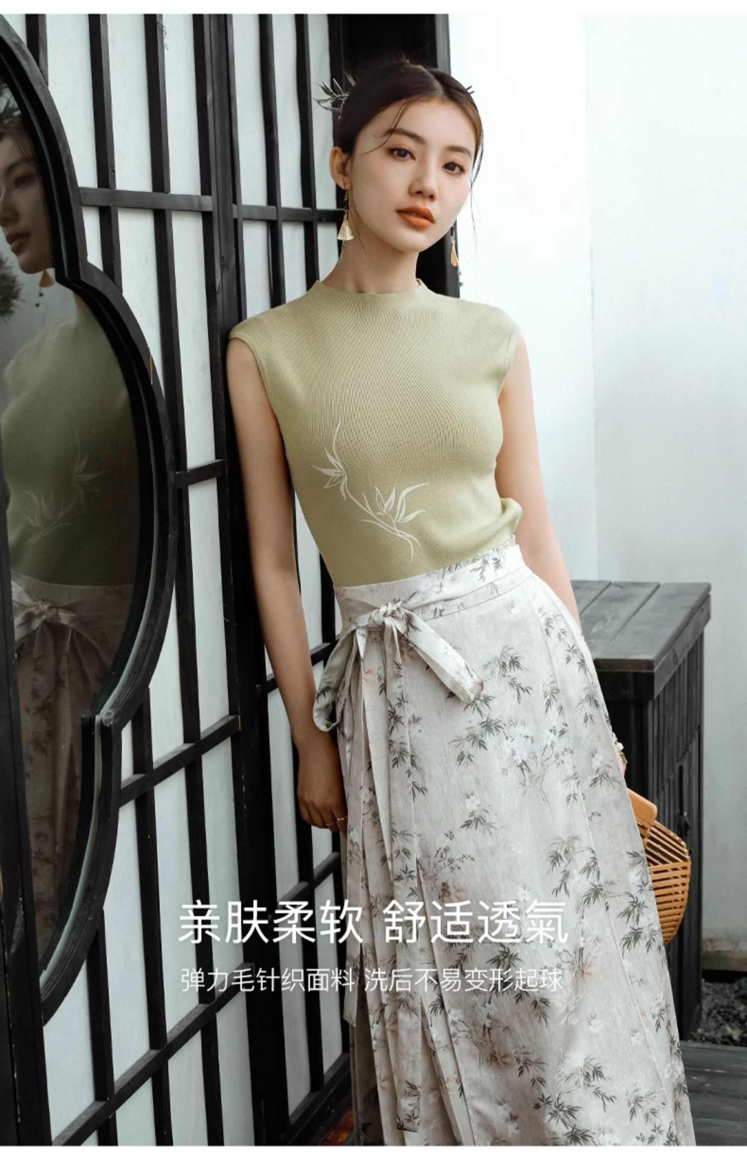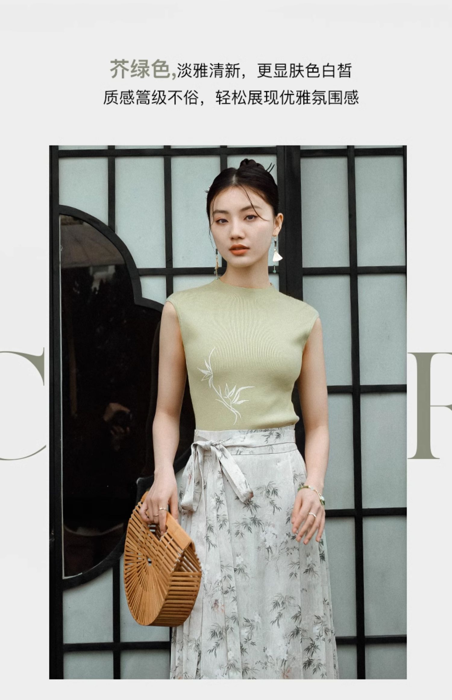 OLrain欧芮儿绿色针织衫女春季2024年新款新中式国风刺绣背心